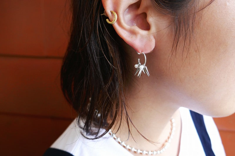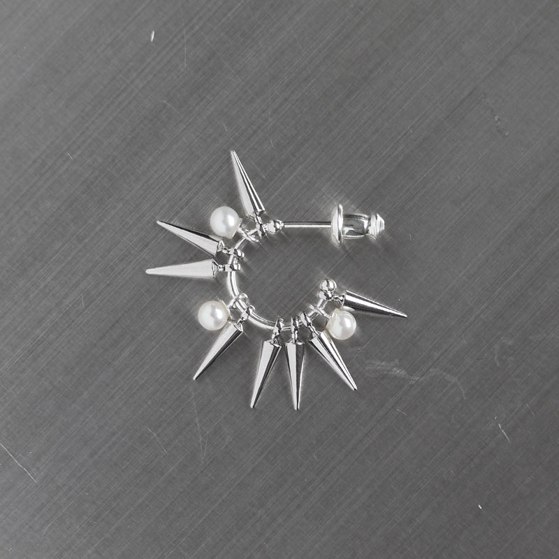 ピアスの中でも常に人気者のスタッズフープピアス。スタッズの間にパールをセッティングすることで
