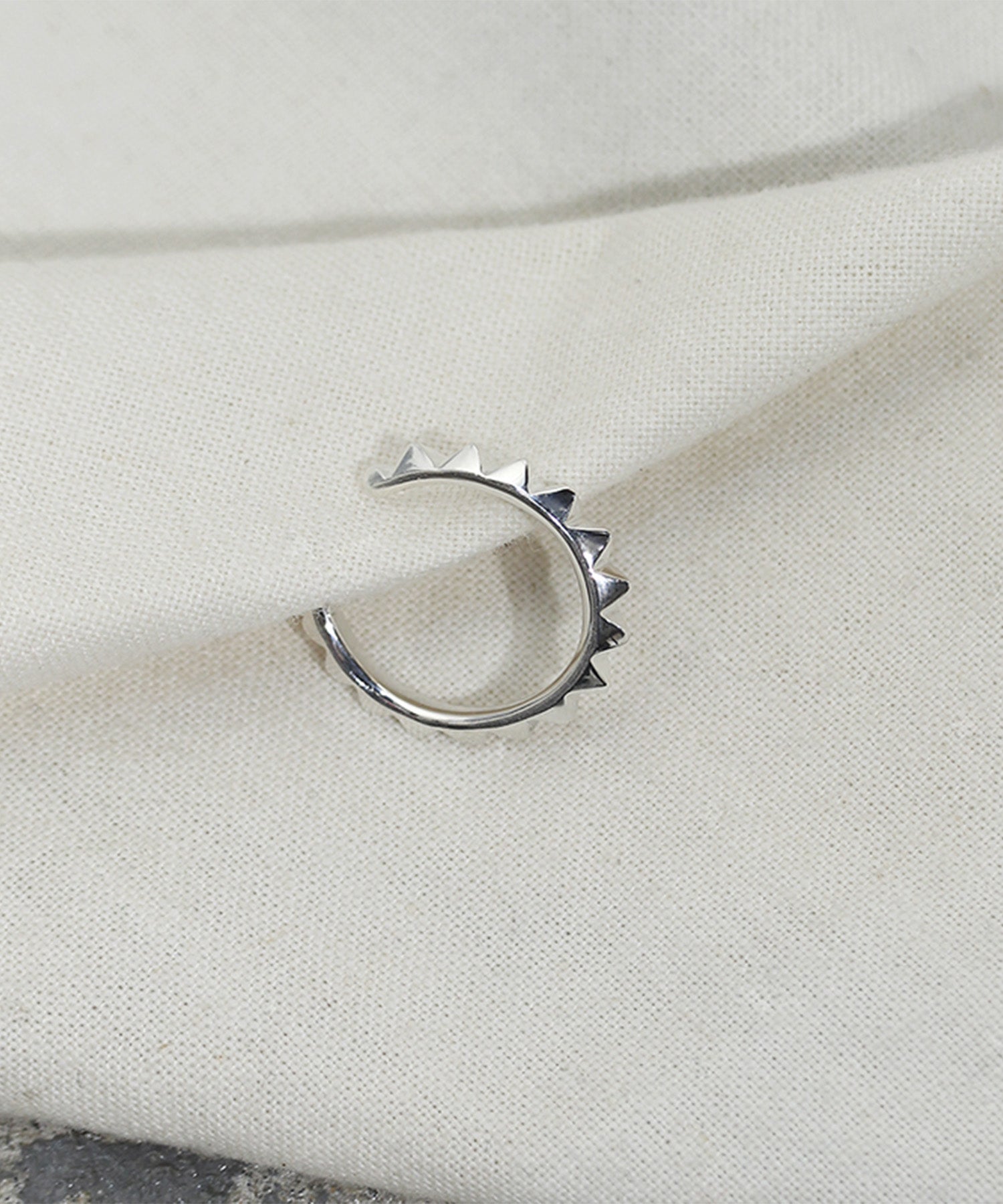 C型の隙間から軟骨部分に引っ掛けて着用するイヤーカフ。