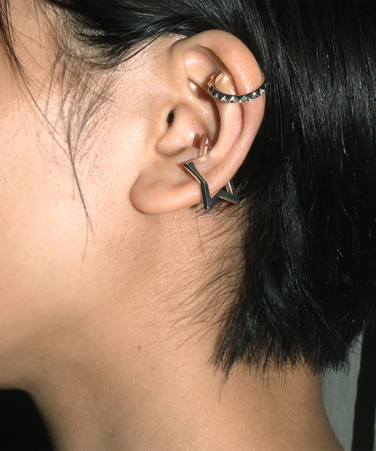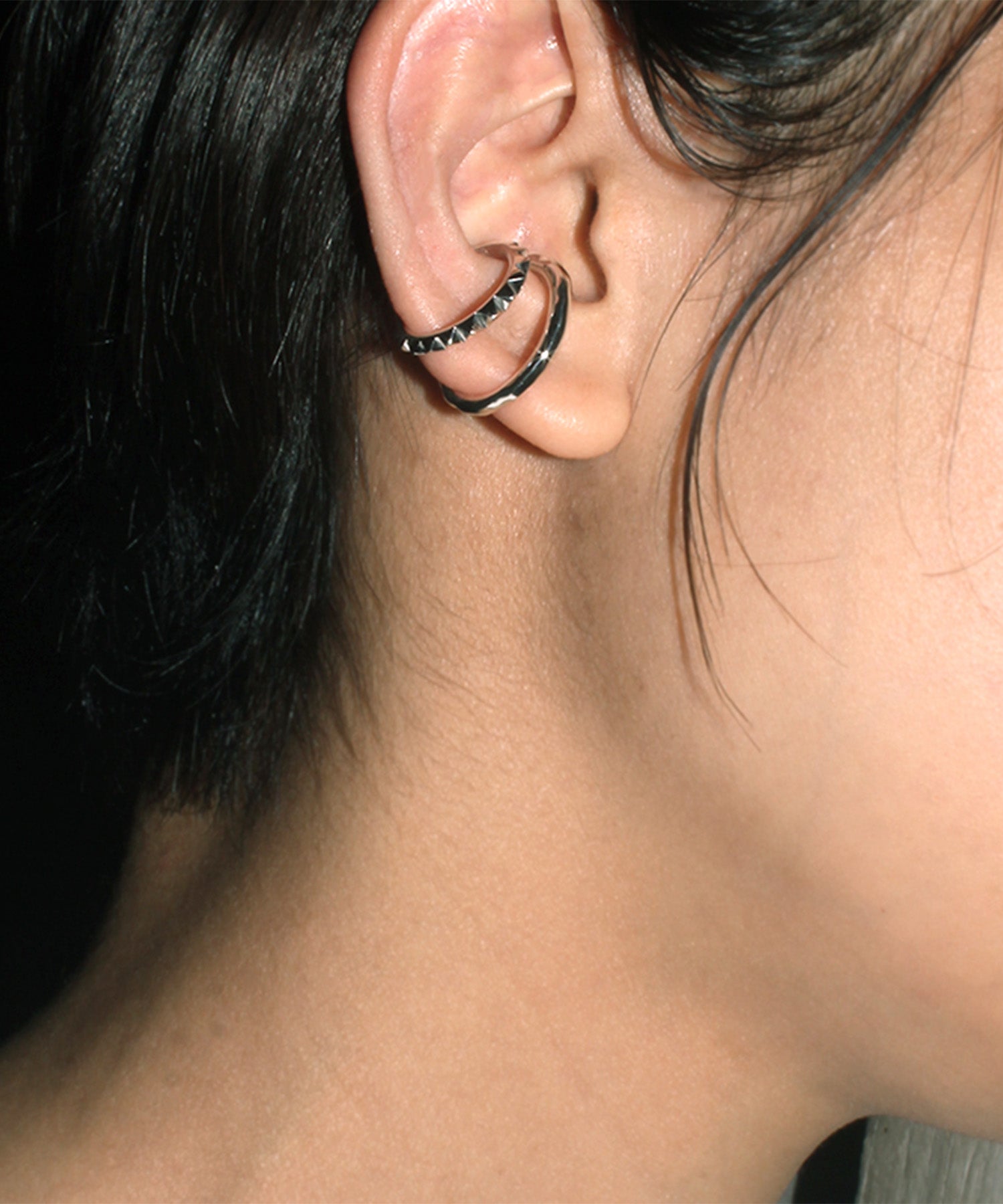 他のイヤーカフと重ねてボリュームの違いをお楽しみください。