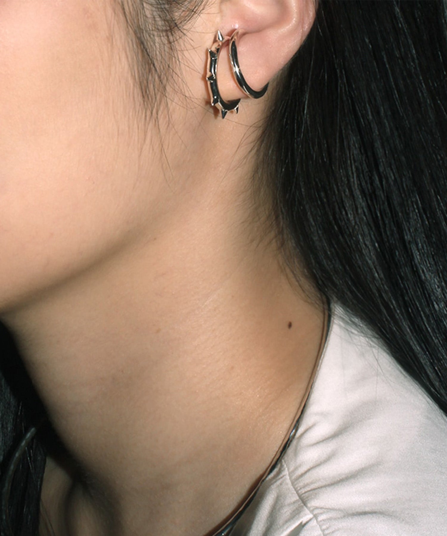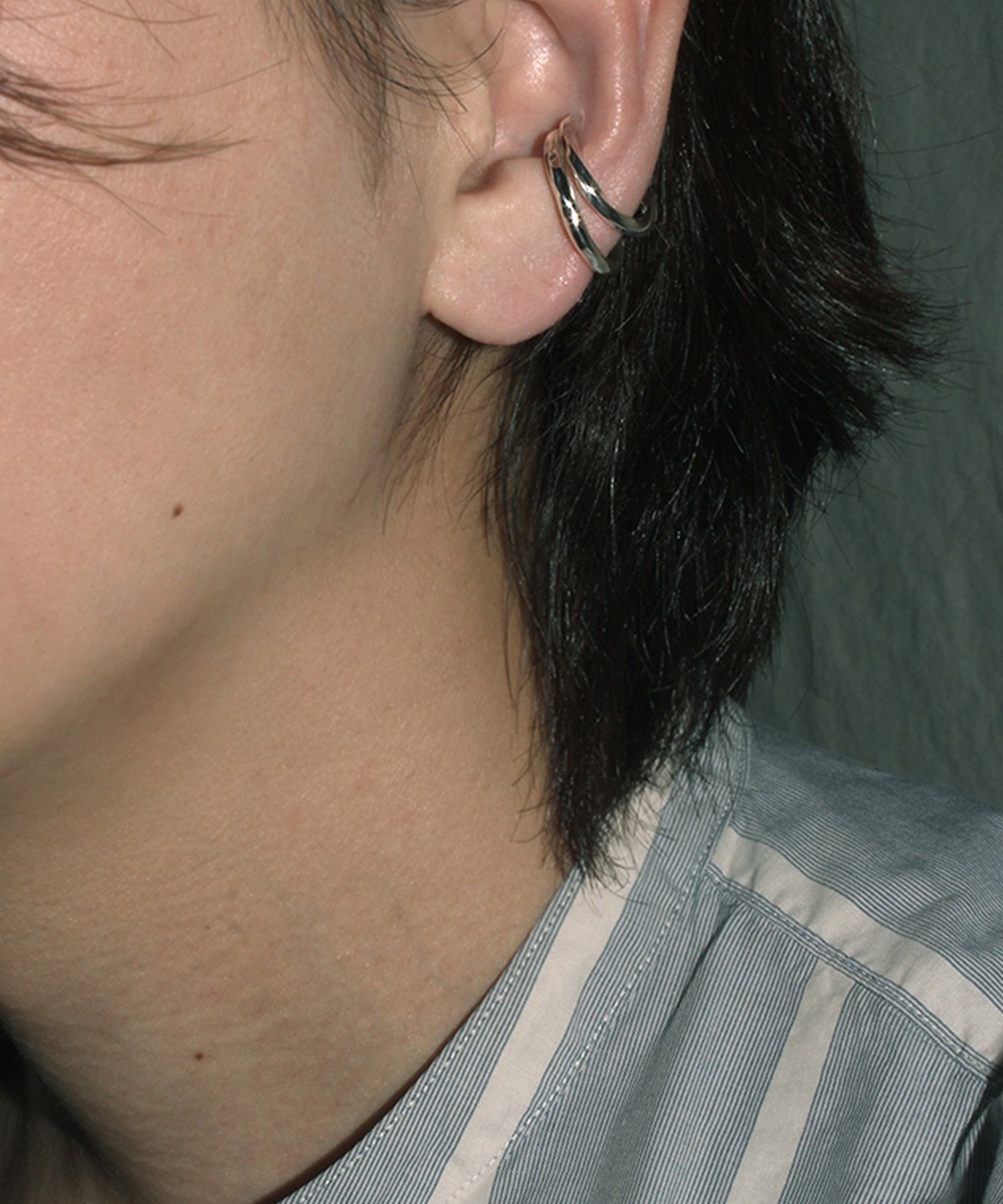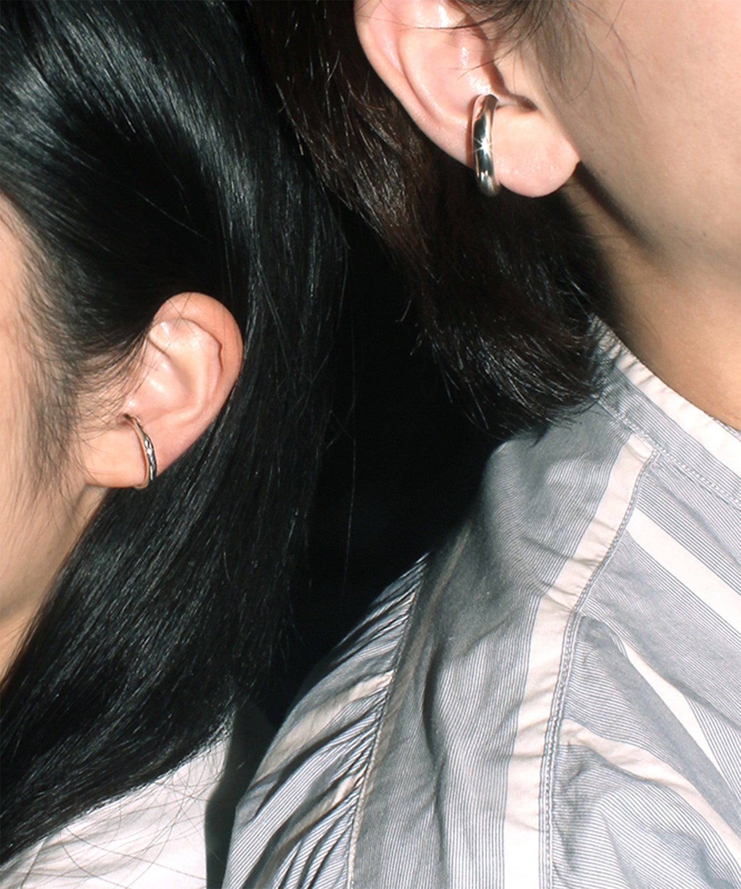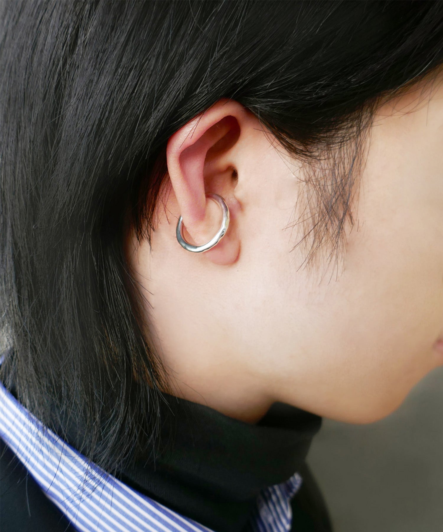 C型の隙間から軟骨部分に引っ掛けて着用するイヤーカフ。