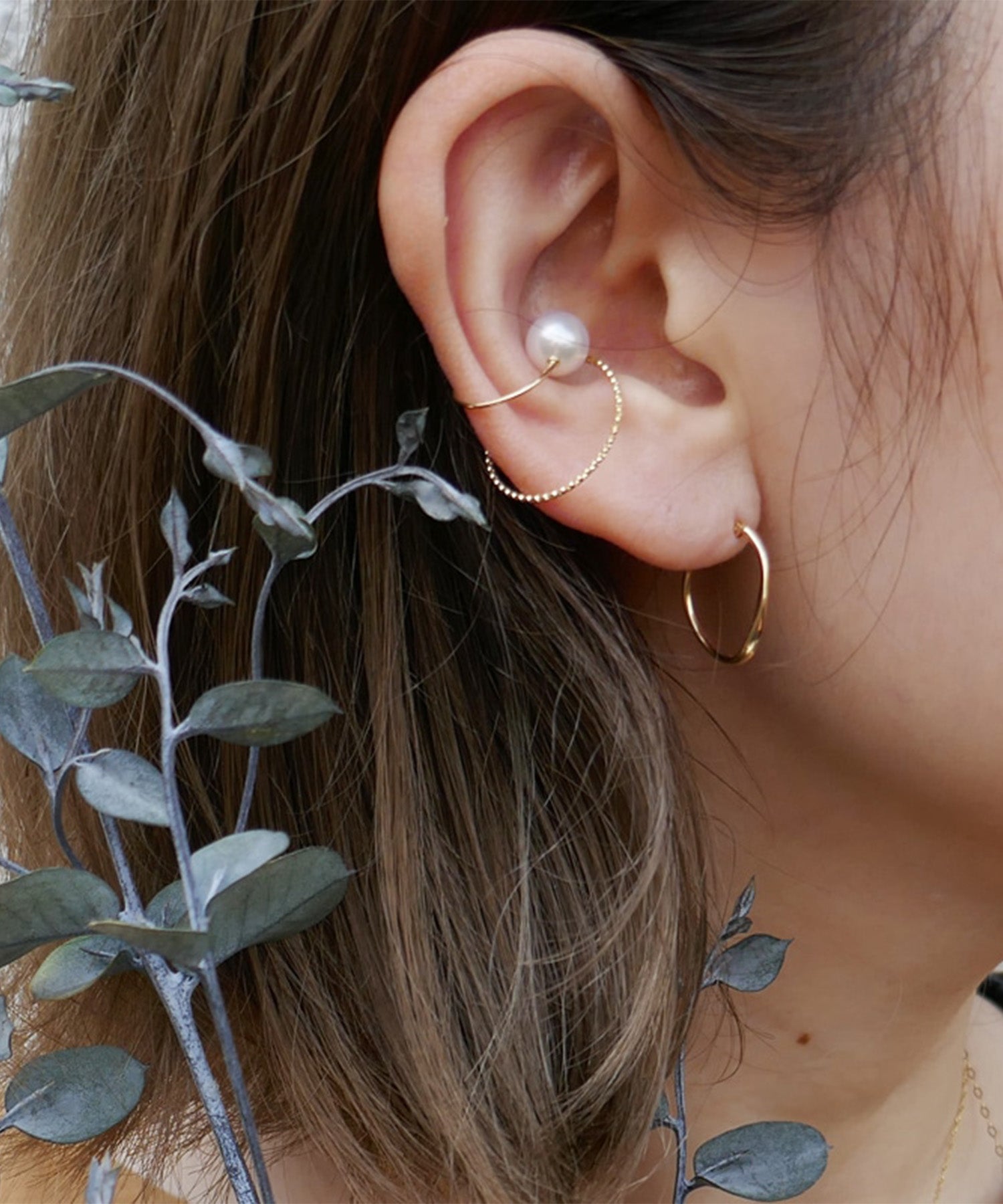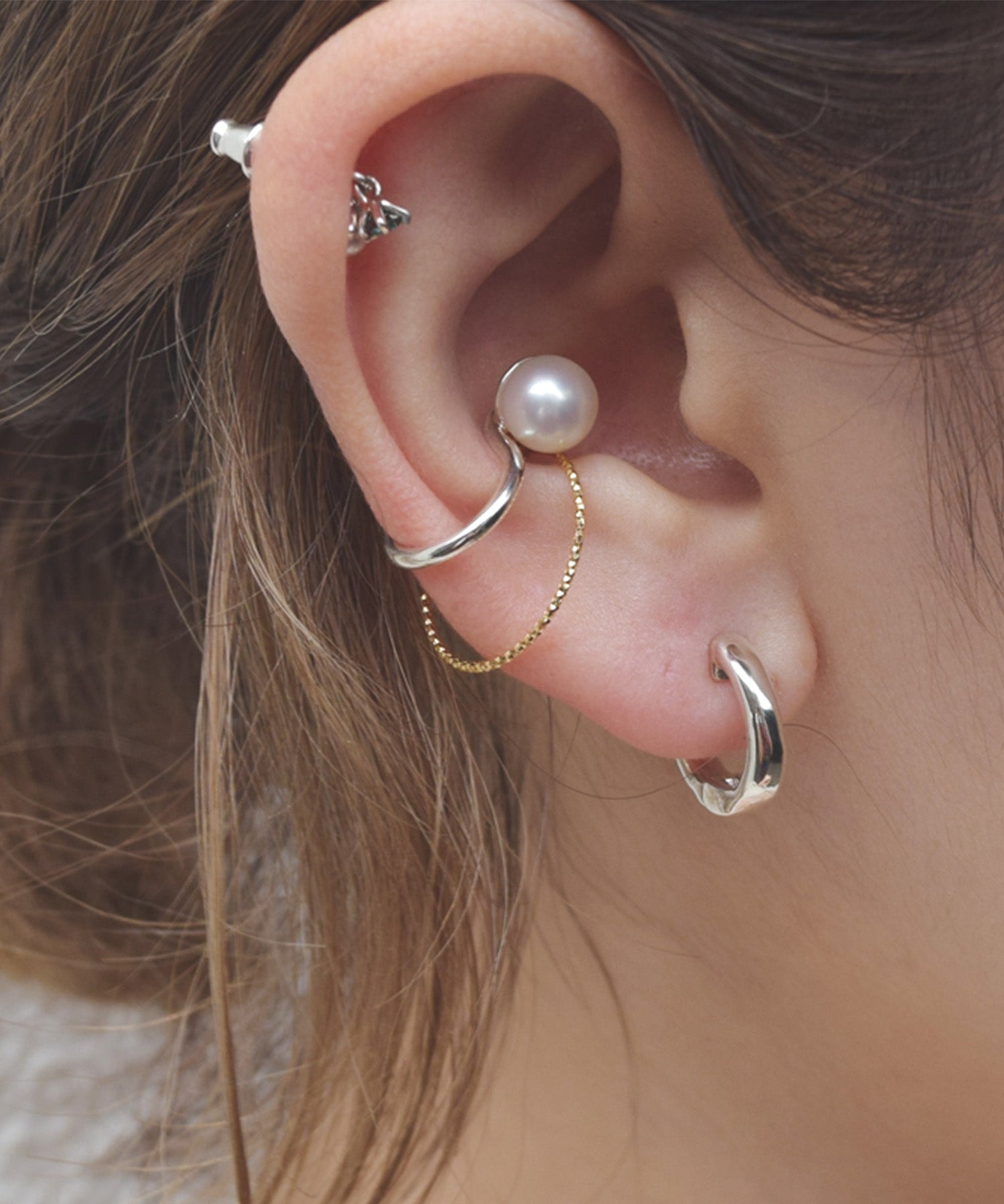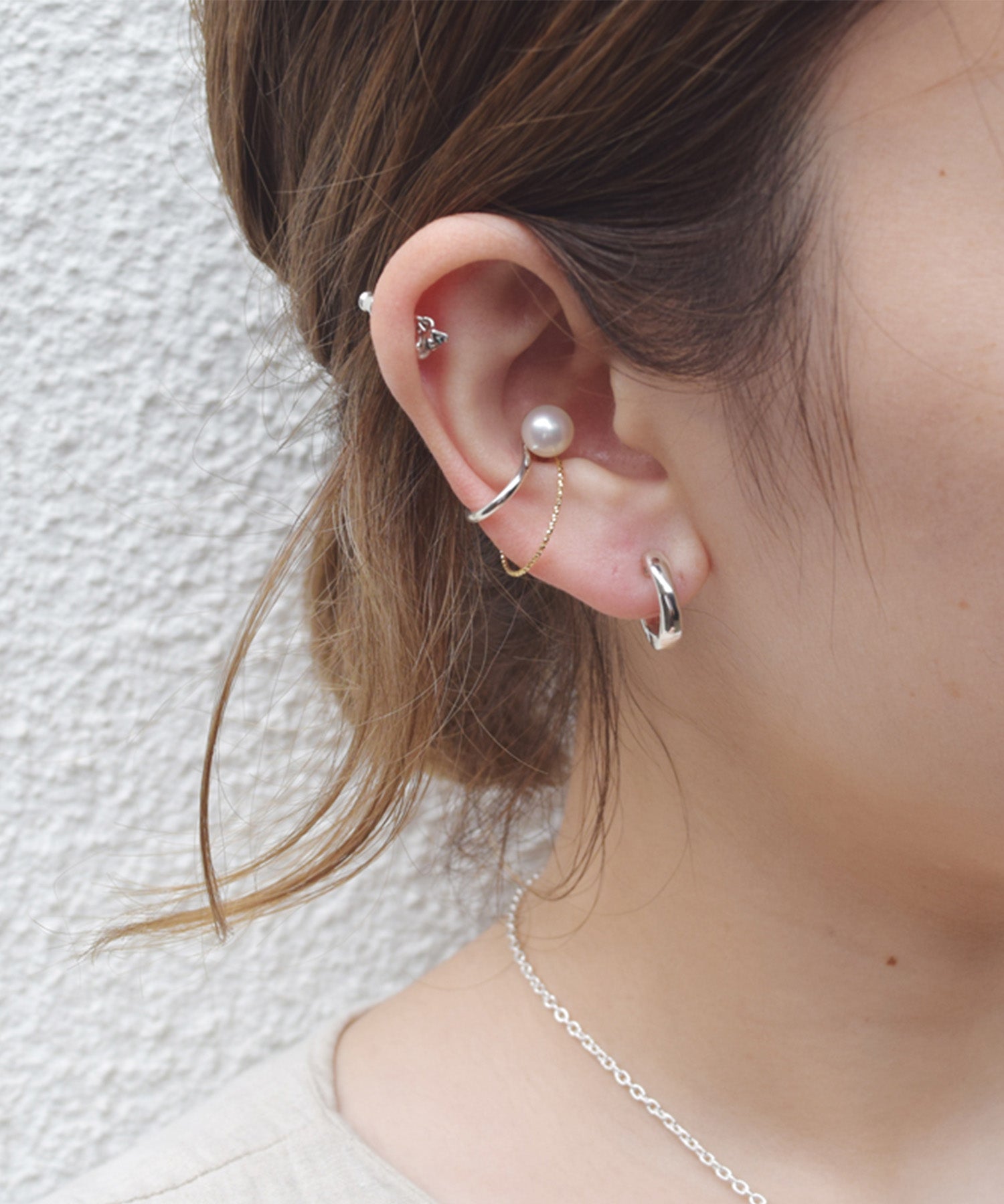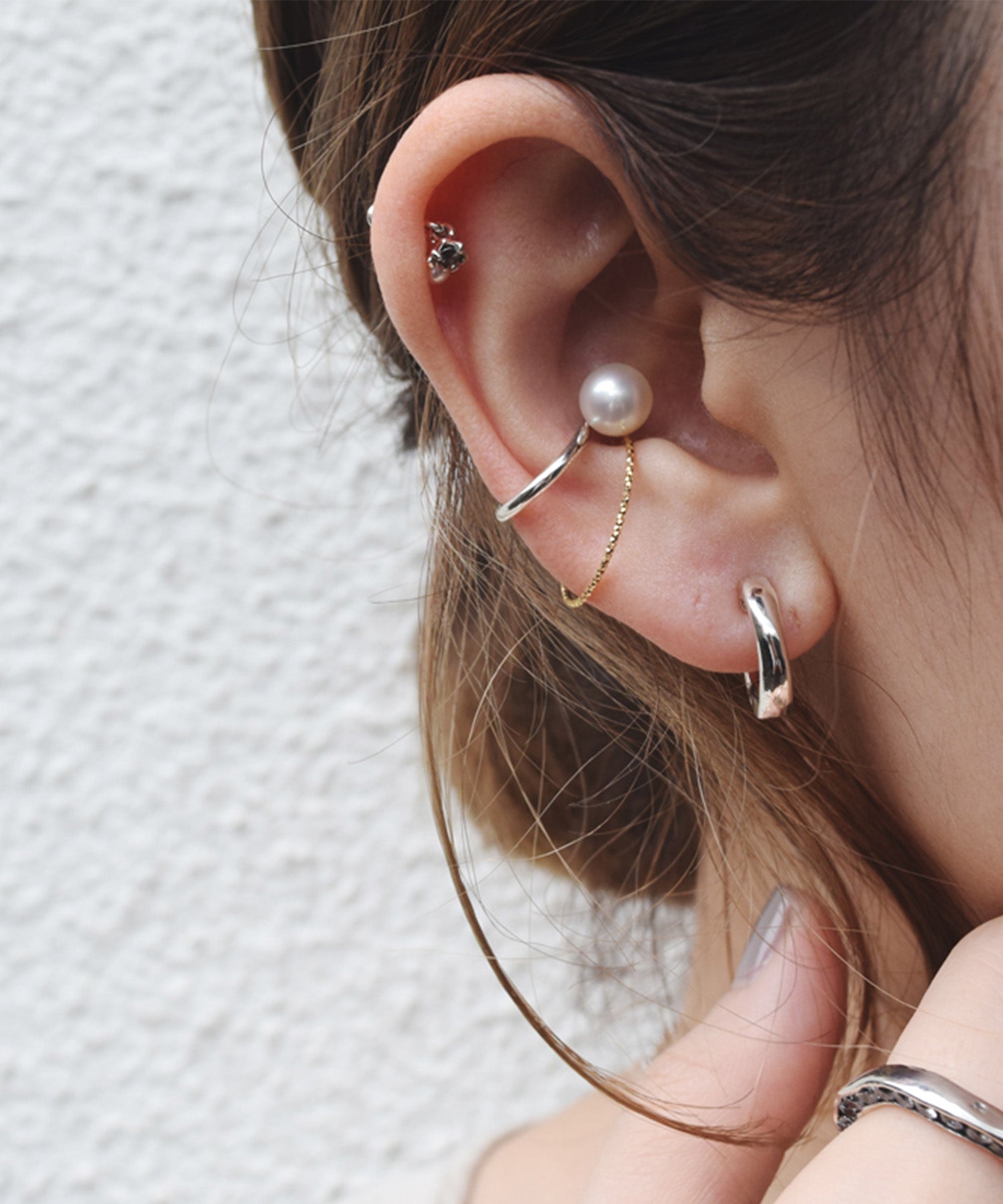 C型の隙間から軟骨部分に引っ掛けるタイプのイヤーカフ。