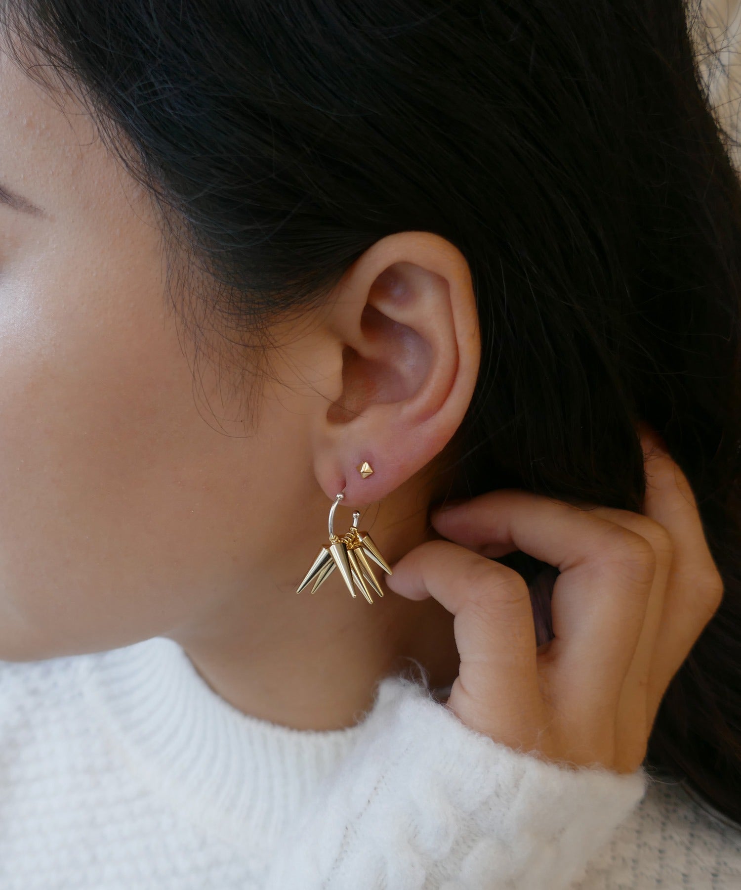 小さなスタッズのシンプルなゴールドピアス。軟骨やアウターコンクなど