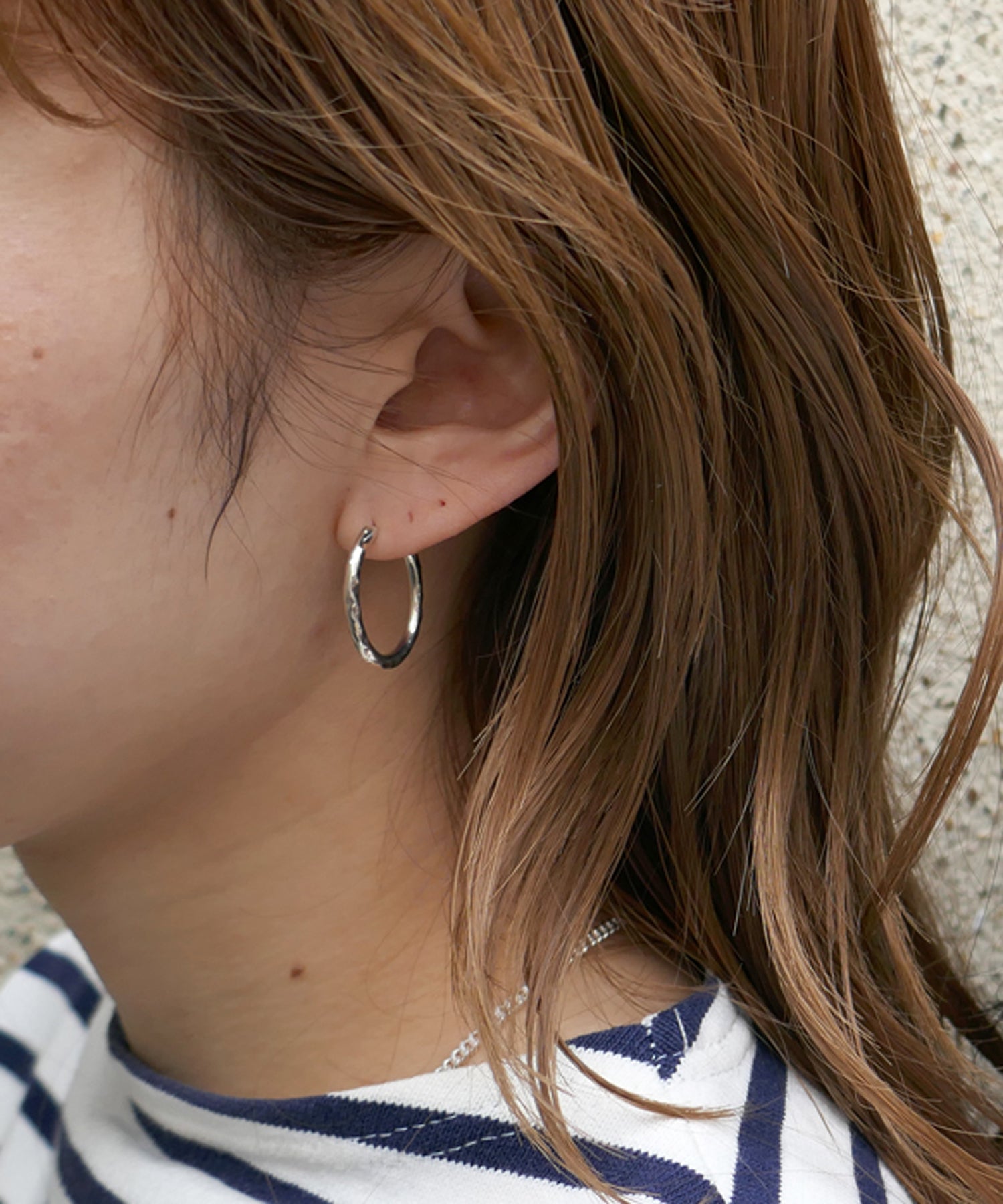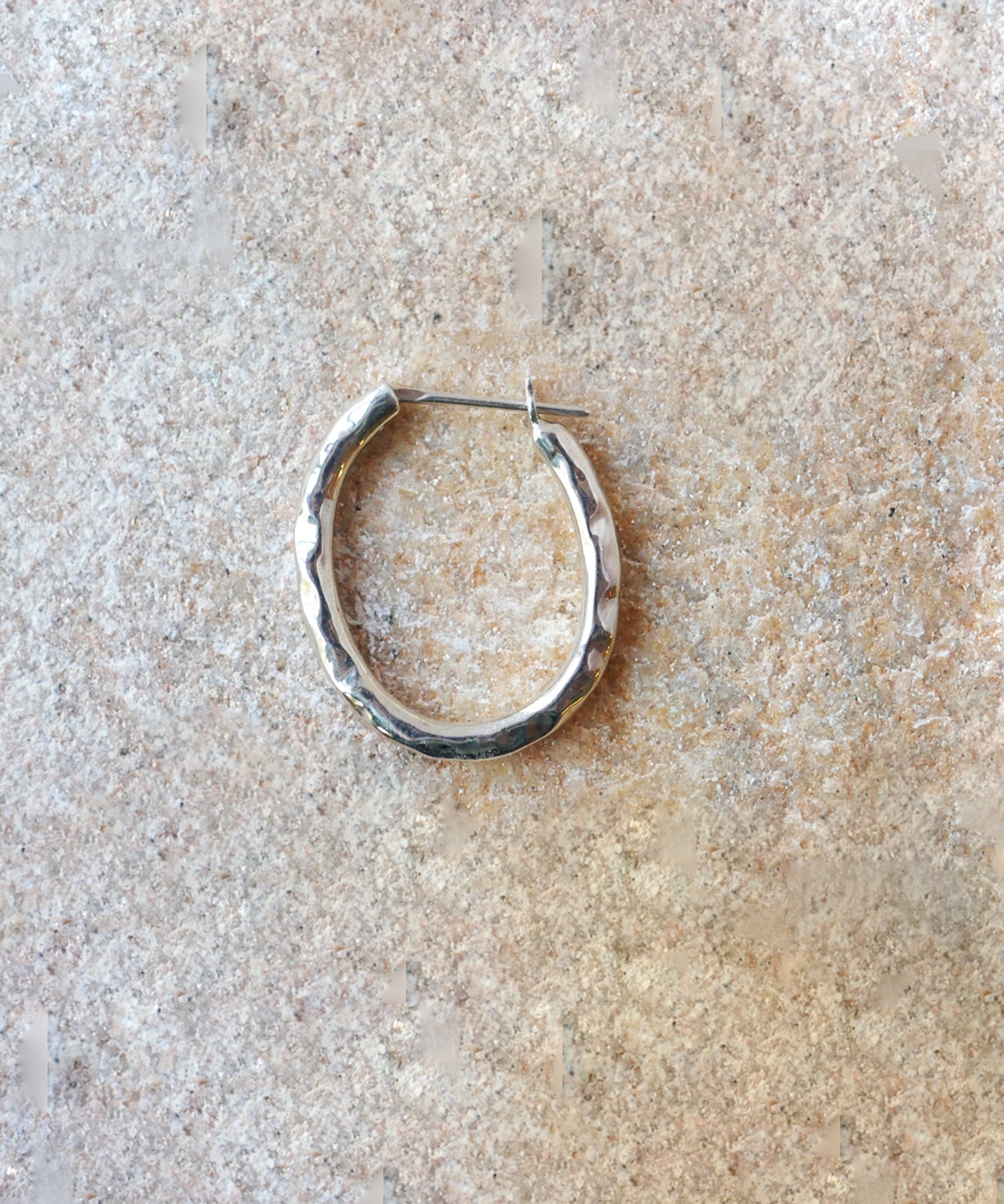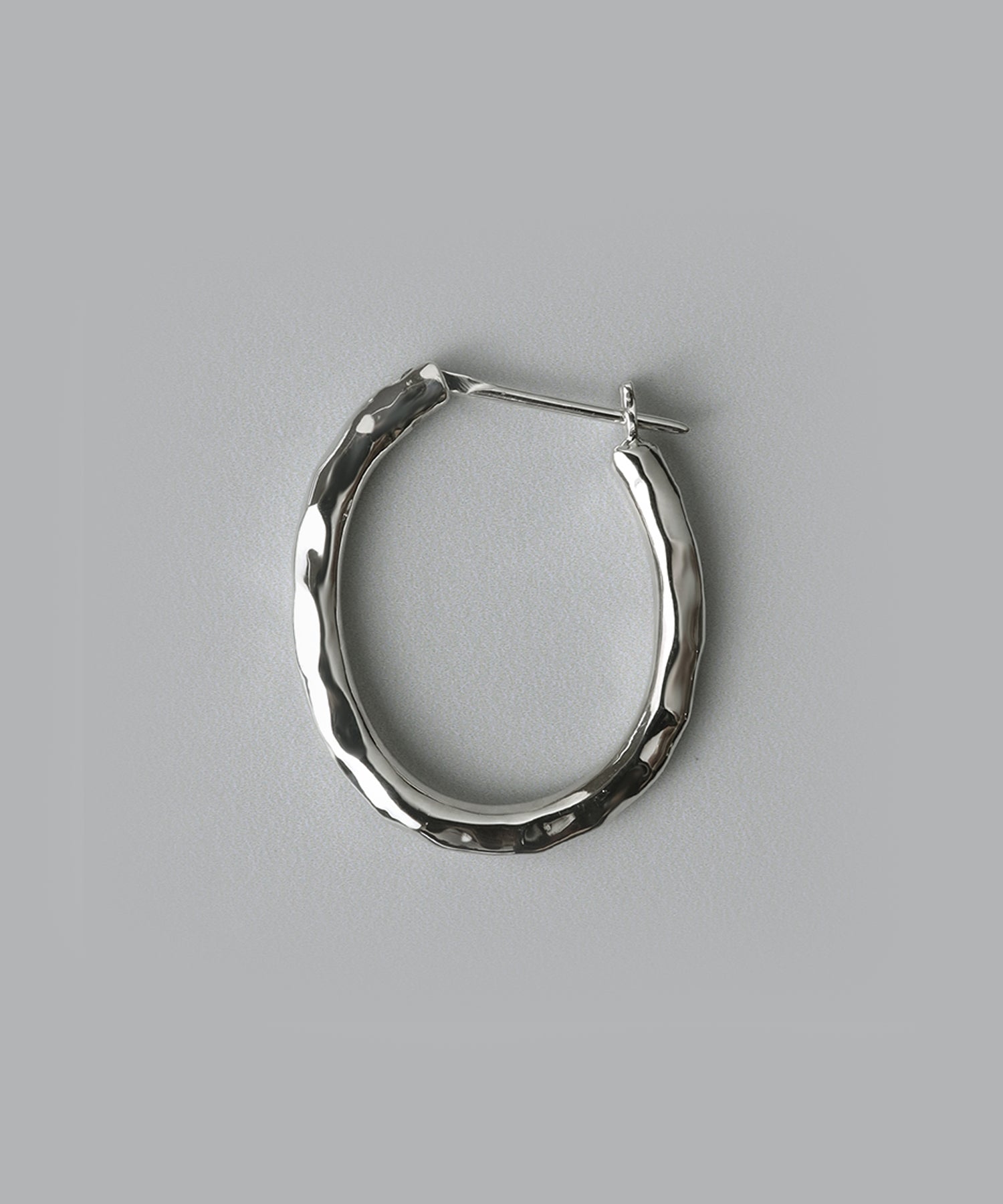 細めの線で縦長にデザインされたシルバーのフープピアス。