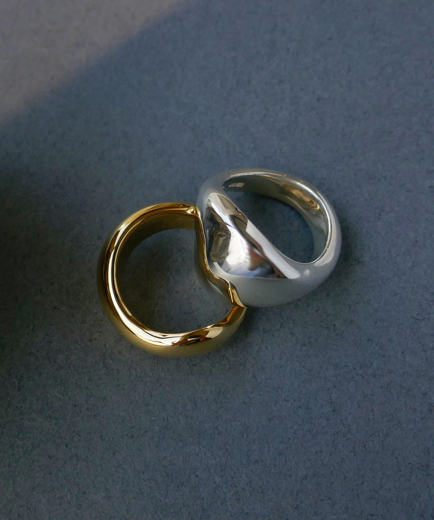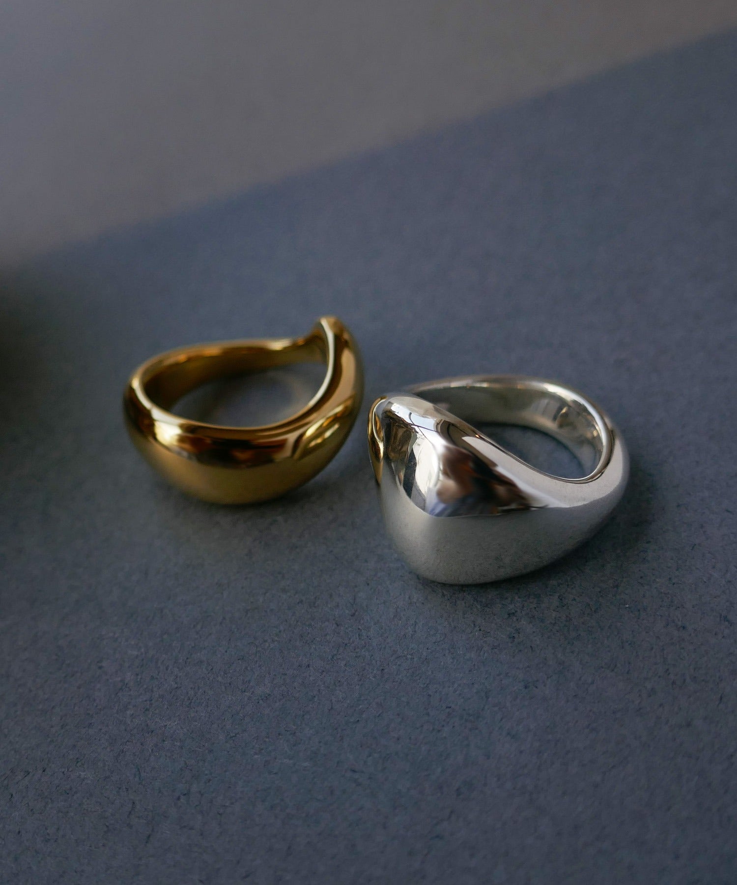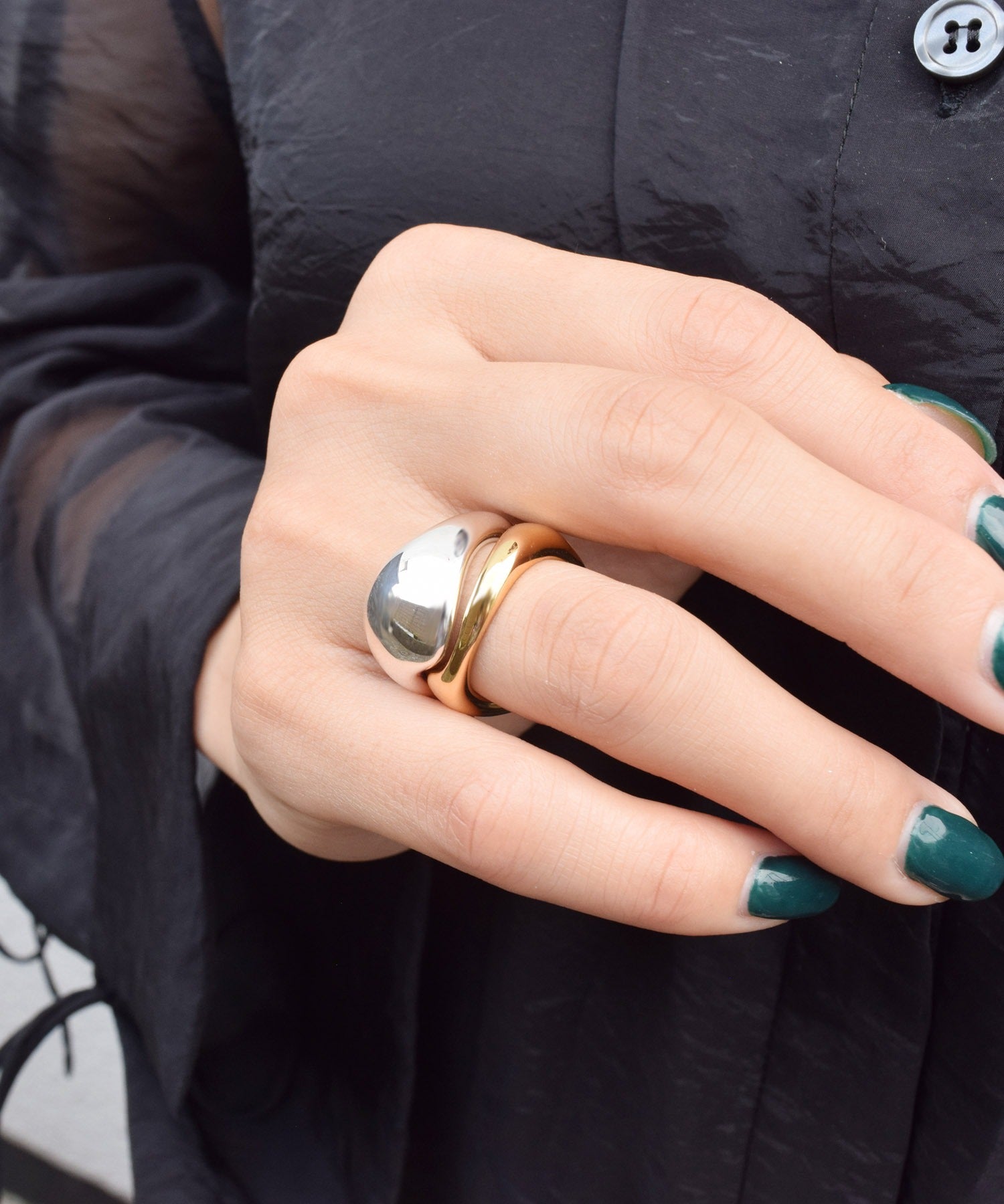 ぷっくりとしたシルバーとカーブがかったゴールドの2本セットリング。