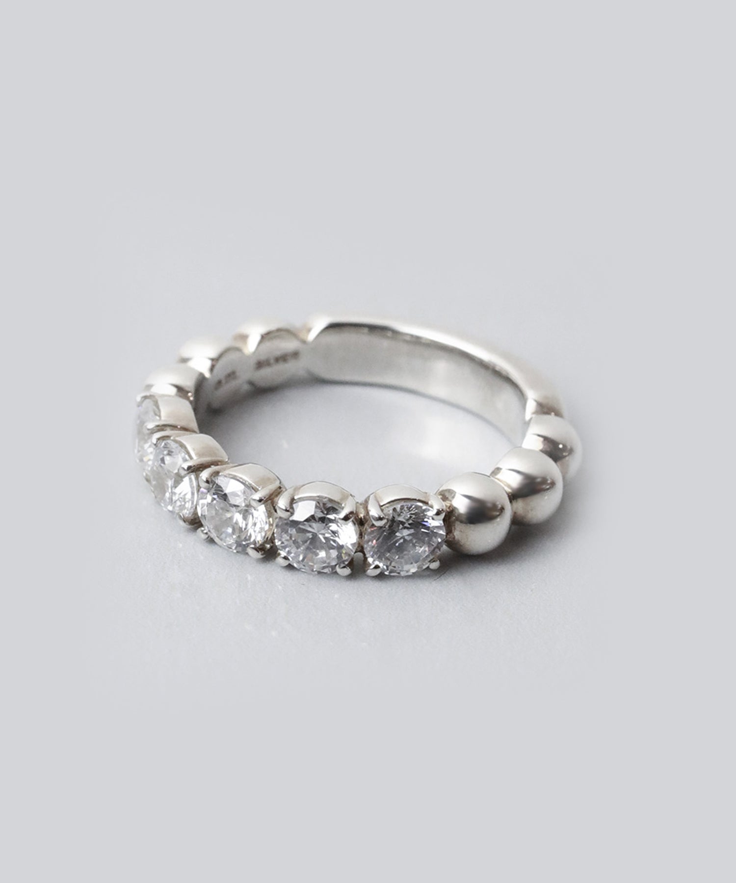 センターに5石のキュービックジルコニアをセッティングし、サイドにボールを連ねたシルバーリング。