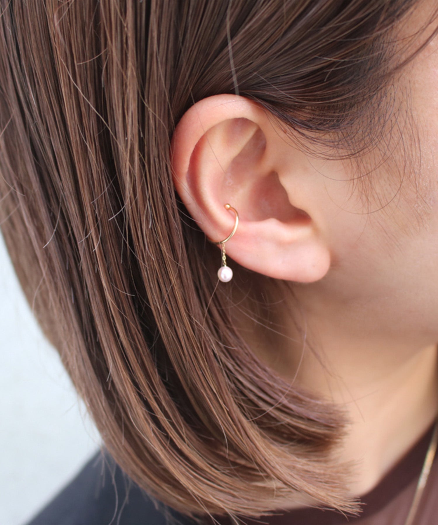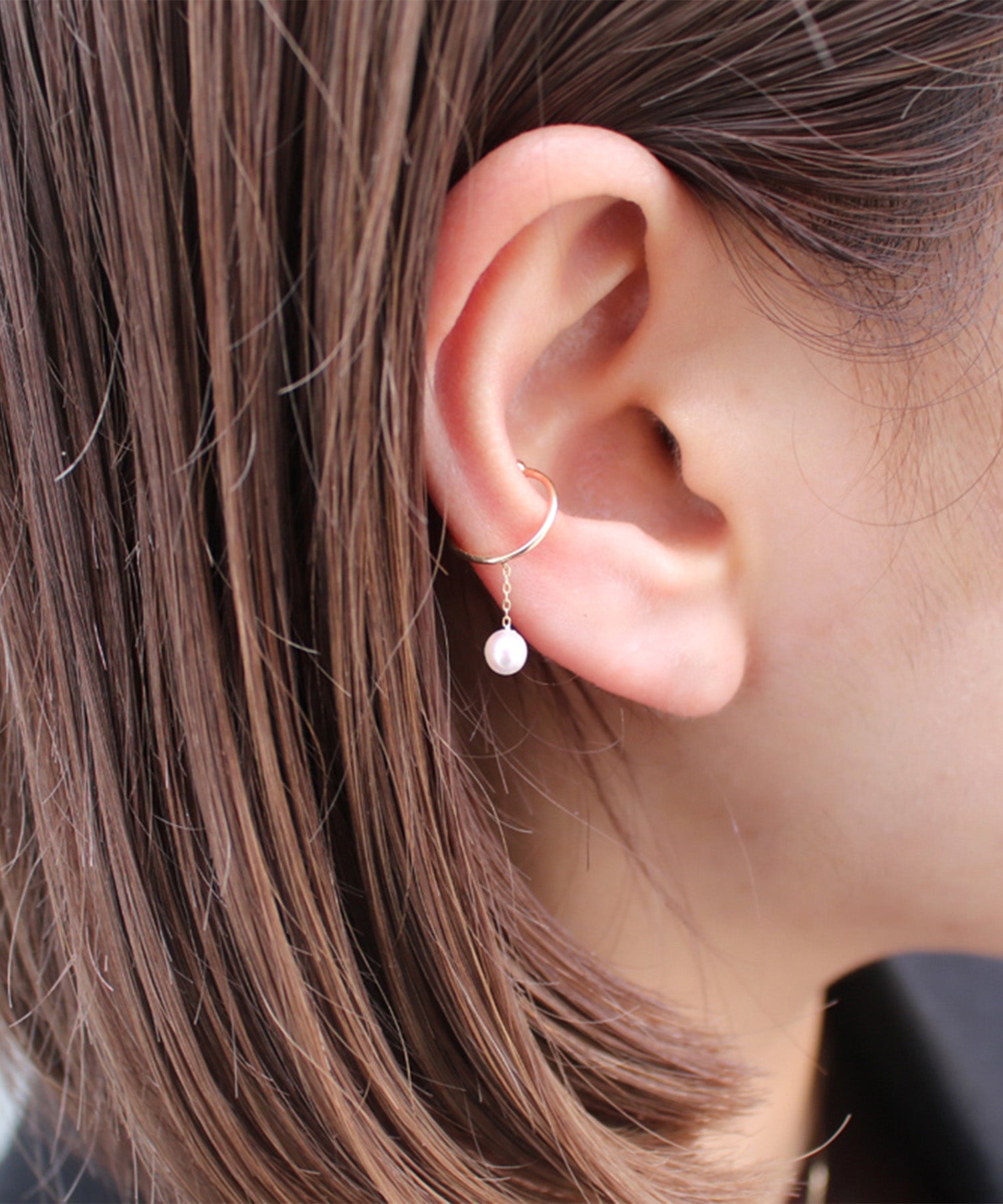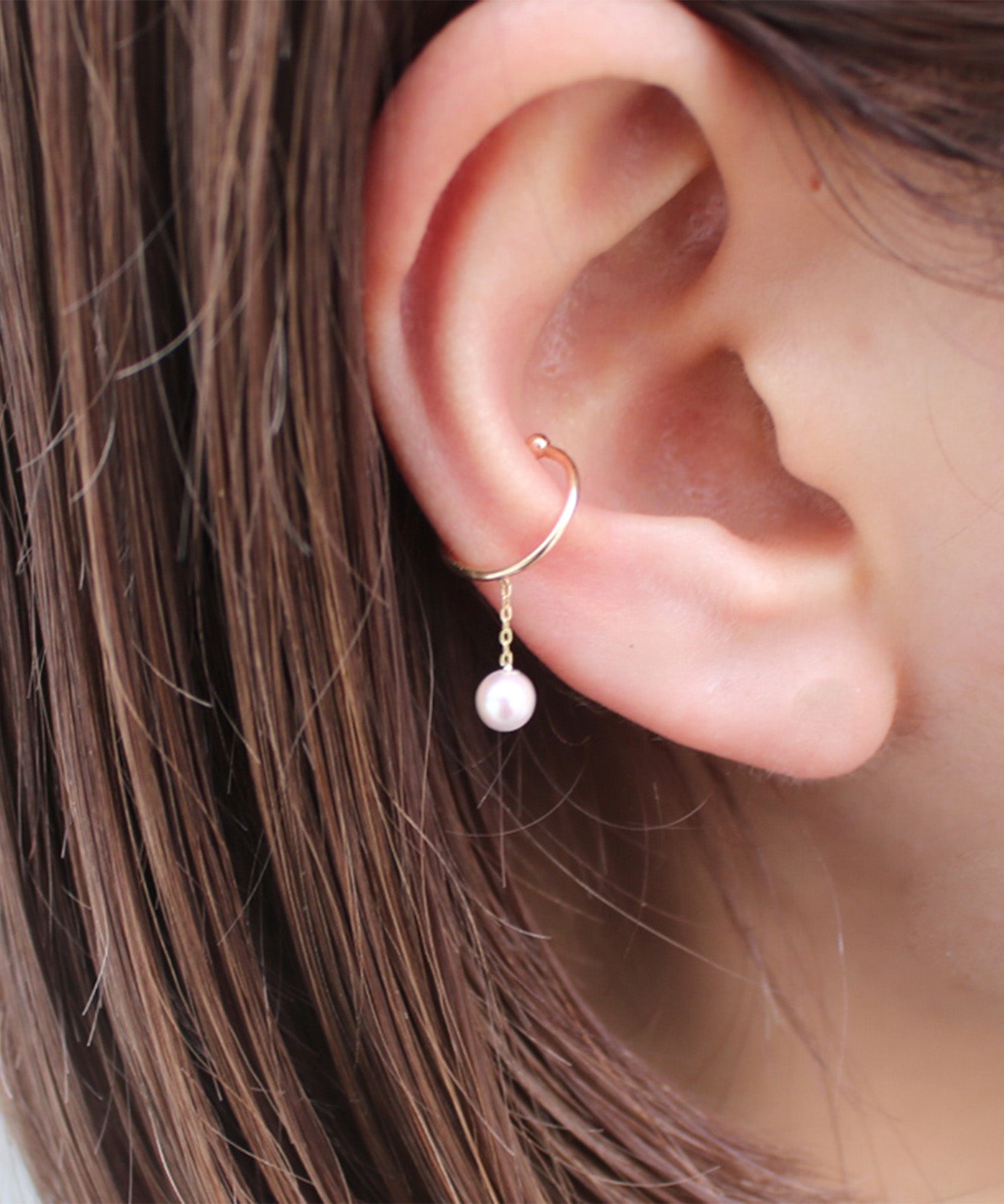 アコヤパールをチェーンにセッティングしたイヤーカフ。