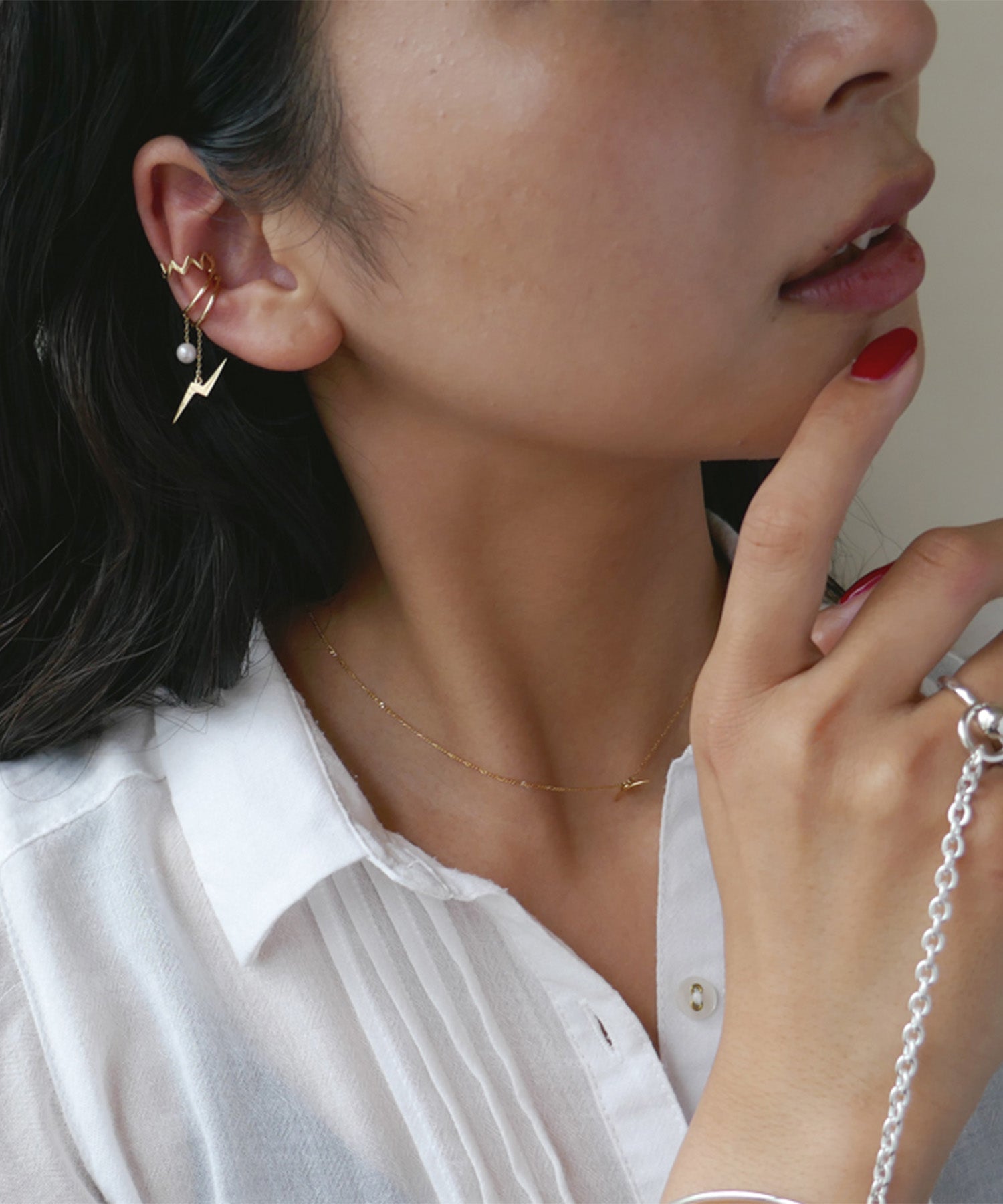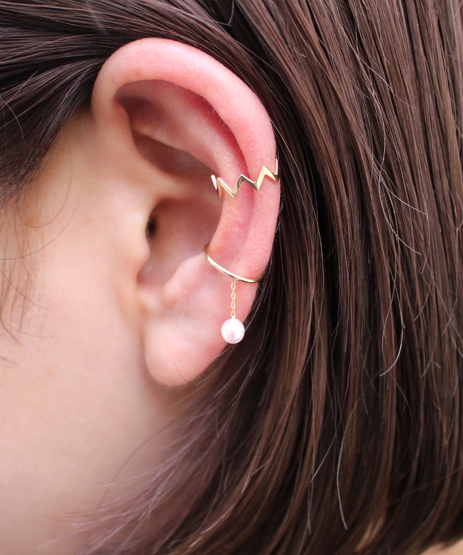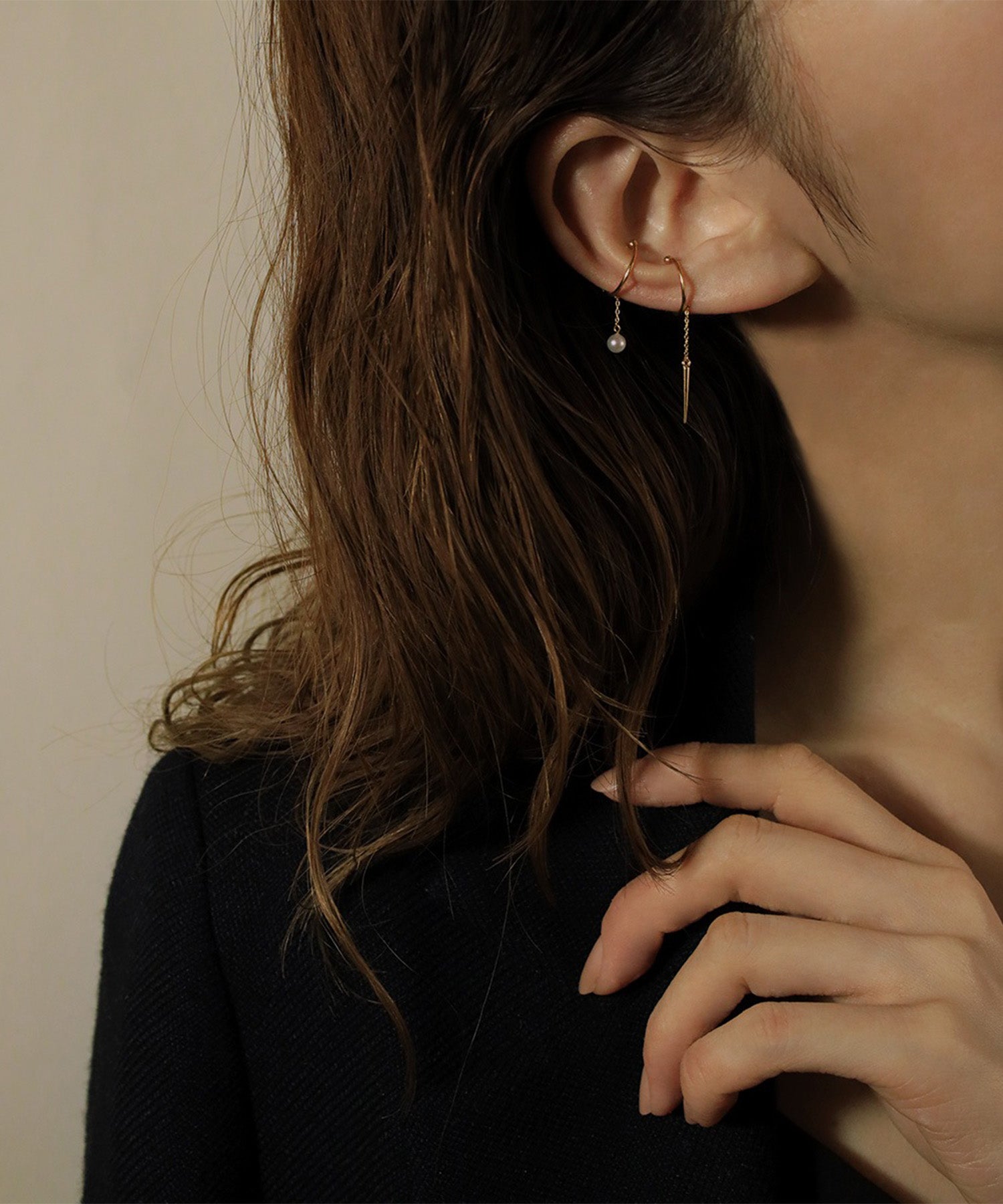 アコヤパールをチェーンにセッティングしたイヤーカフ。