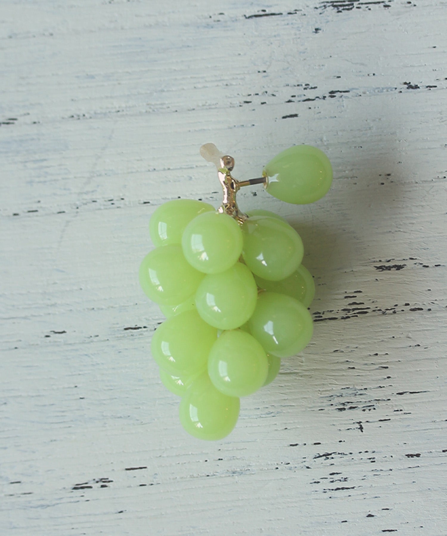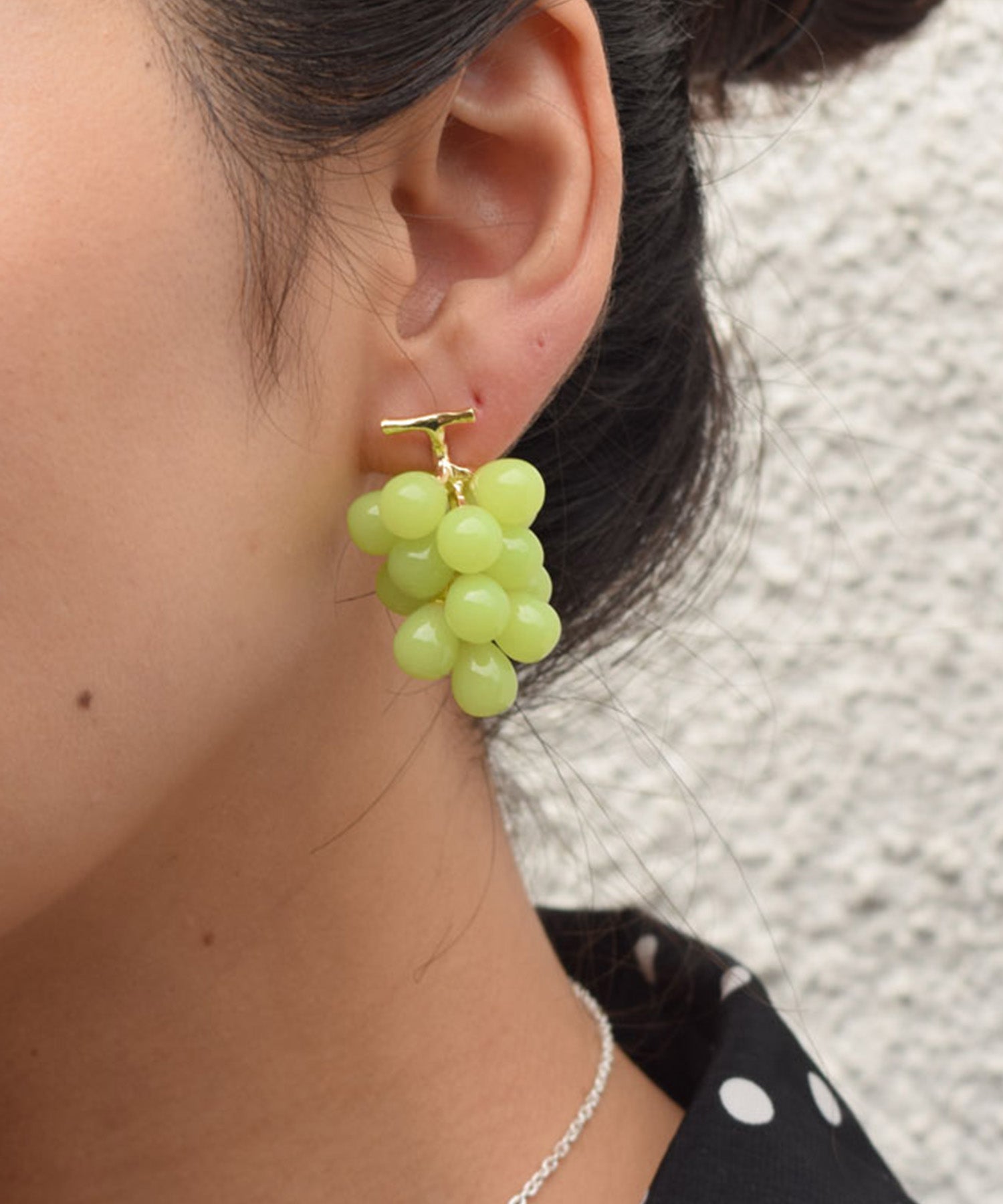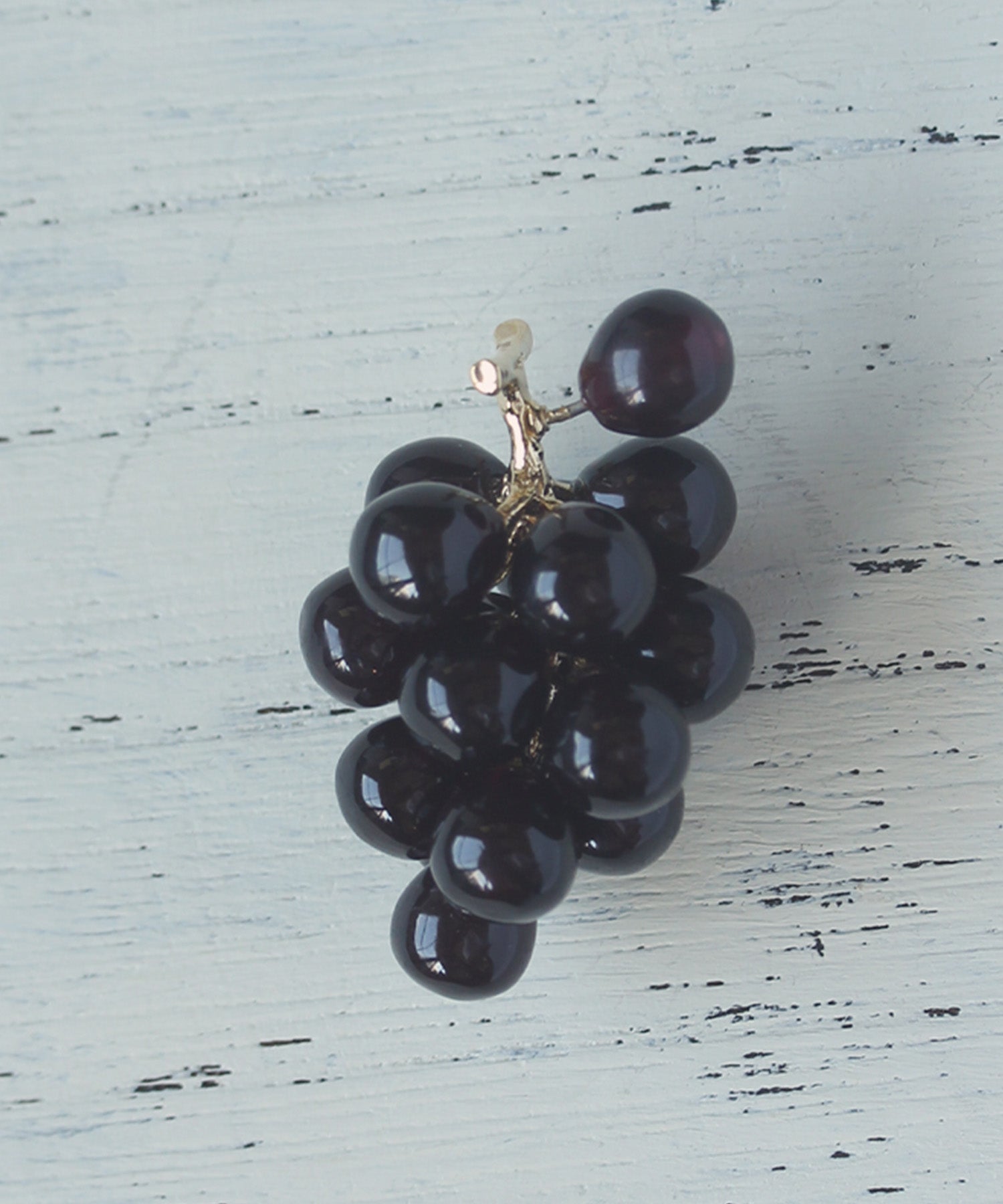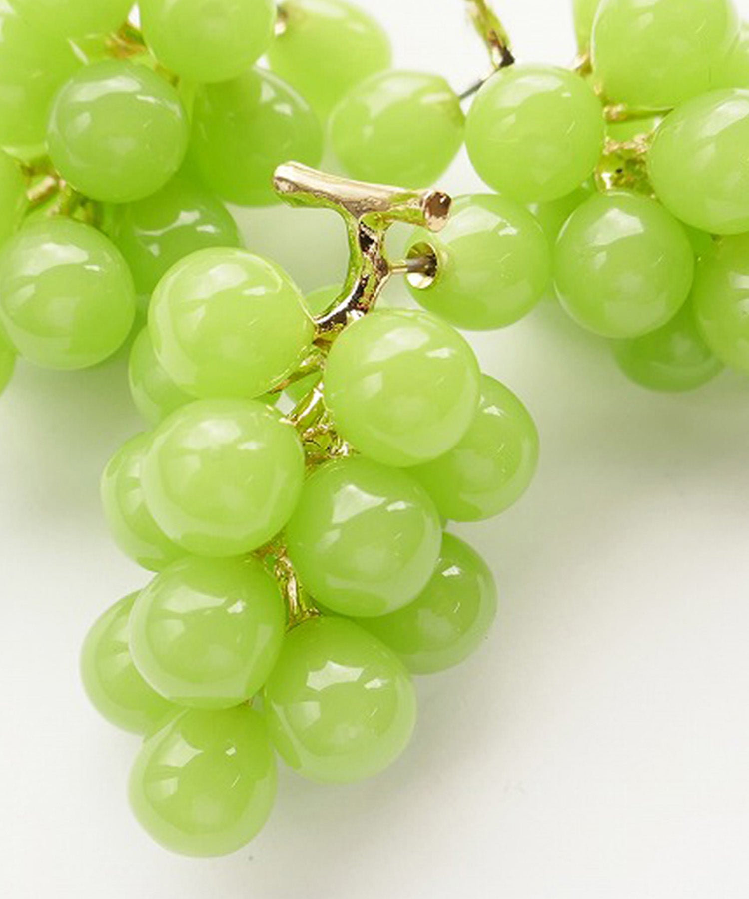 LOVE BY e.mのLOVE fruit!シリーズ。本物そっくりのグレープとマスカットのピアスは、実が1粒キャッチになっています。