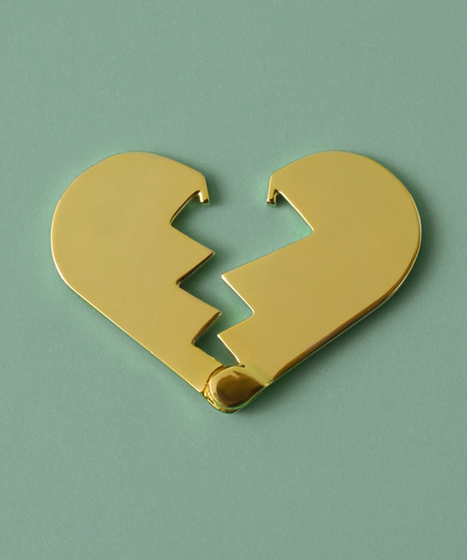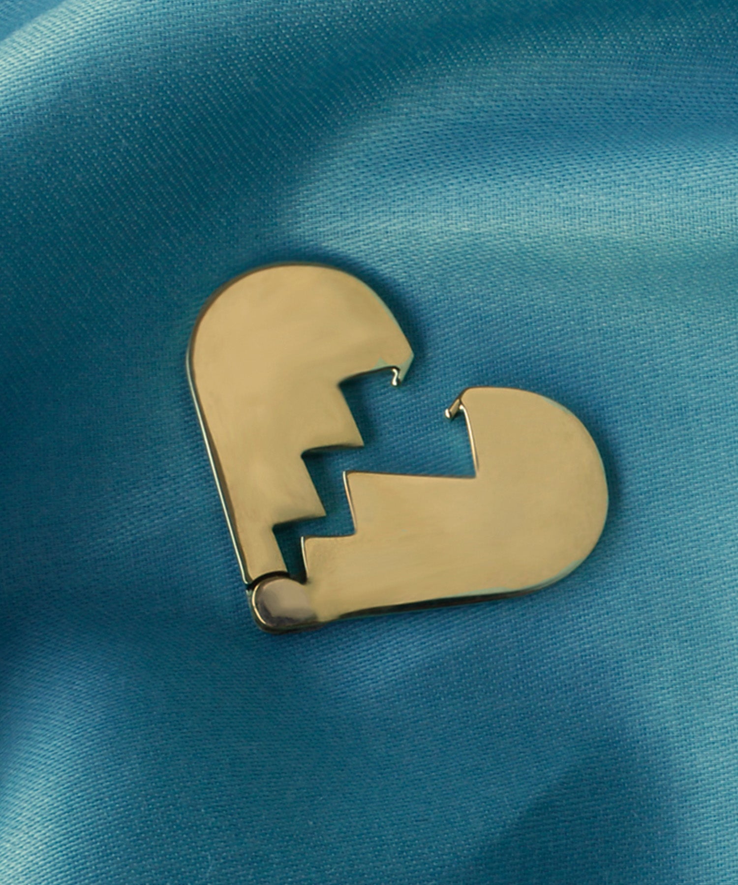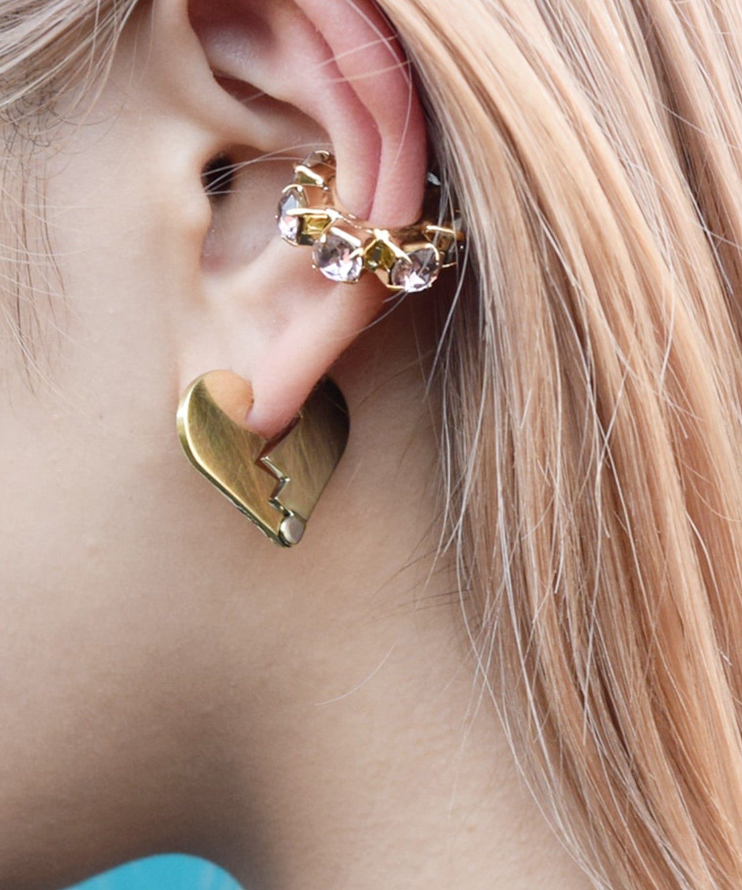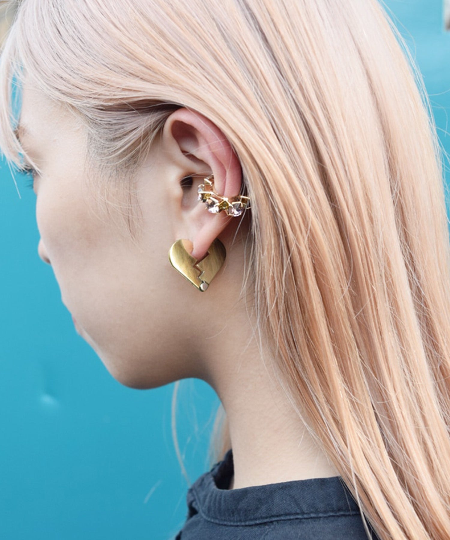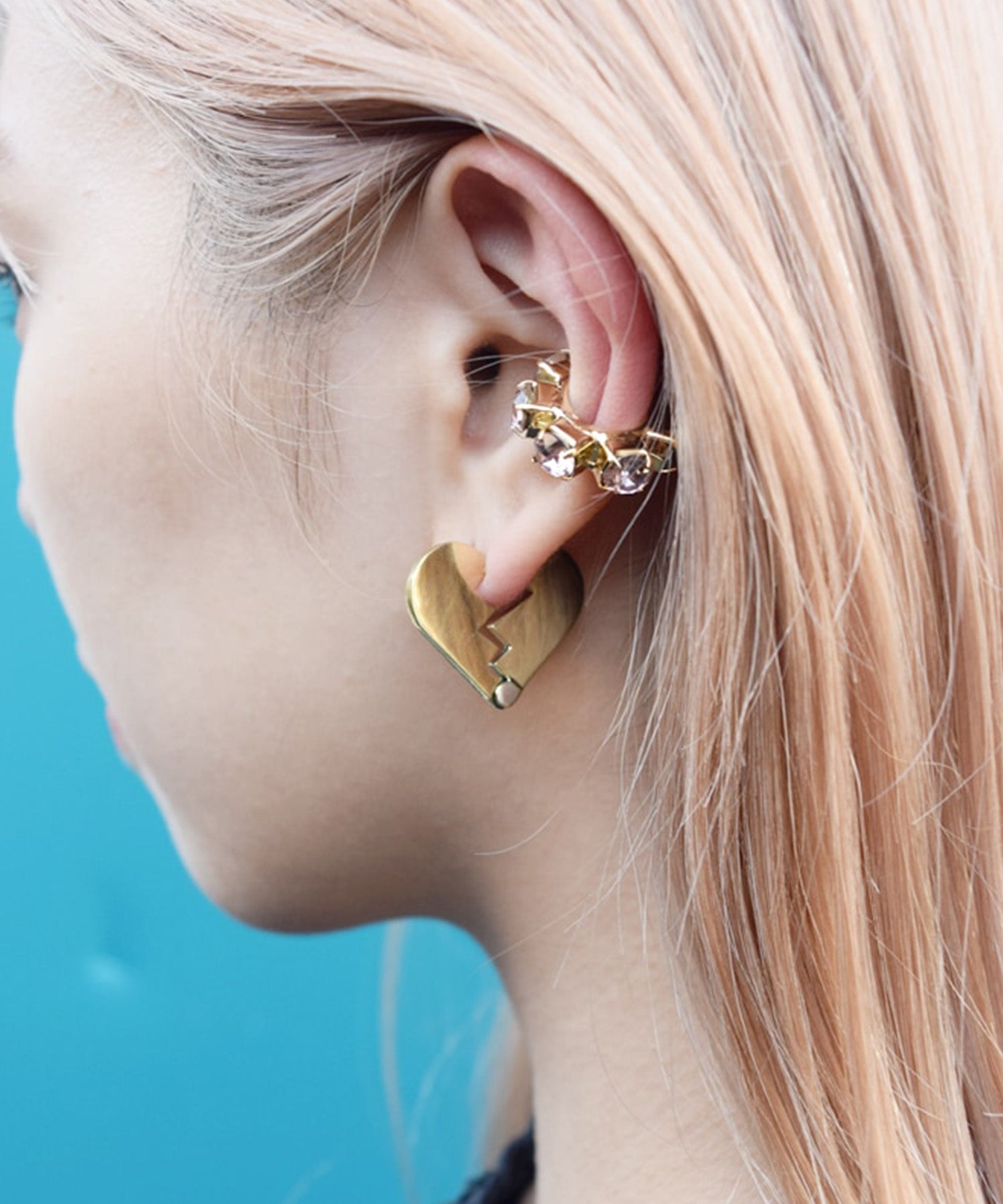 ジグザグにハートが割れたイヤリング。真ん中でぱっくり開いて耳たぶを挟み込んで
