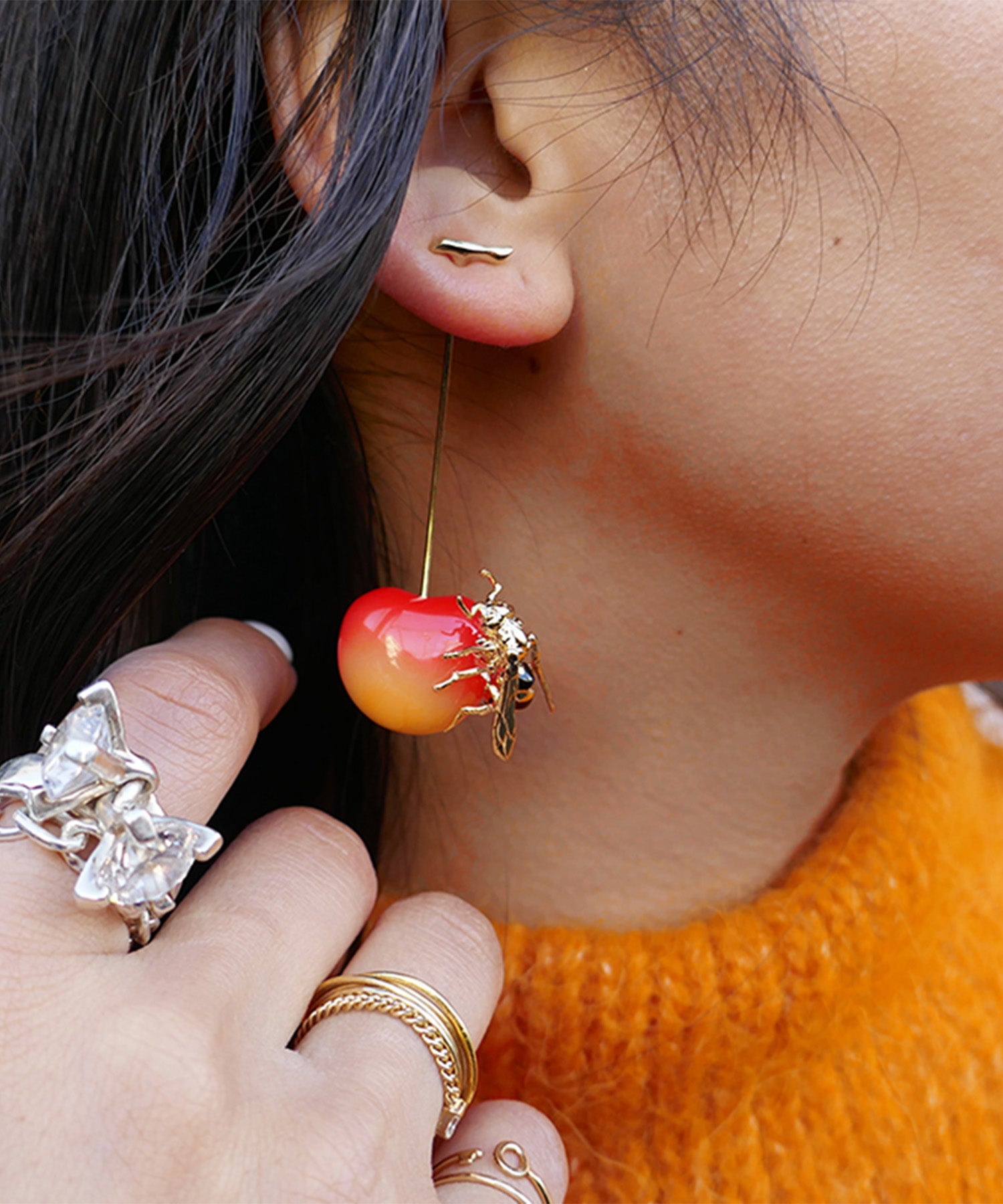 思わず食べたくなってしまうほどツヤツヤでみずみずしいフルーツピアス。