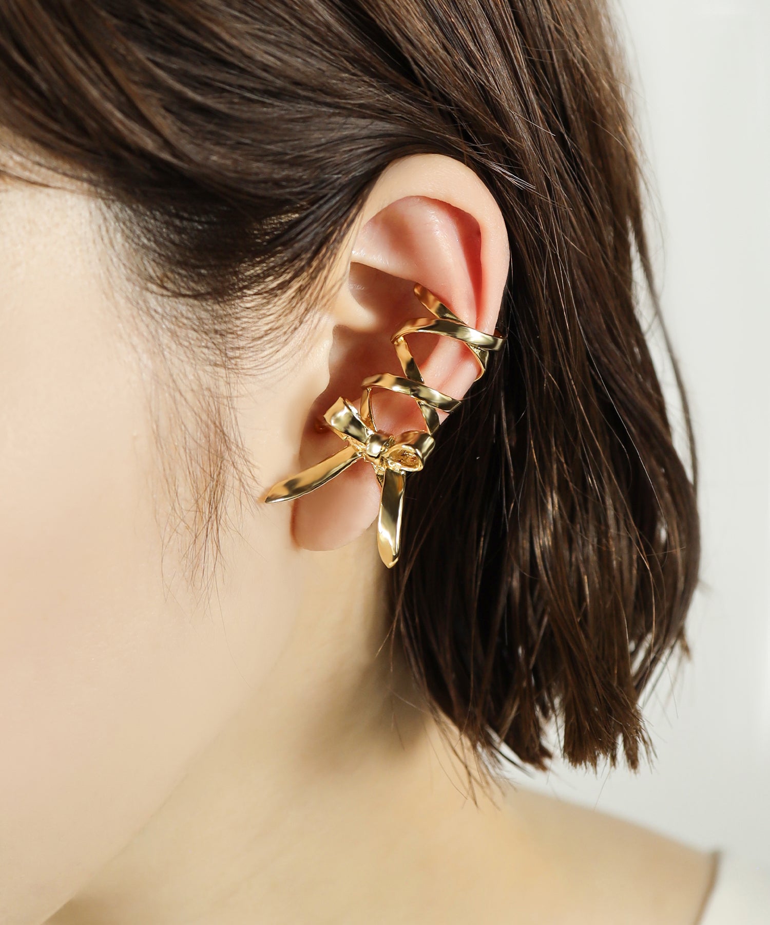 大きなリボンをモチーフにしたイヤーカフ。