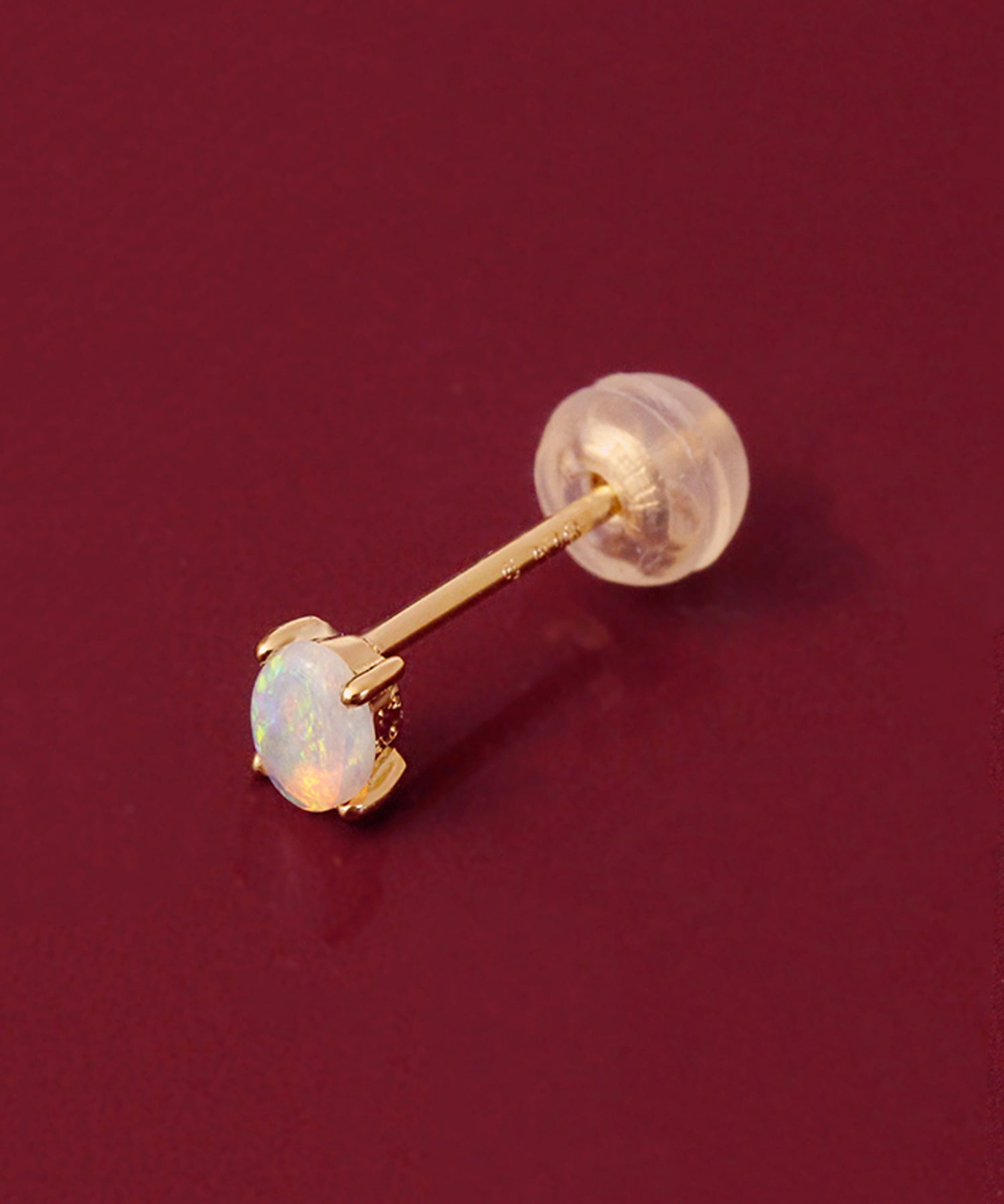 オーバルカットのオパールのピアス。石の美しさが際立つよう立て爪を小さくシンプルに仕上げたました。