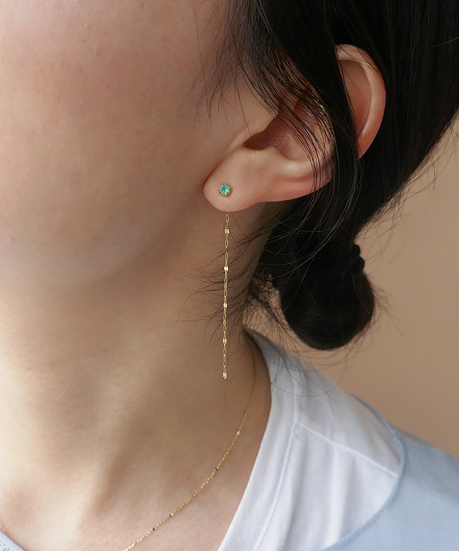 キャッチ部分にチェーンが付いているのでキャッチを替えてカラーストーンのみでお楽しみいただくこともできます。