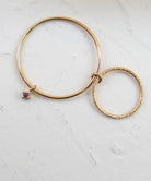 ゆらゆらと揺れるまるがぶら下がる細身のゴールドリング。