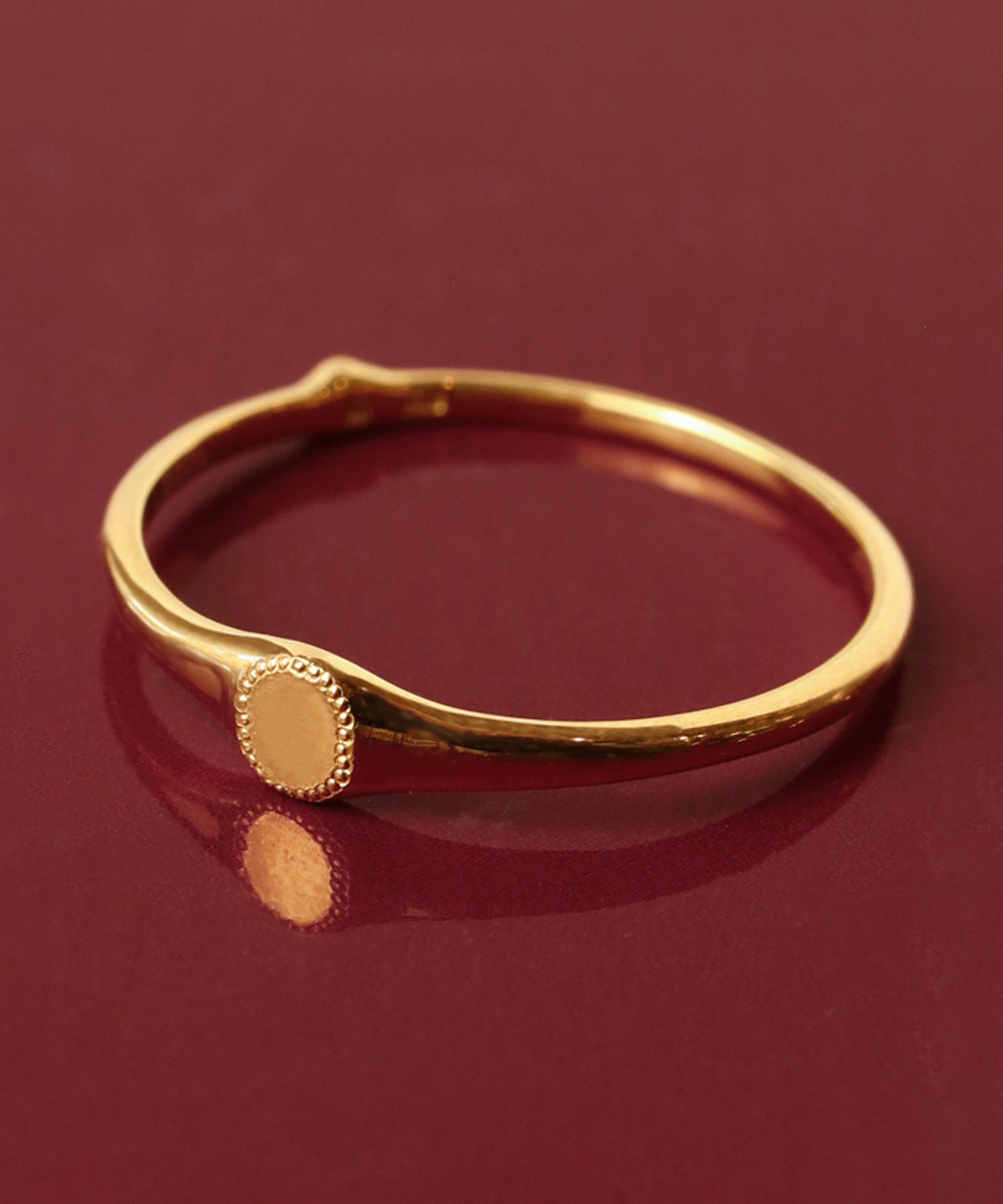 ミル打ち加工をほどこしたゴールドの印台リング。