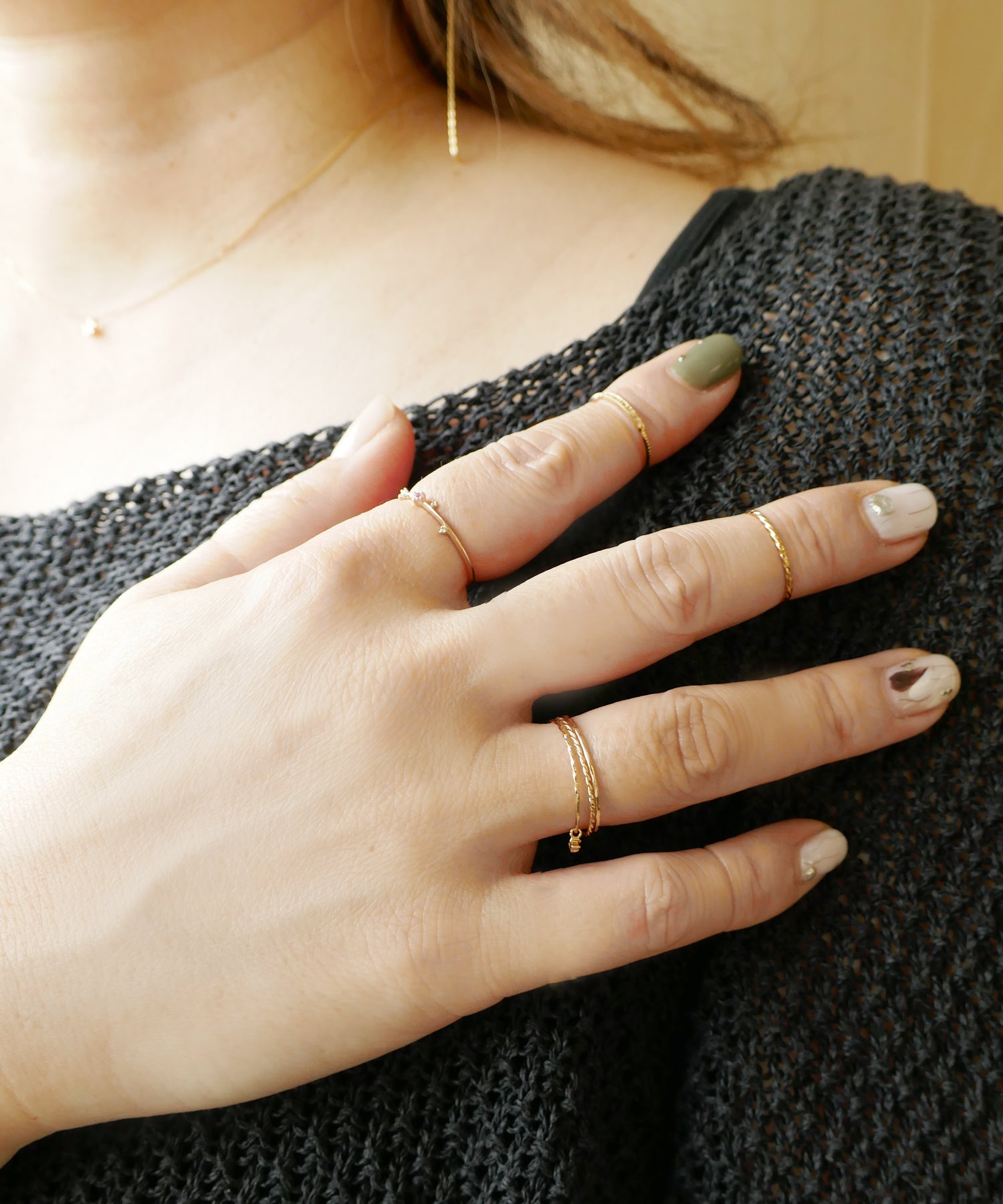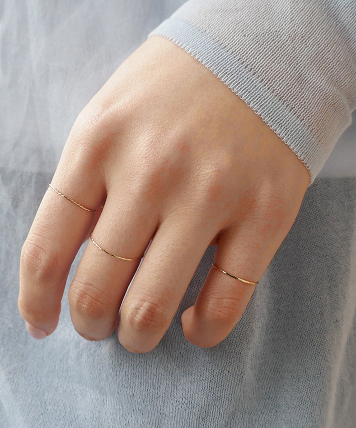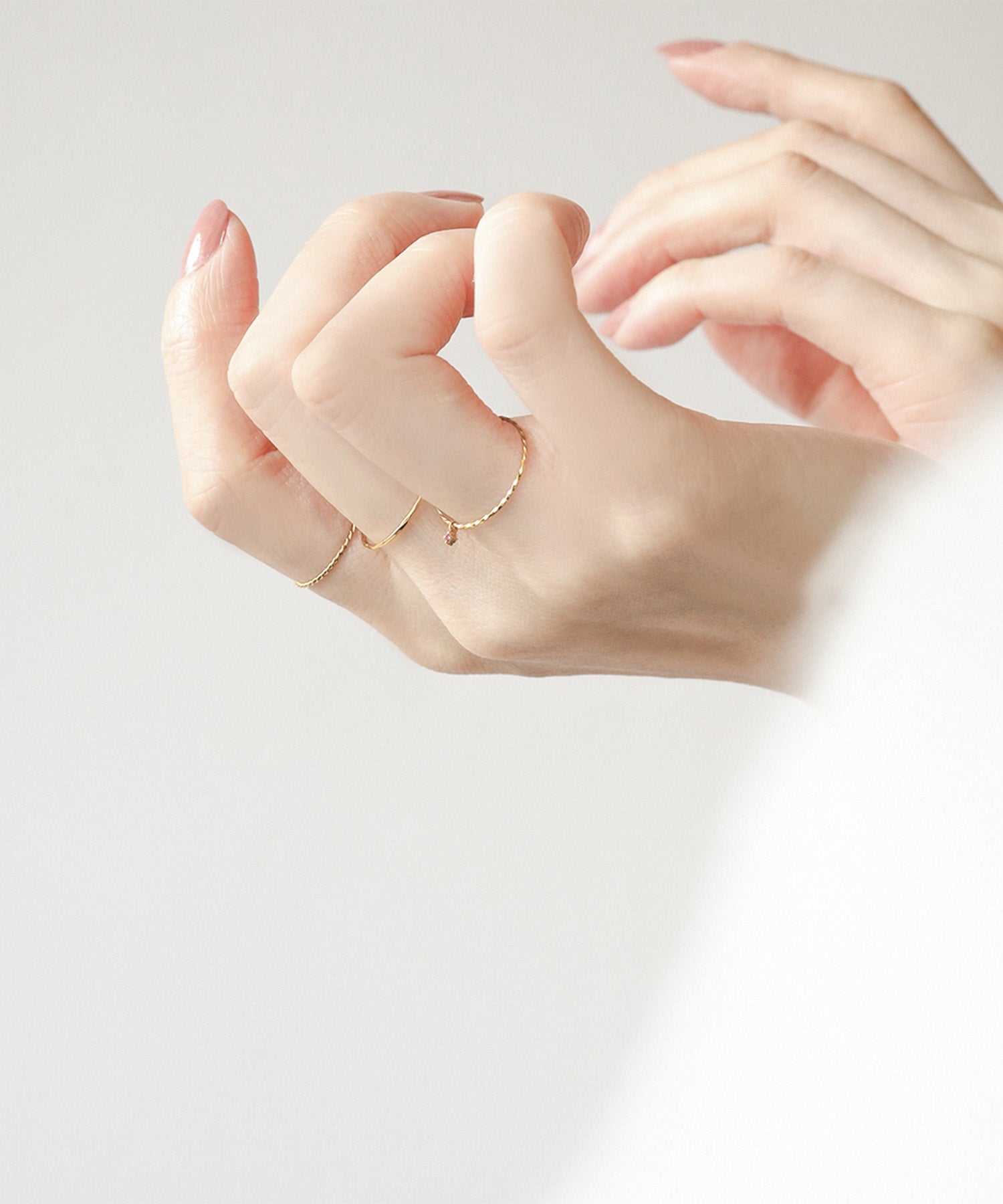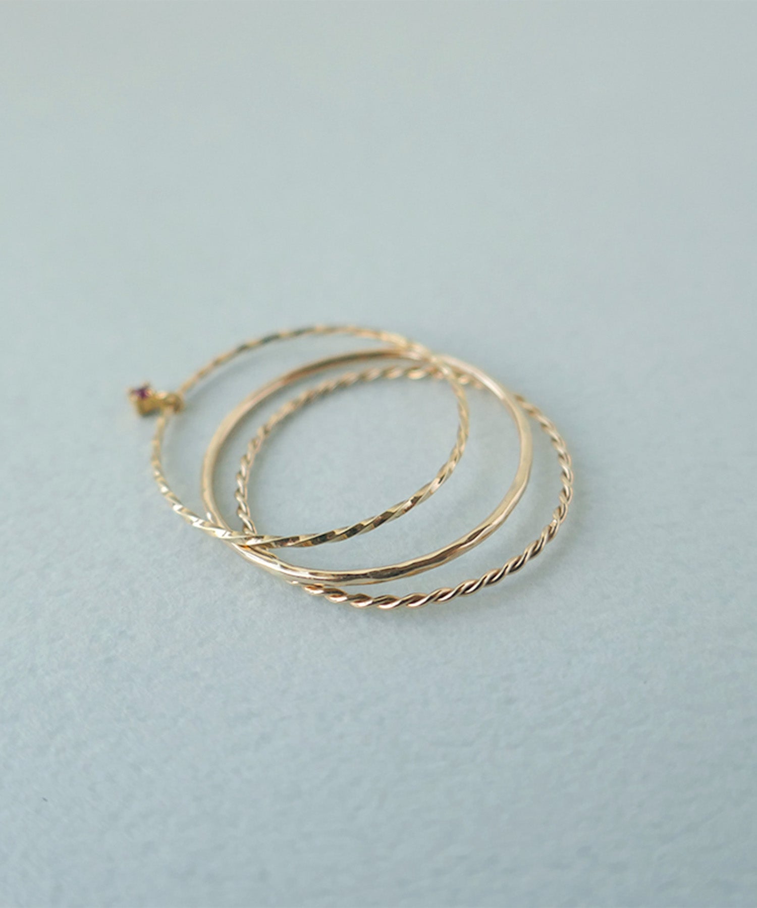 3本重ねて着けることで存在感とリング同士の交わりを魅力的に引き立たせます。