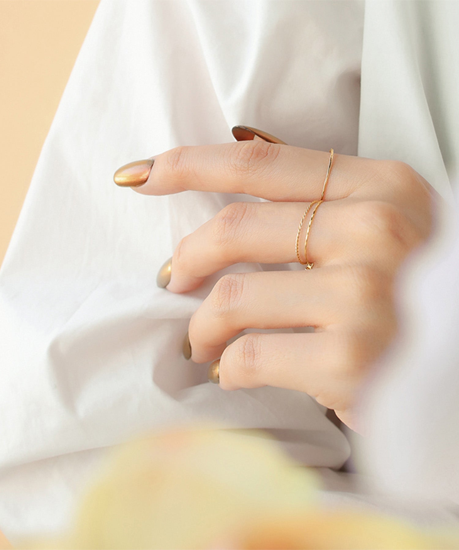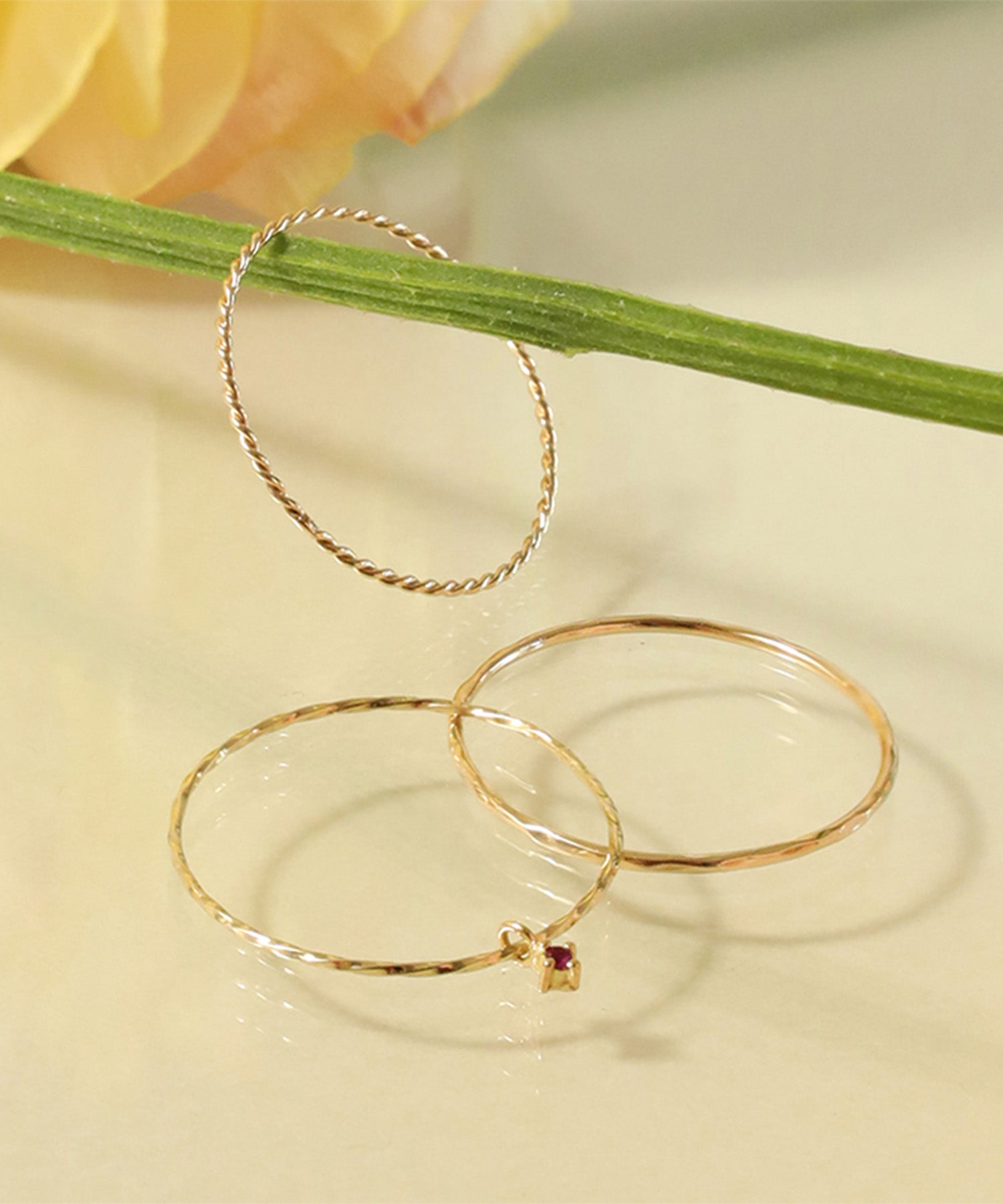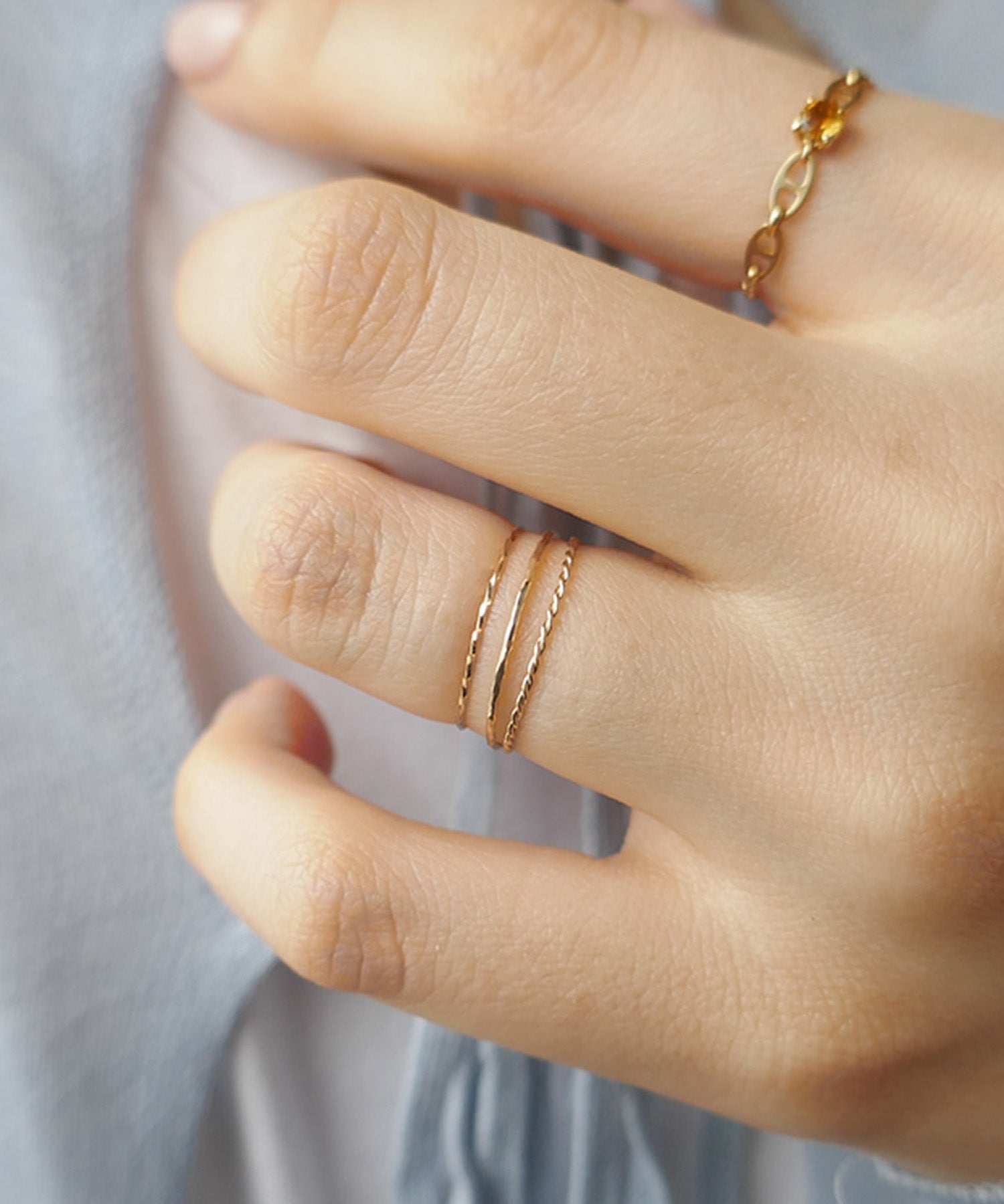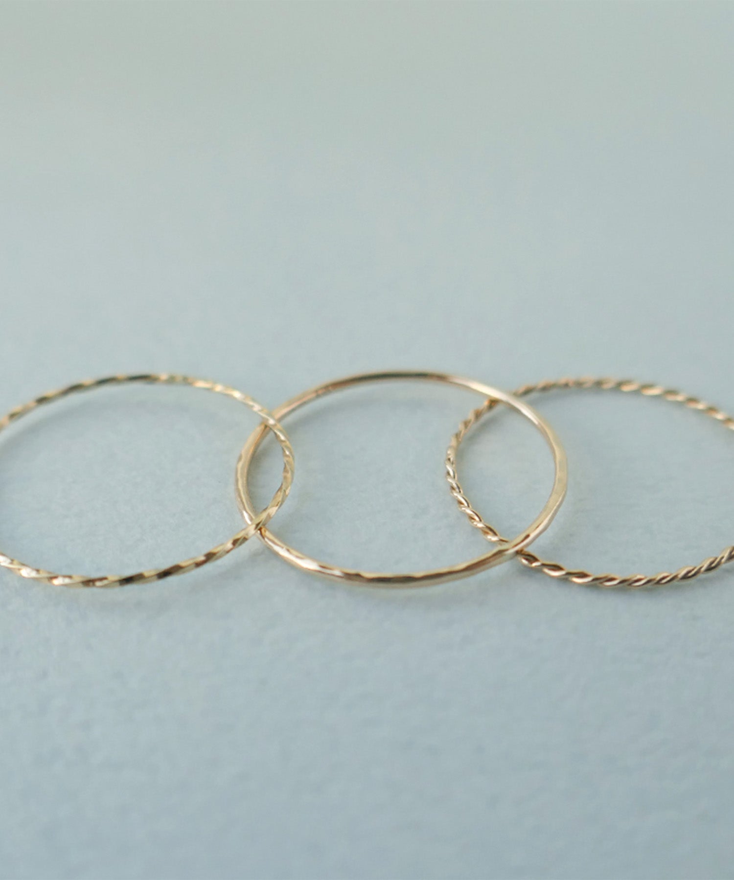 3本重ねて着けることで存在感とリング同士の交わりを魅力的に引き立たせます。