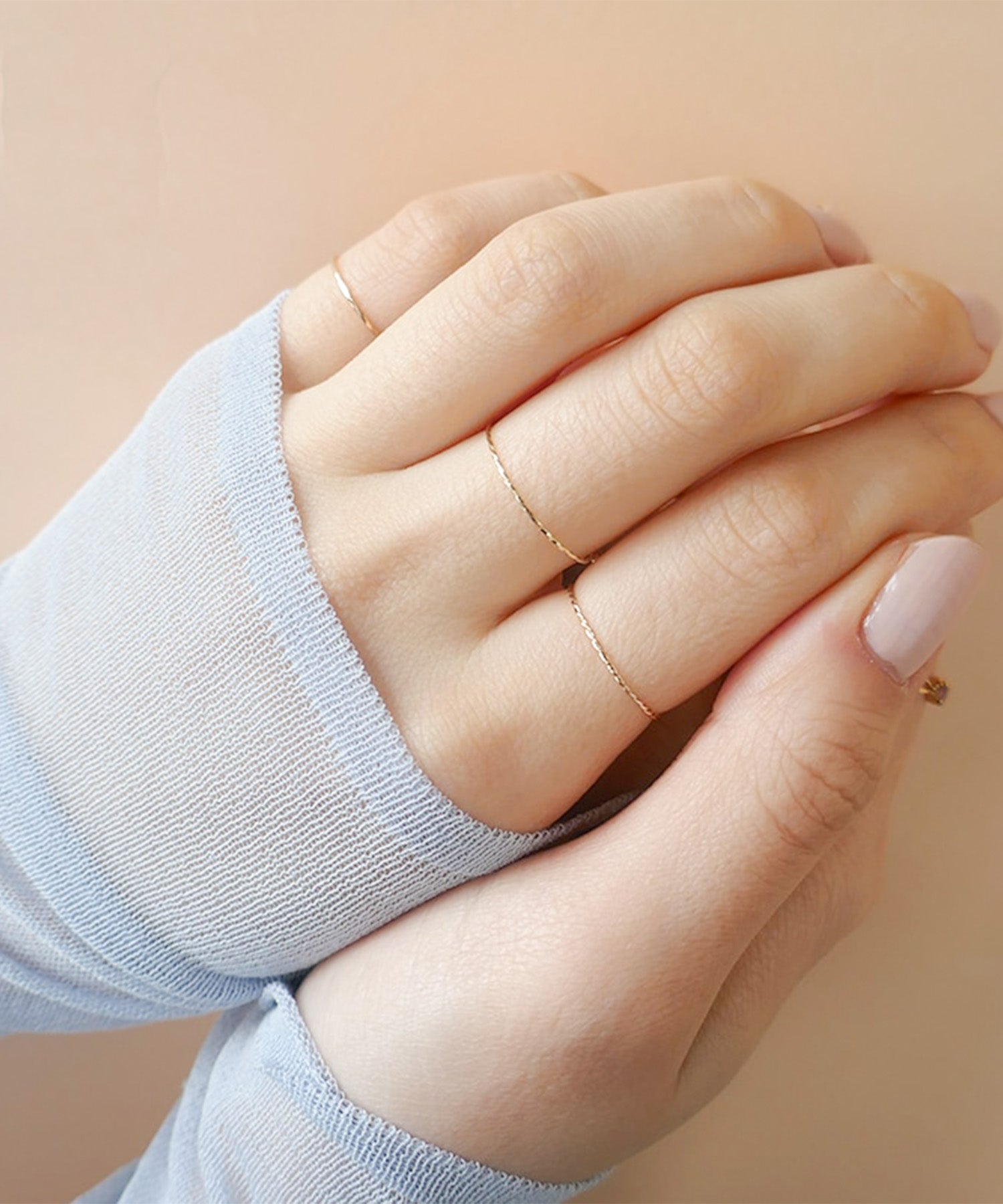 3種のコンビネーションリング。リングそれぞれのテクスチャーが素肌に溶け込むスキンジュエリー。