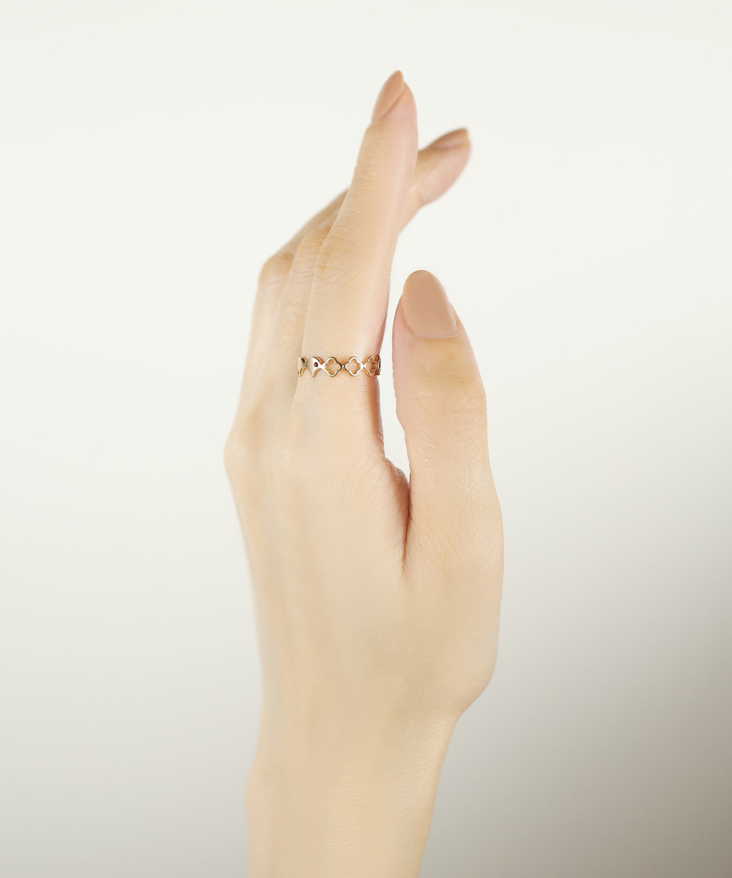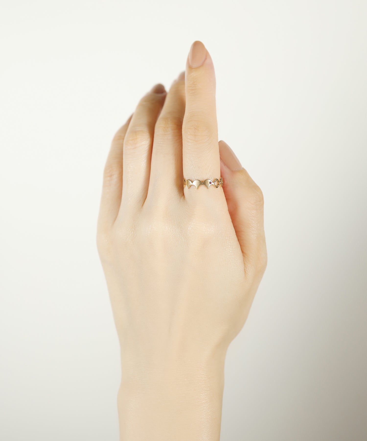 着ける向きによって異なる表情が魅力のデザインは