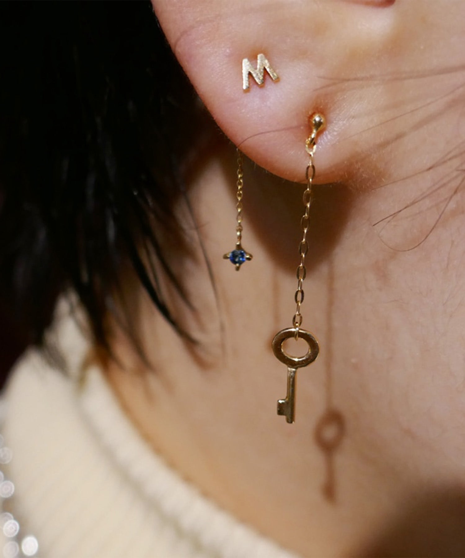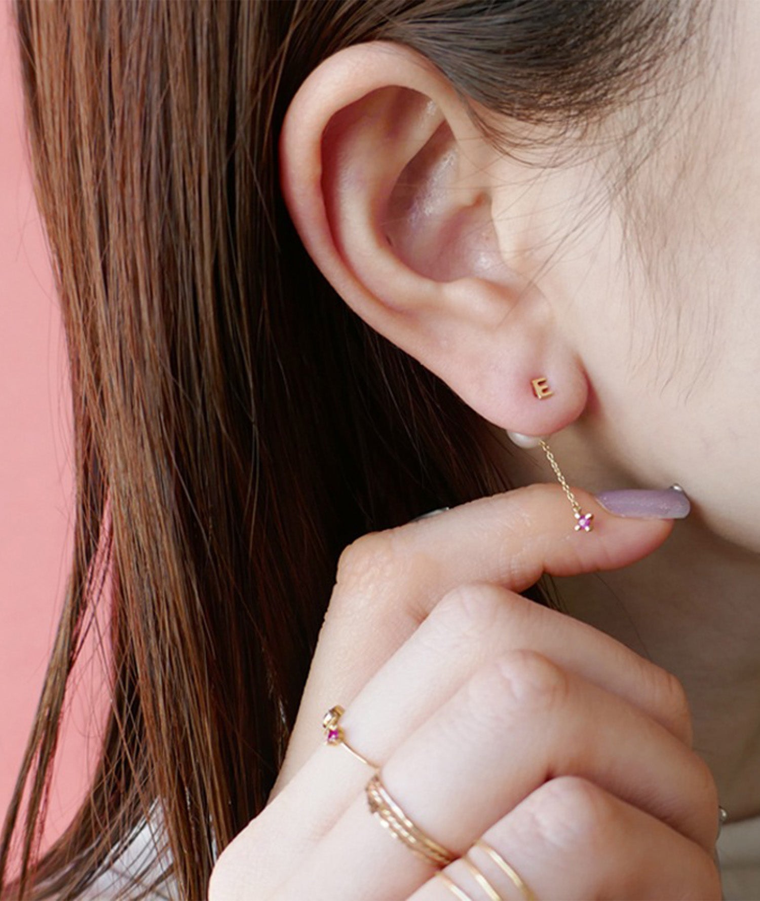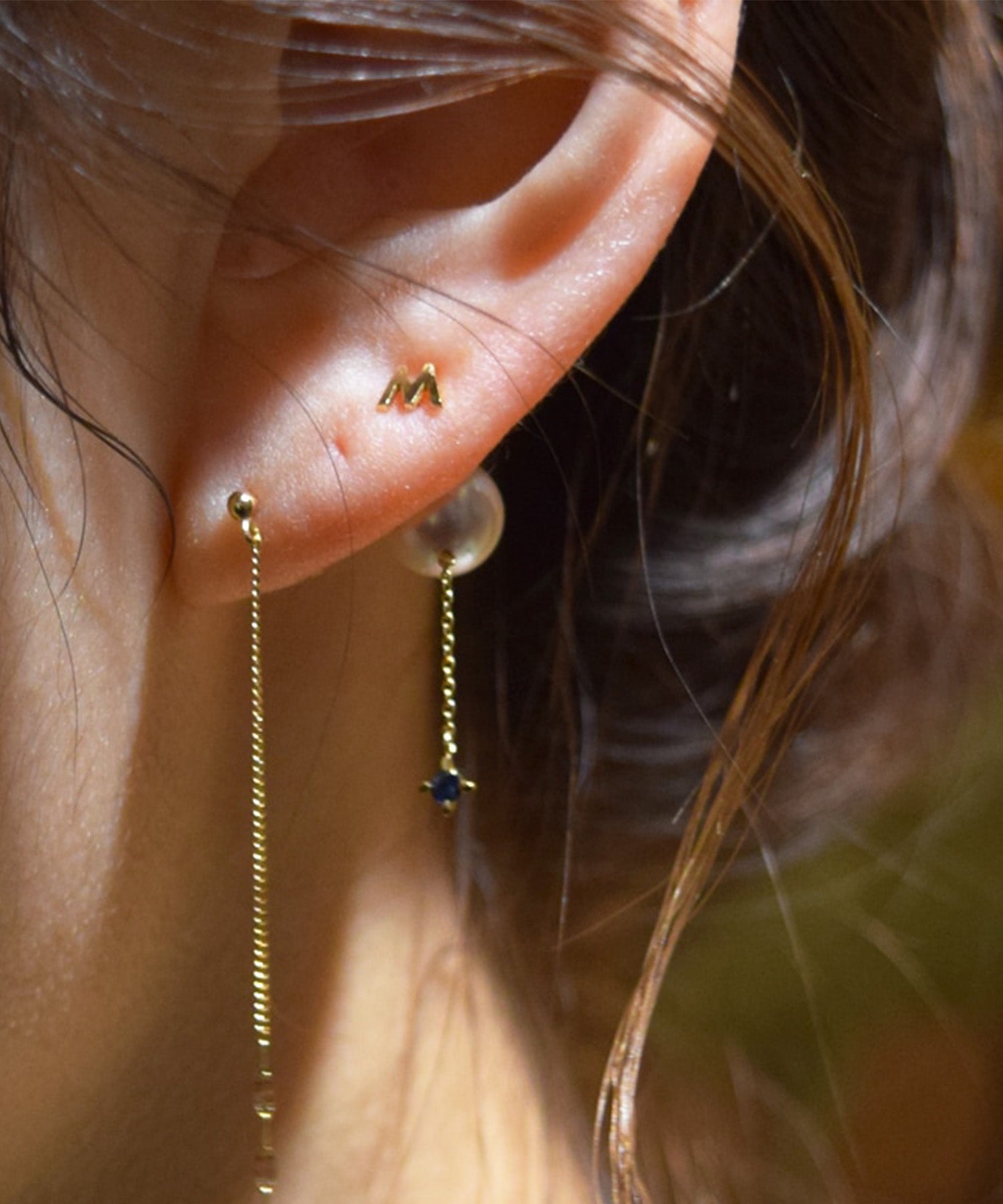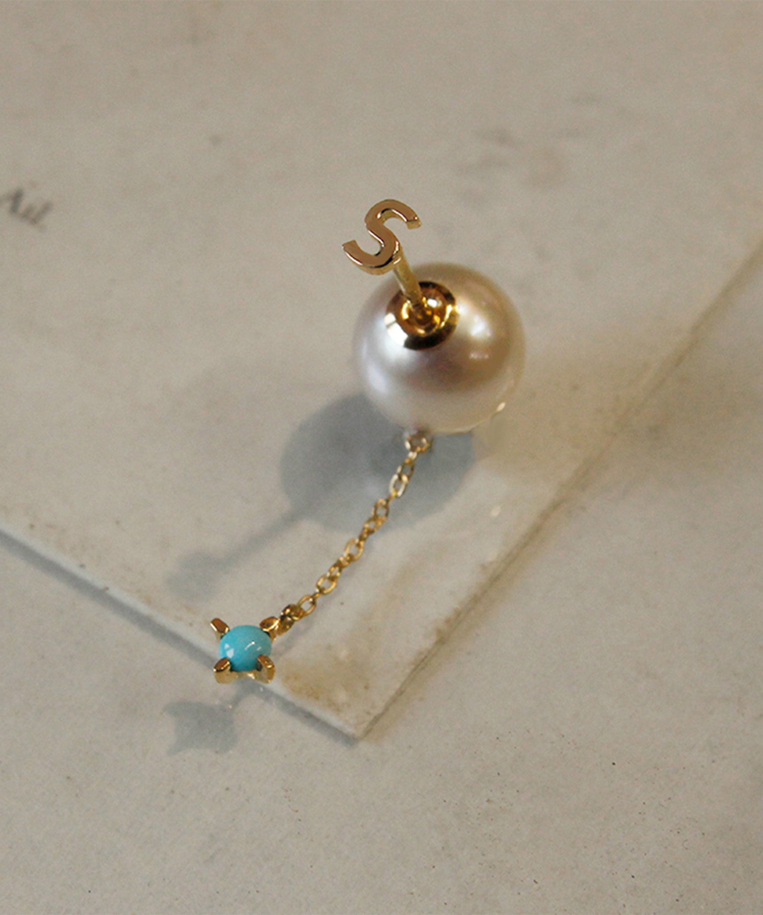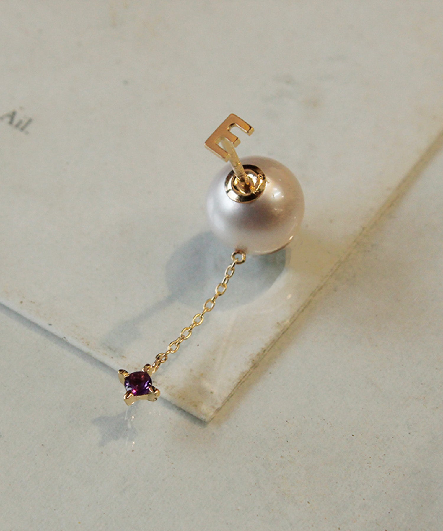It'sjustme.わたしだけのモノをずっとずっと大切にしたいながく愛せるジュエリーを好きな文字で作るミニマルでシンプルなブロック体のアルファベットピアスに天然石が揺れるパールキャッチがついた贅沢なアイテム。誕生石や好きなカラーの石をセレクトして自分だけのお気に入りの組み合わせを選んで。