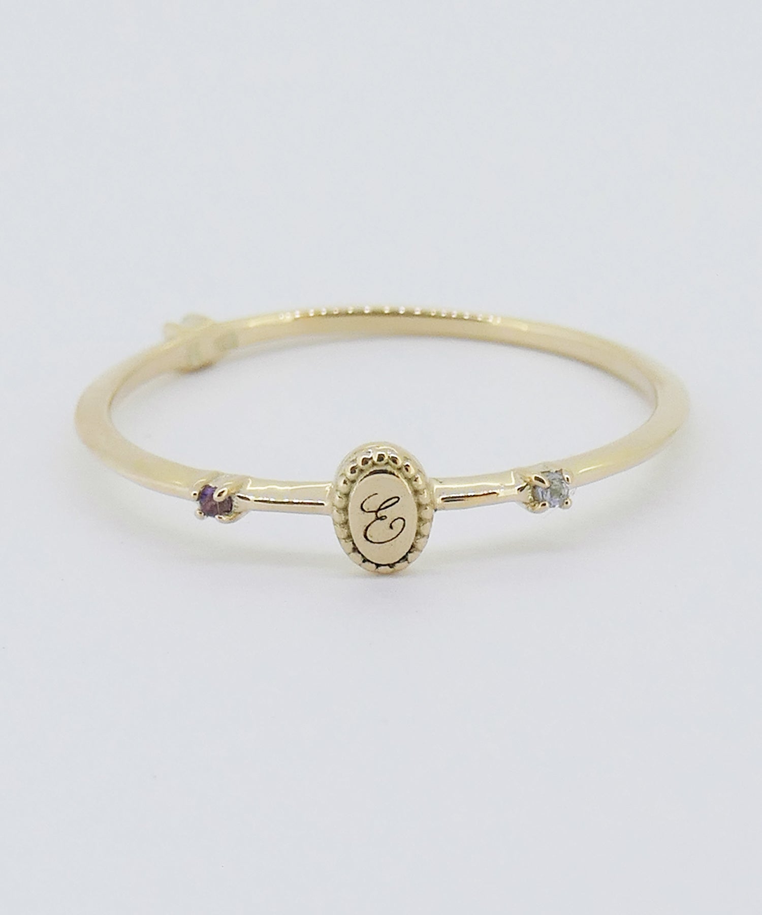 アルファベット1文字と誕生石2石を組み合わせられるデザインは、