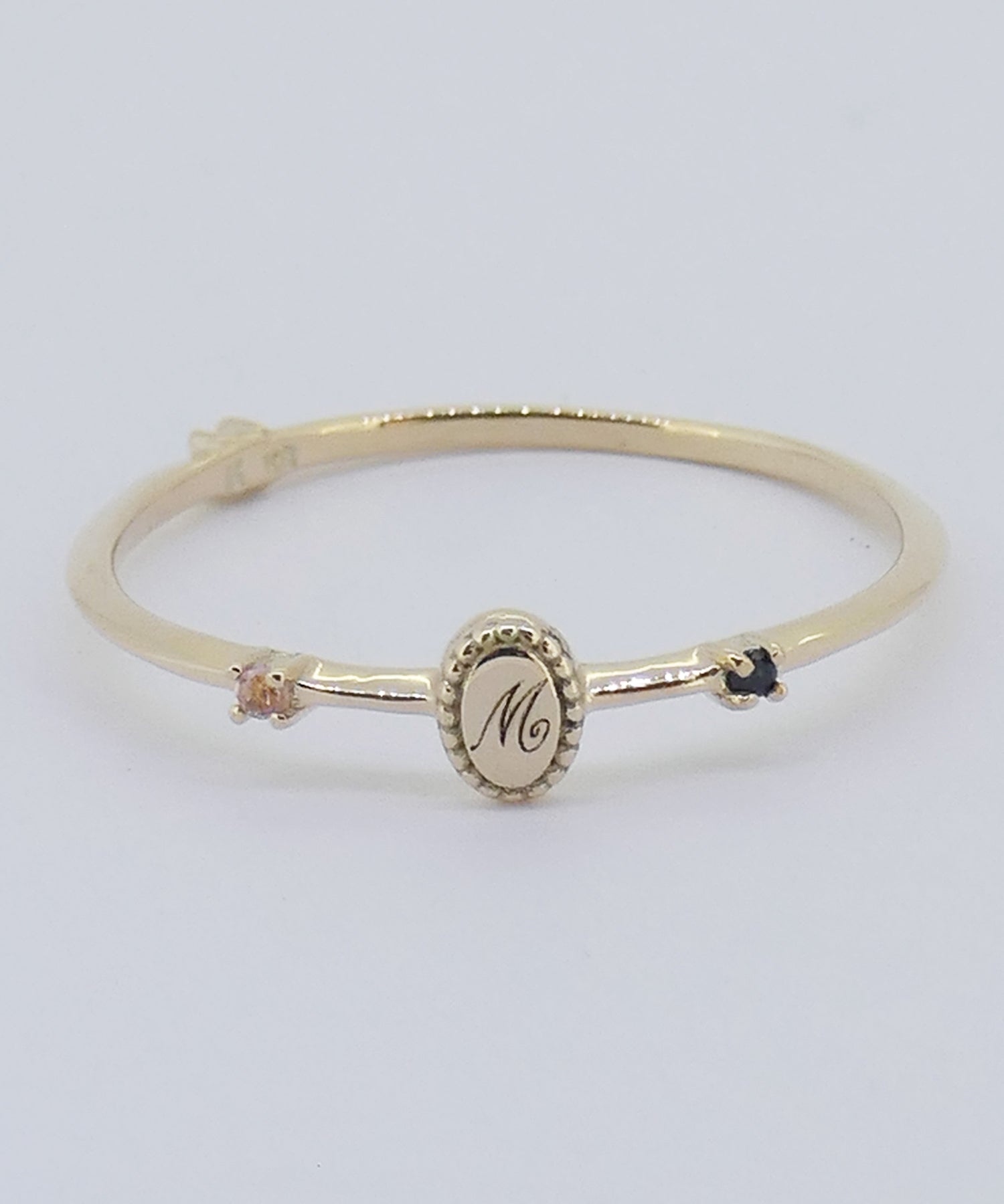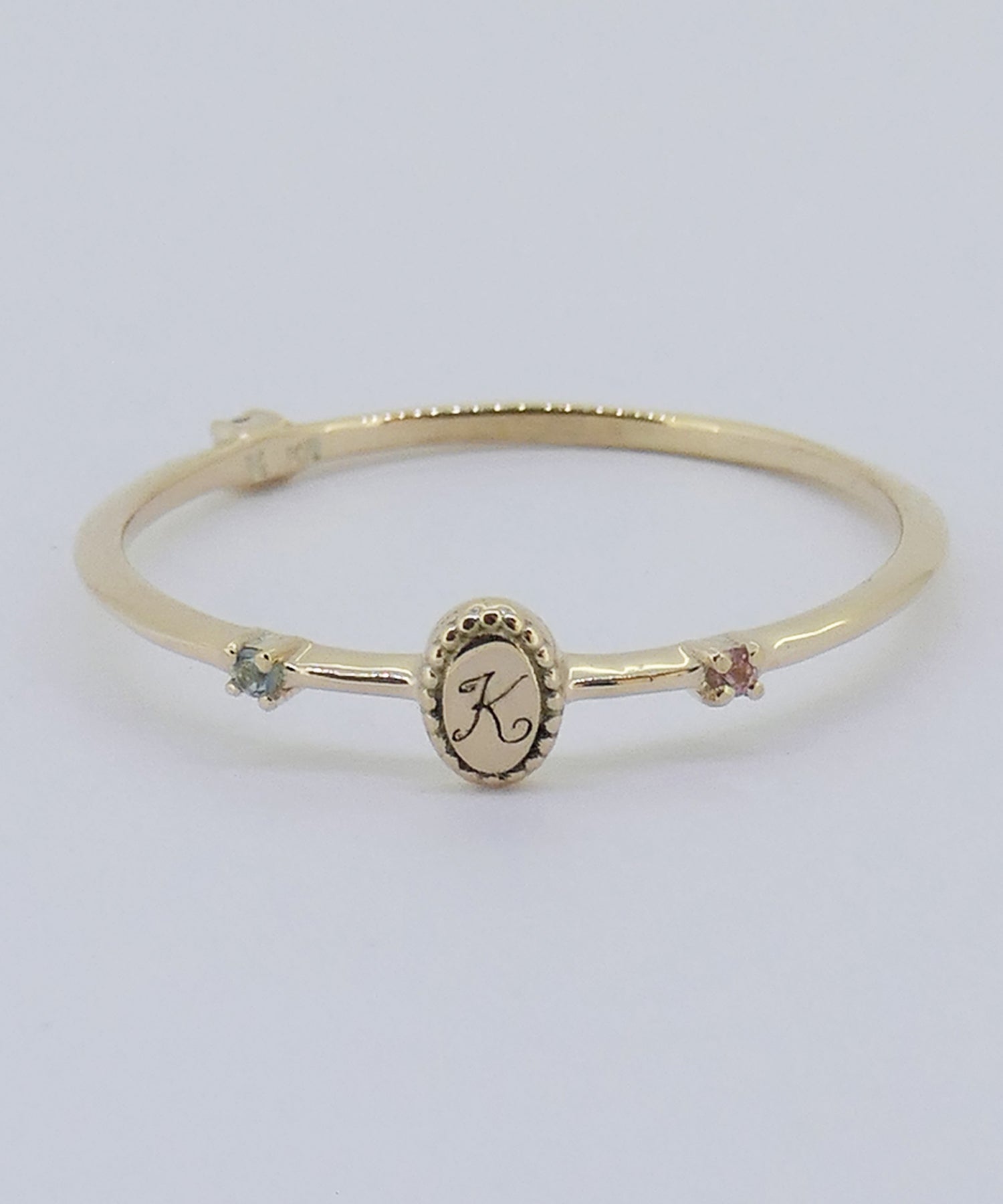 アルファベットを1文字と両サイドのストーンをセレクトできるオーダーメイドリング。