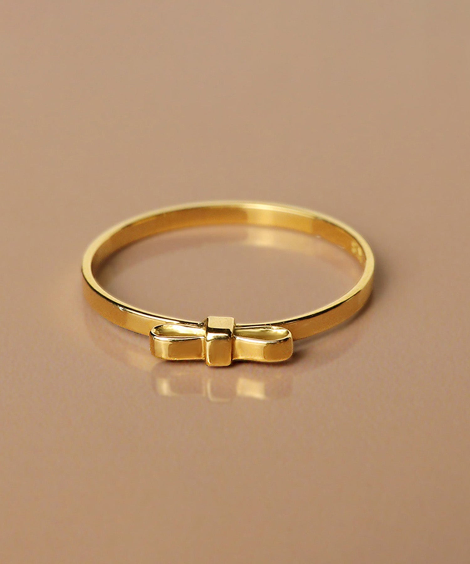 リボンのモチーフがついた平打ちのシンプルなリング。