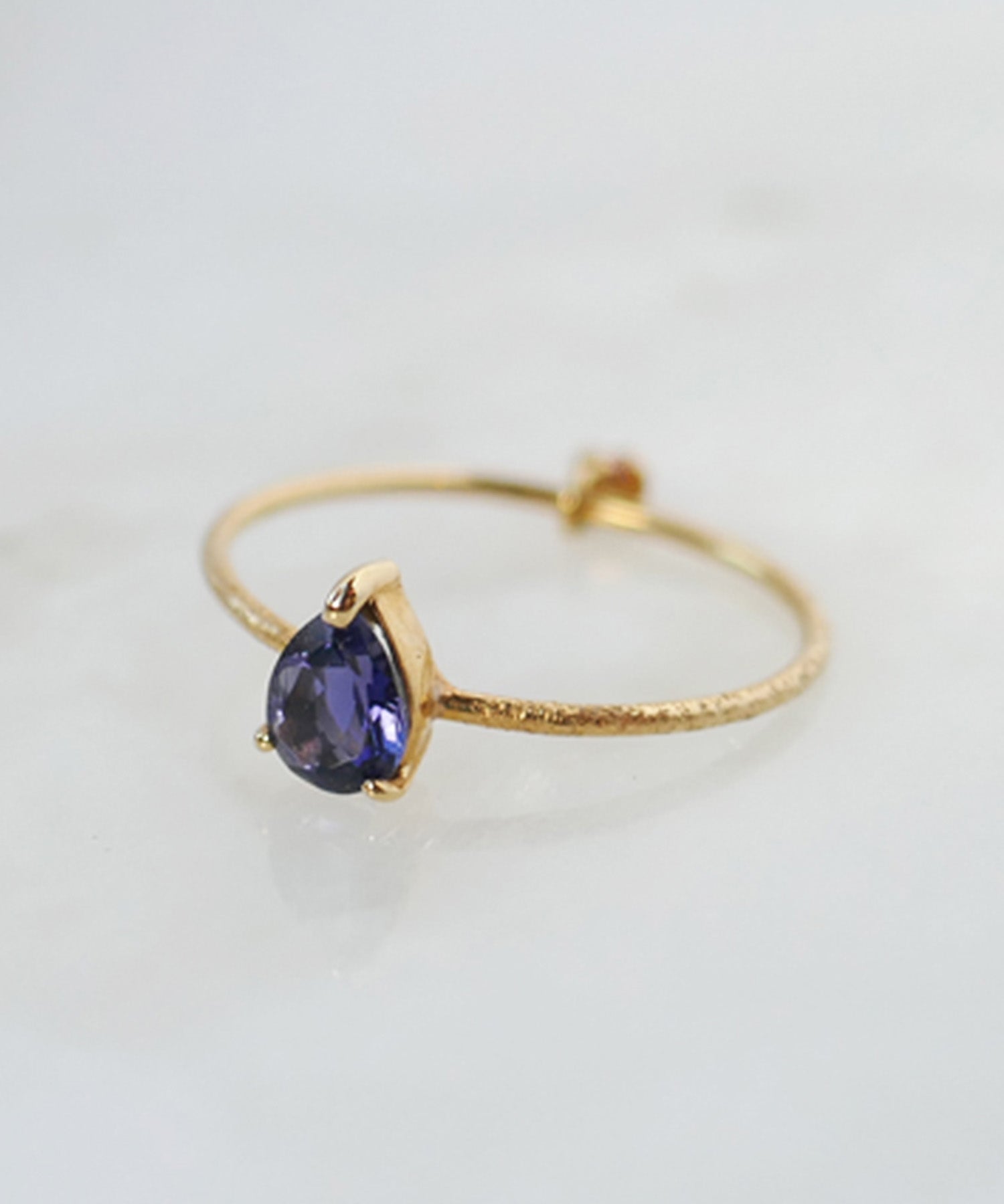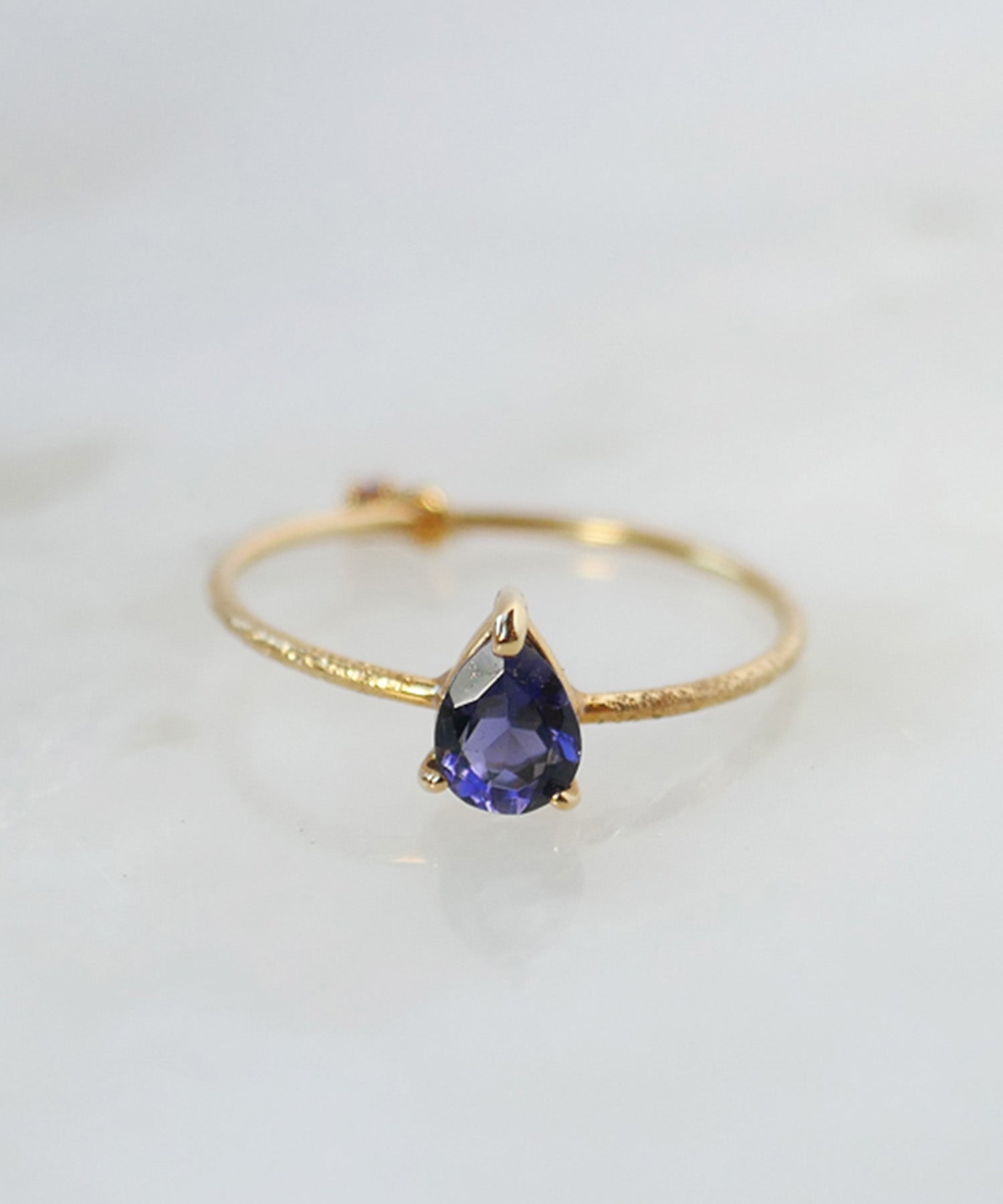 深いすみれ色が美しいアイオライトのリング。角度によって青や紫など表情が変わるのも魅力的です。