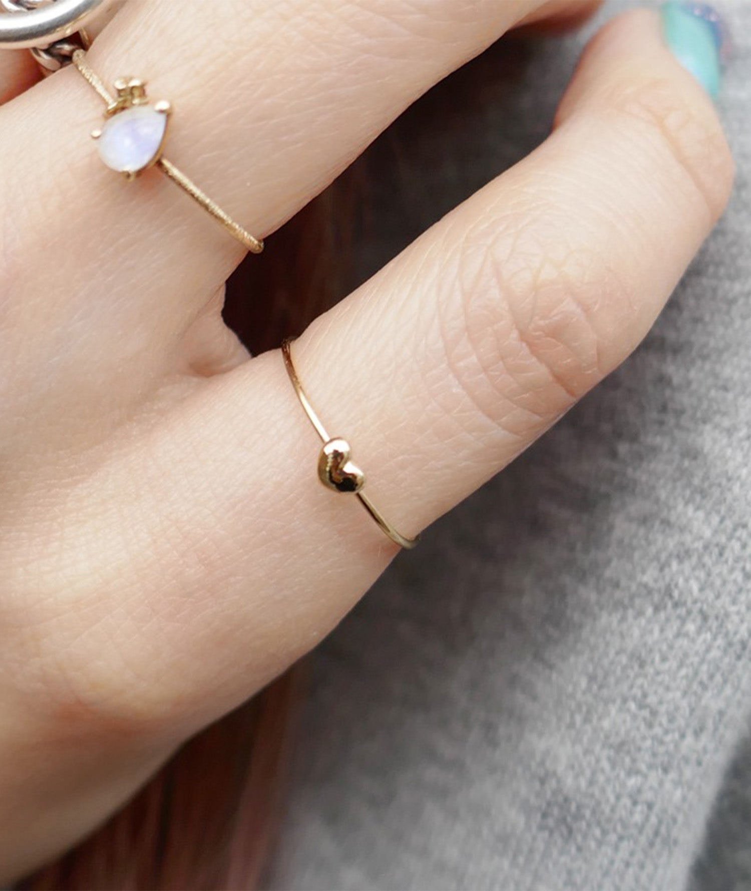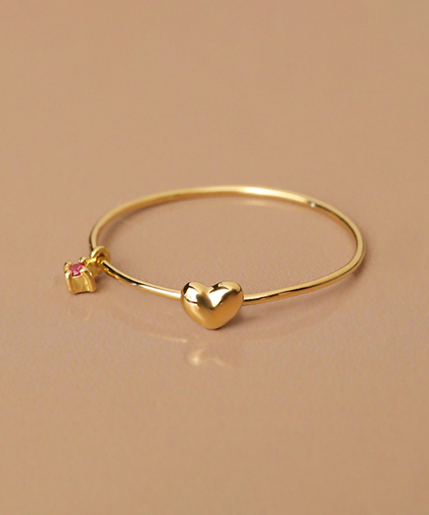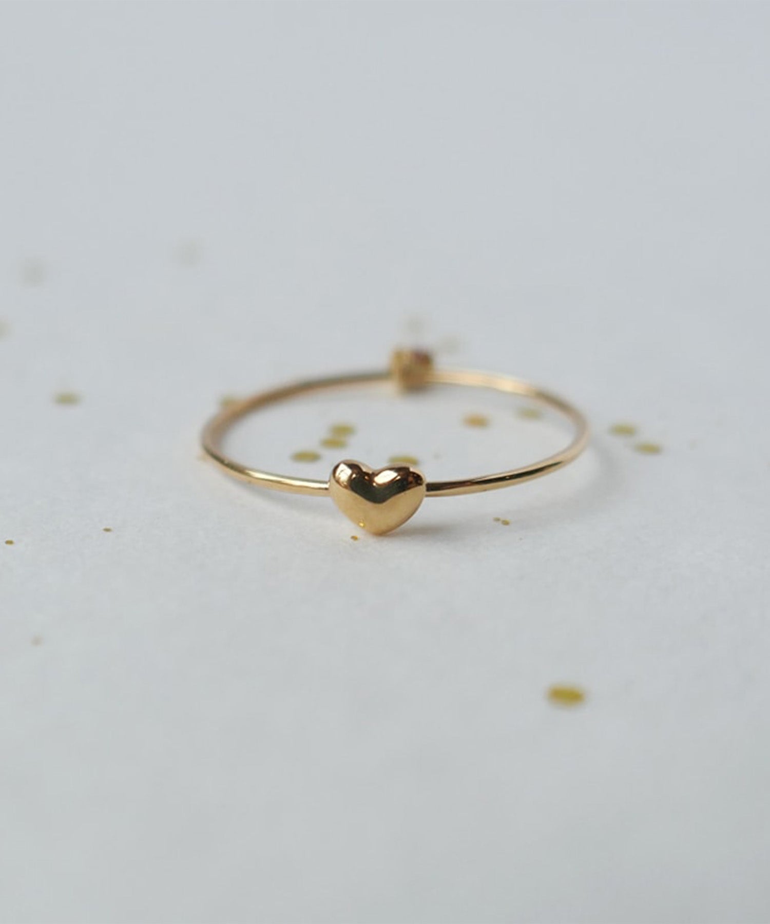 ぷっくりとしたハートがかわいらしいピンキーリング。小指にひっそりと佇んでワンポイントにおすすめのデザイン。