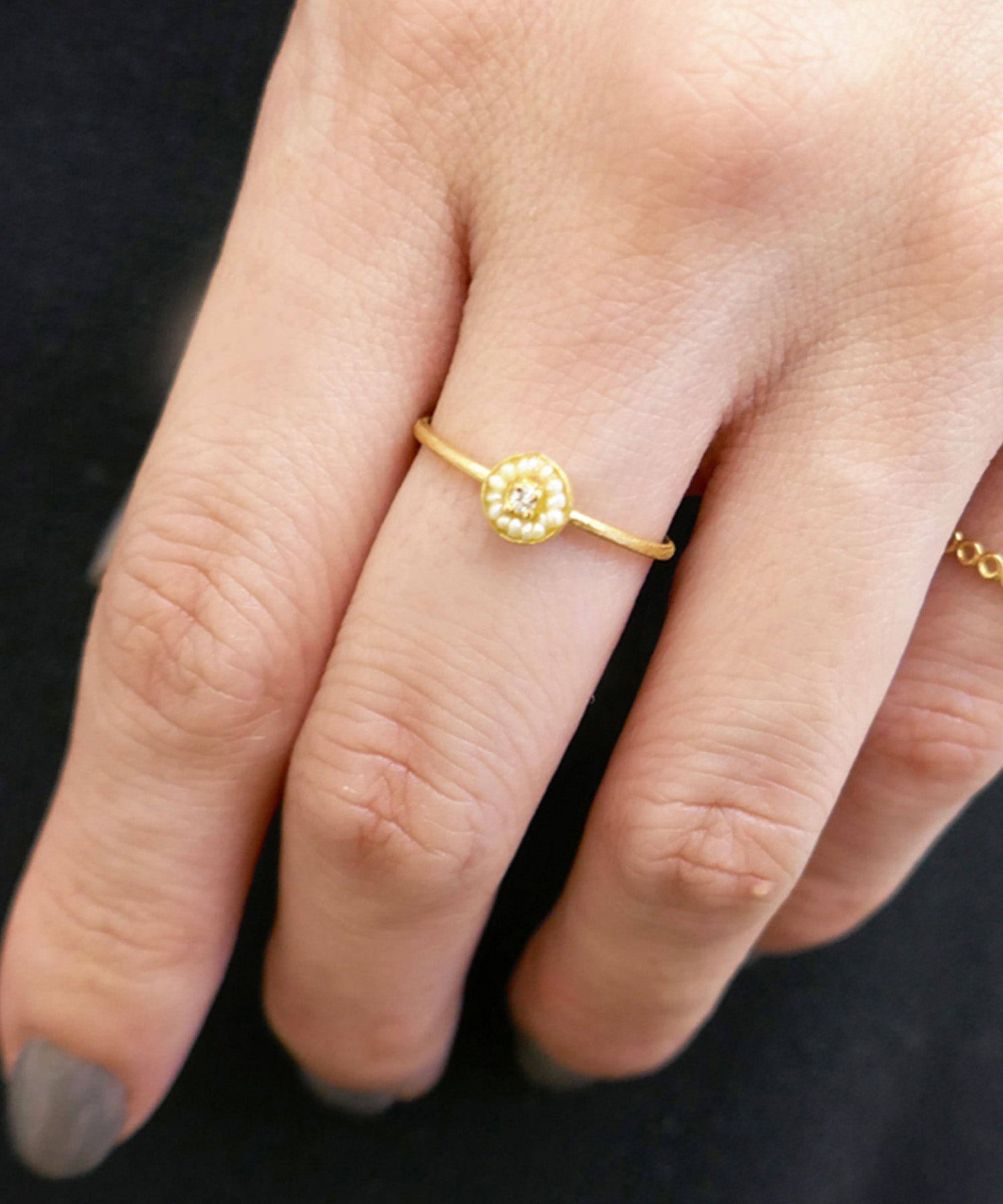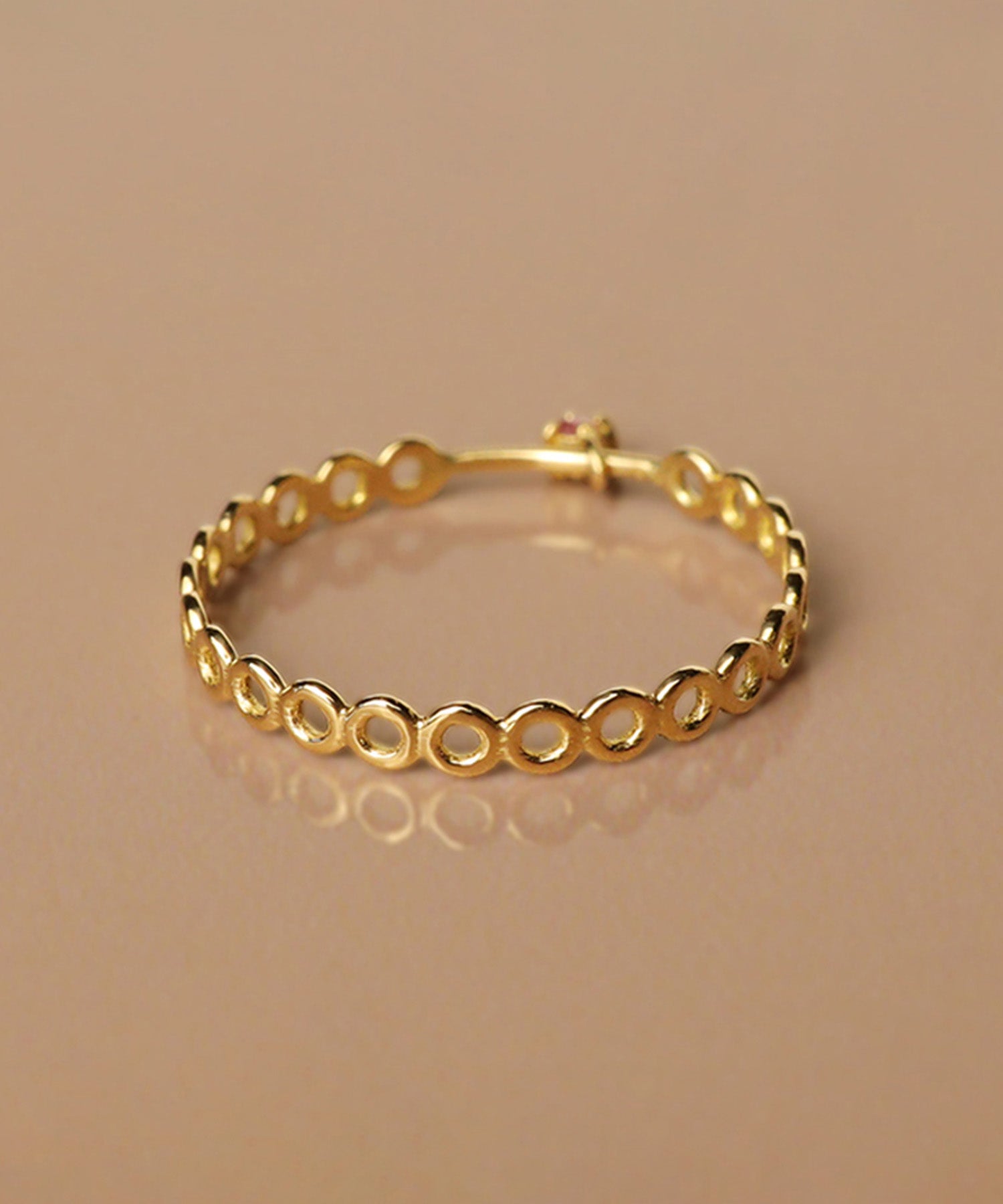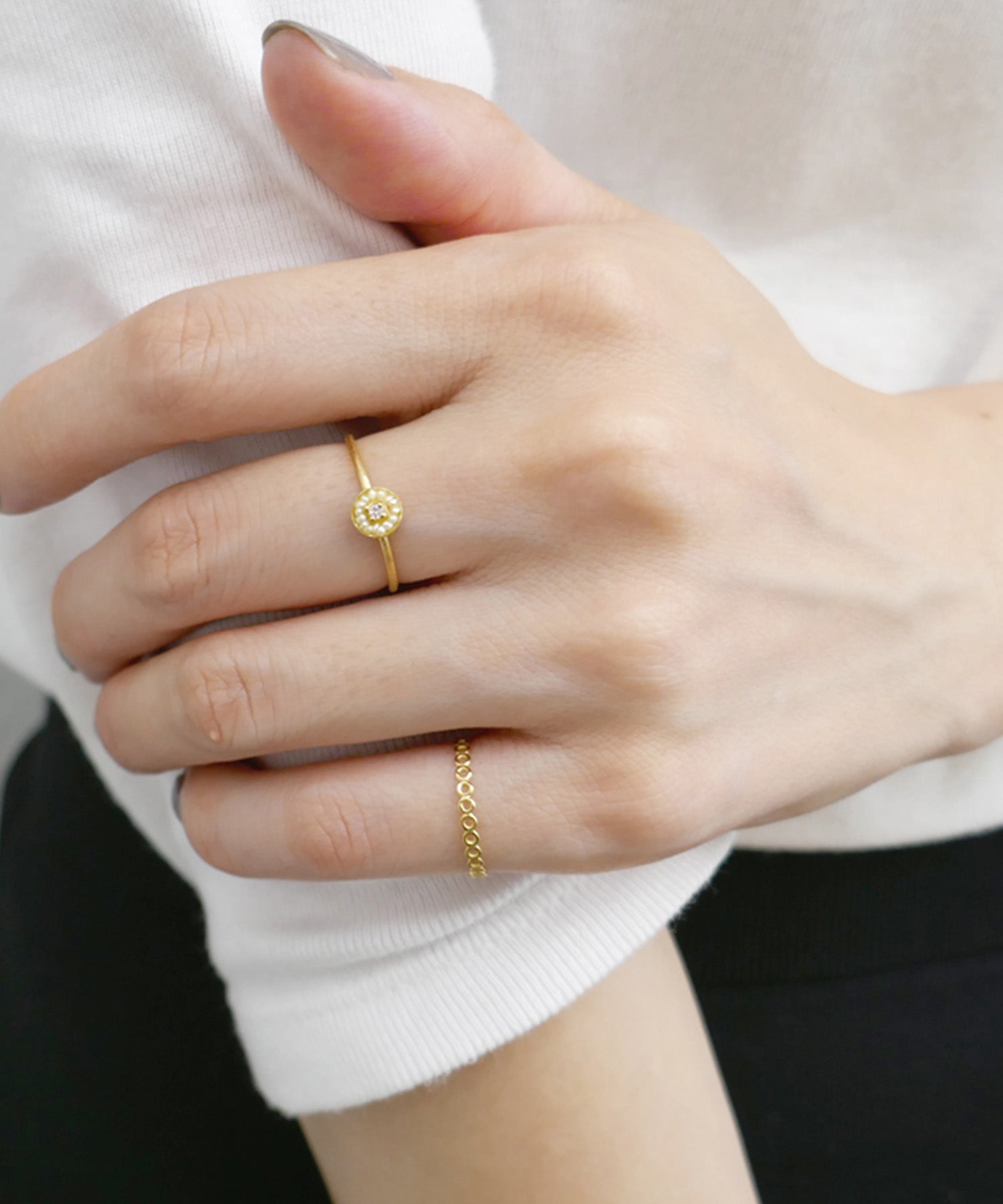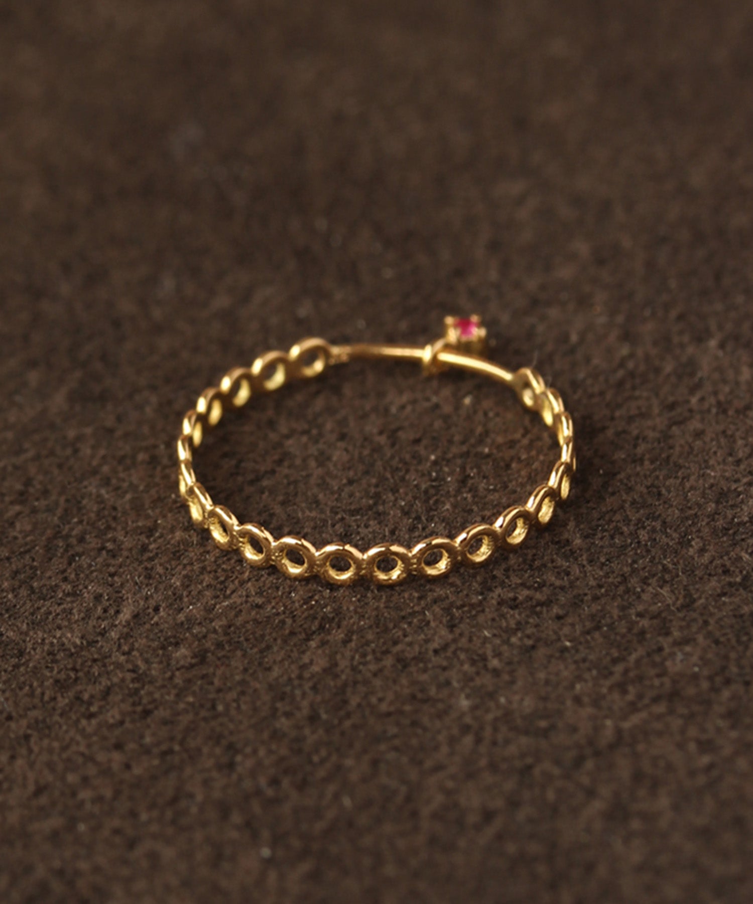 小さな円が連なったゴールドのピンキーリング。繊細なつくりでシンプルに仕上げました。