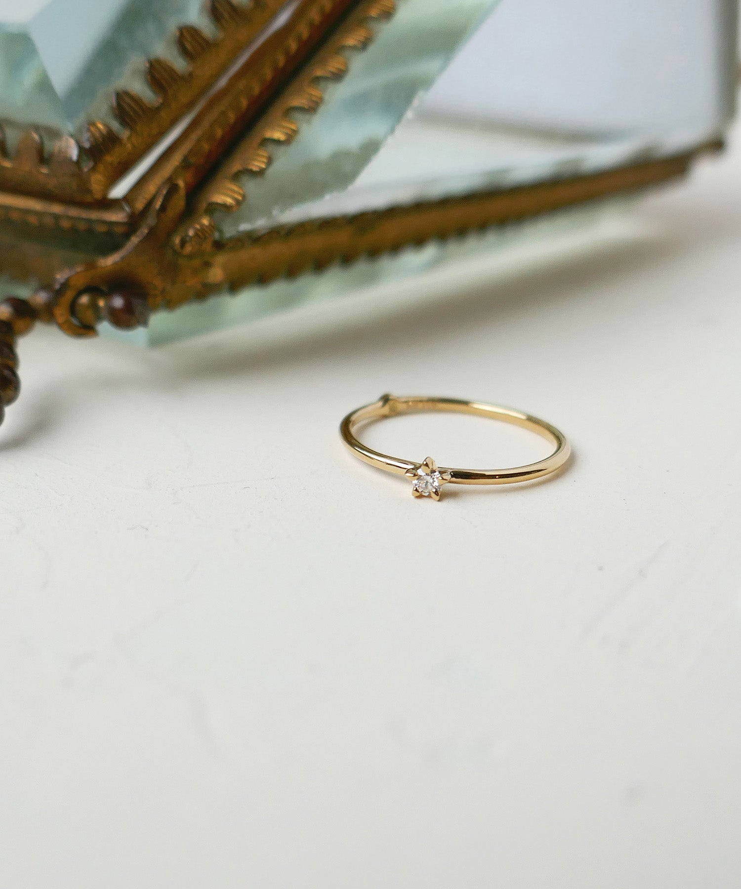 流れ星に願うように小指のリングに祈りをこめて。星型に留まったダイヤモンドは愛らしく、かわいい。