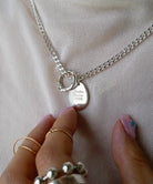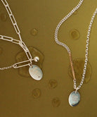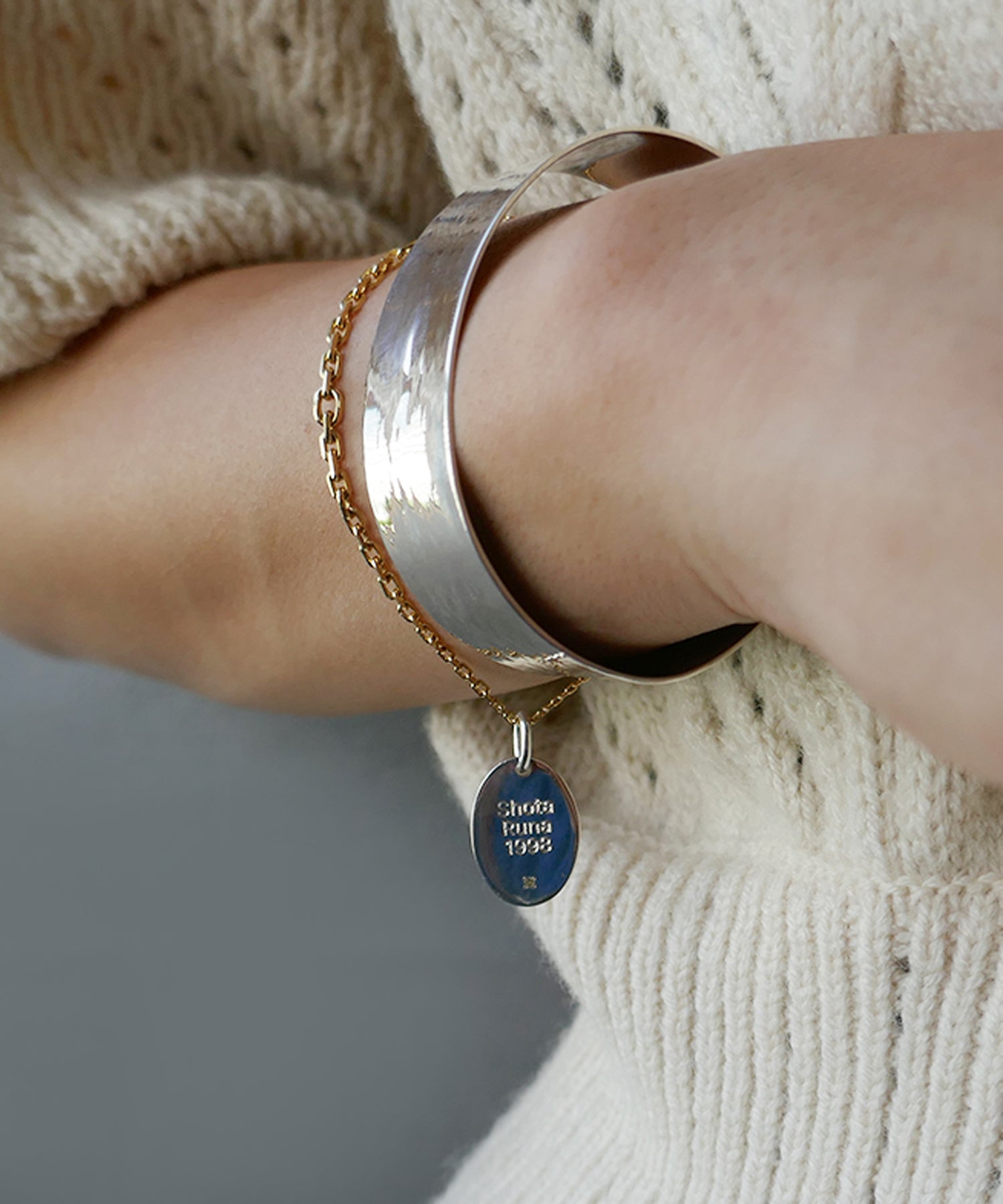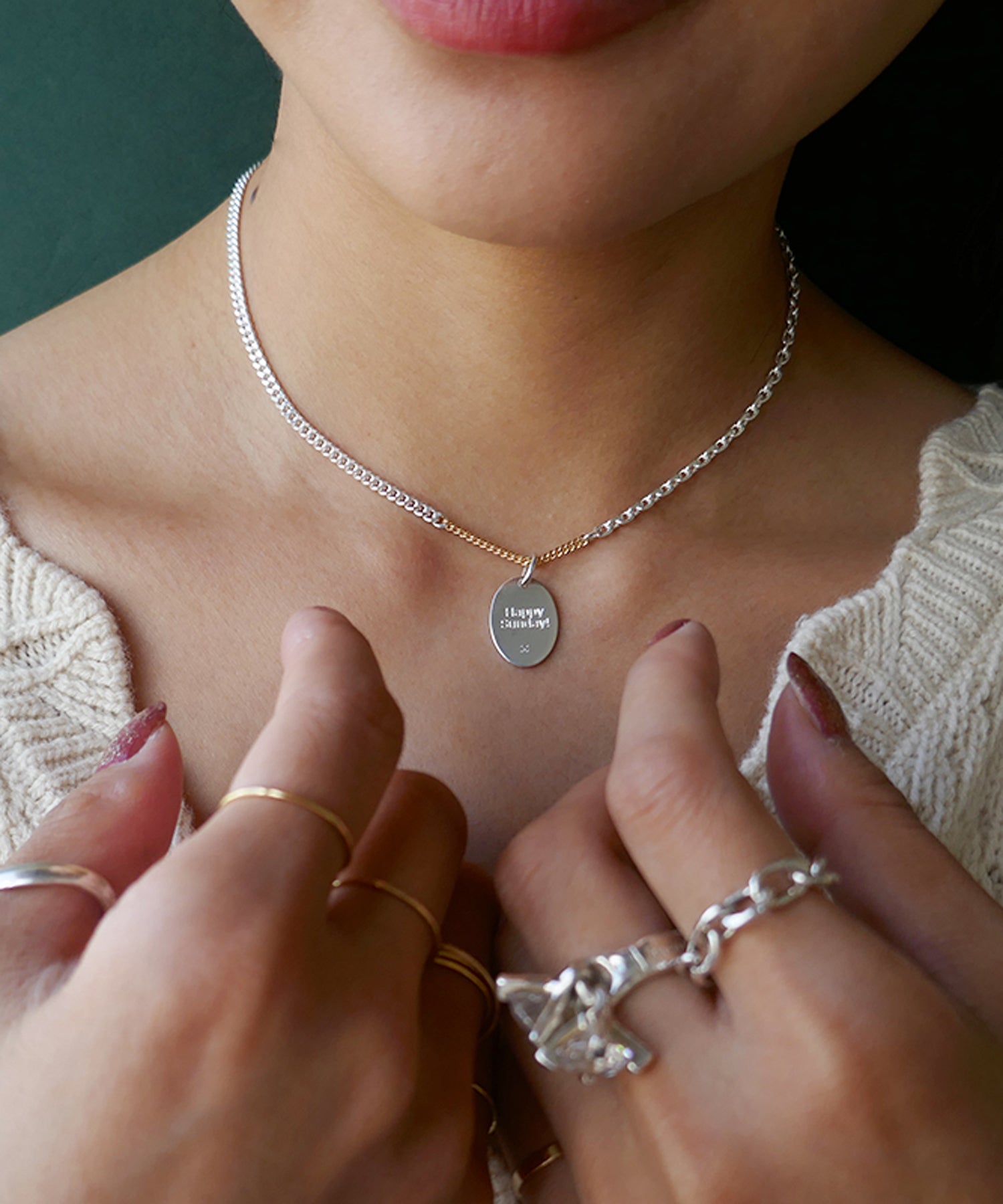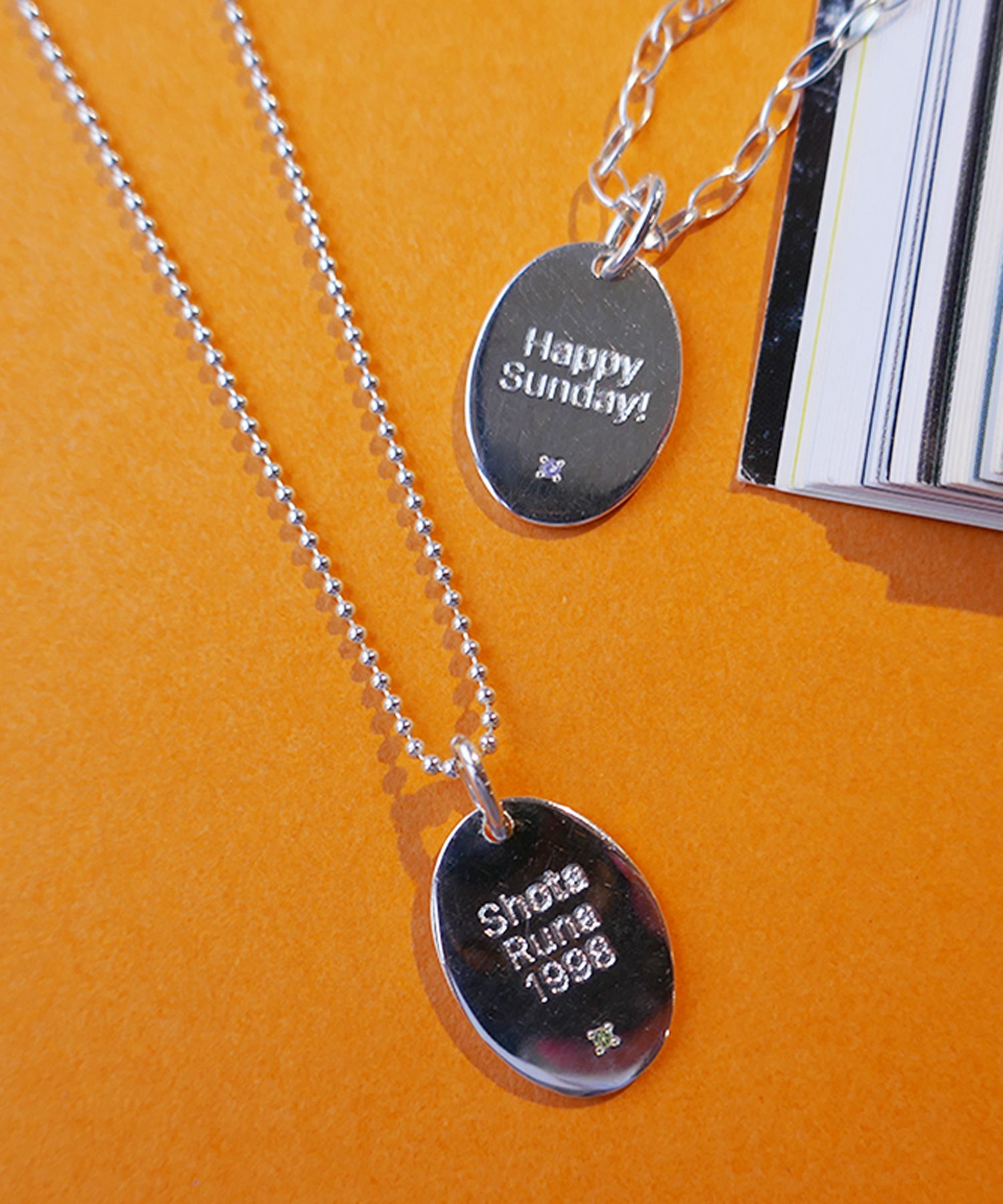 好きな言葉や、記念日、名前を刻んだ特別なペンダントチャーム。誕生石を一石、プレートに閉じ込めてデザインを楽しむこともできます。ネックレスやブレスレットに通して自分だけのジュエリーに。e.m.のベビーリングをチャームにして合わせるのもおすすめです。