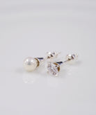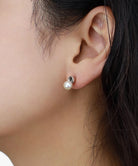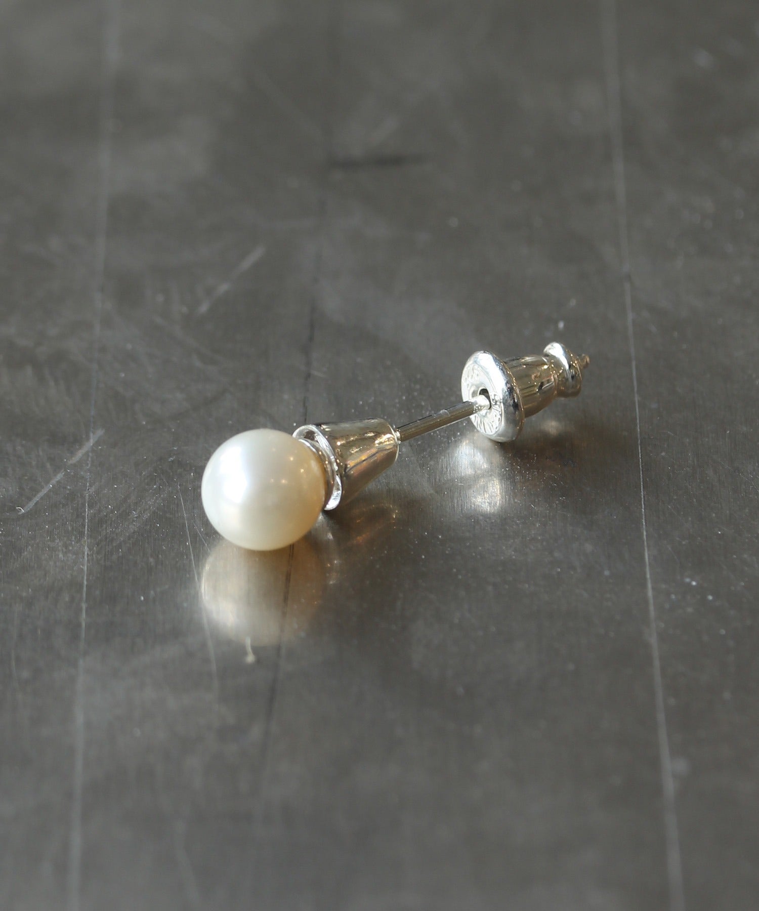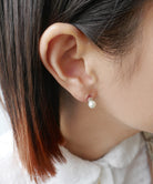 パールを主役にしたピアスは、着用けすると耳から立体的に飛び出し、ストーンが揺れます。