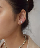 ジルコニアを4本の爪で留めたデザインのピアス。シンプルなデザインなので、