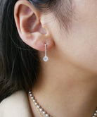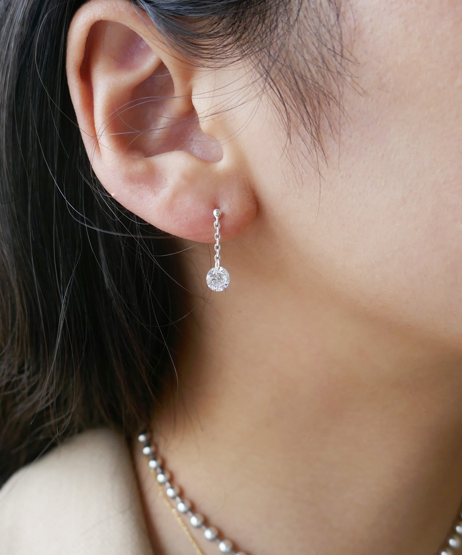 小さめのラウンド型ジルコニアがきらりと光り、揺れるピアス。