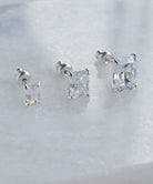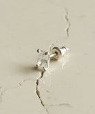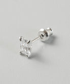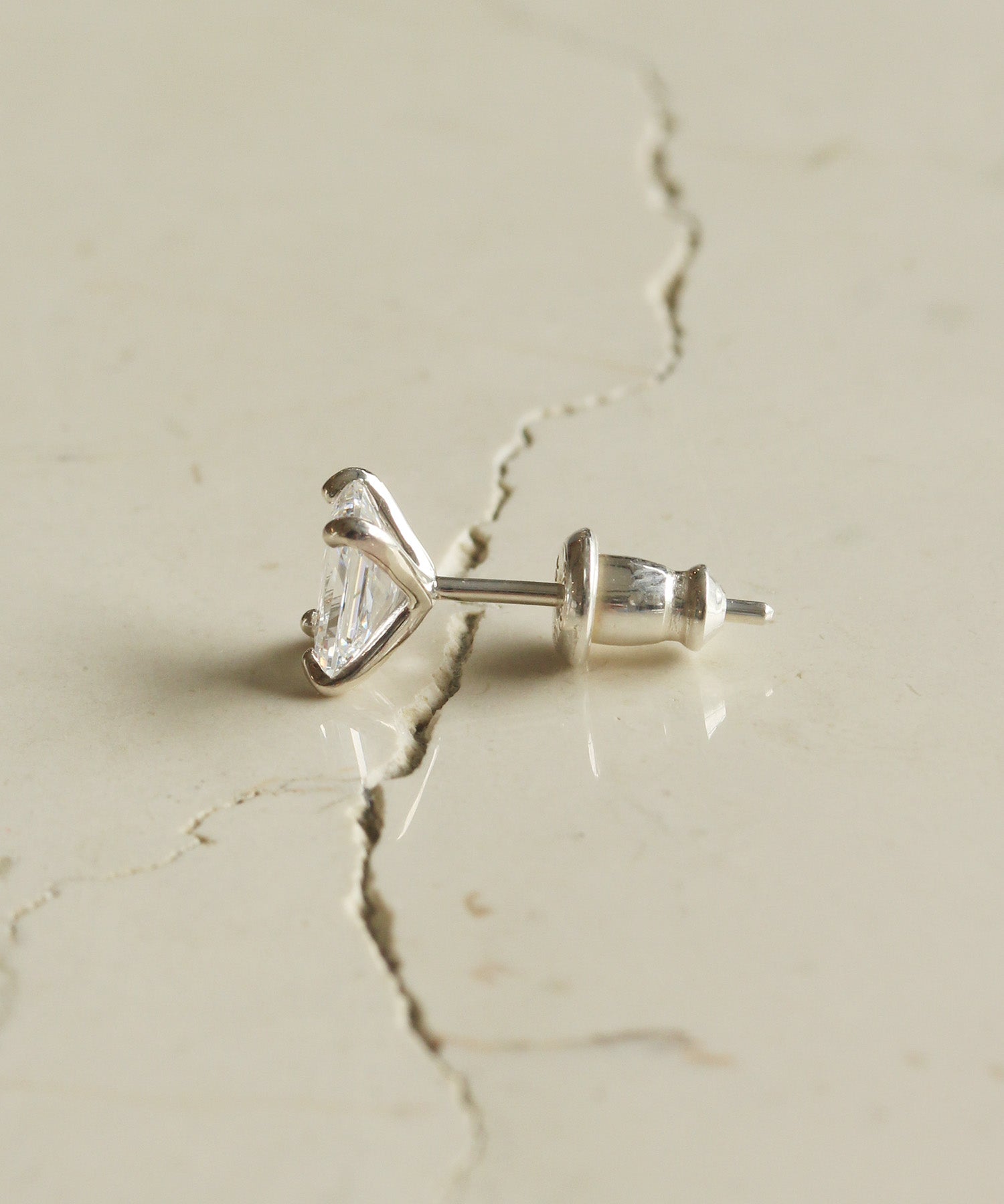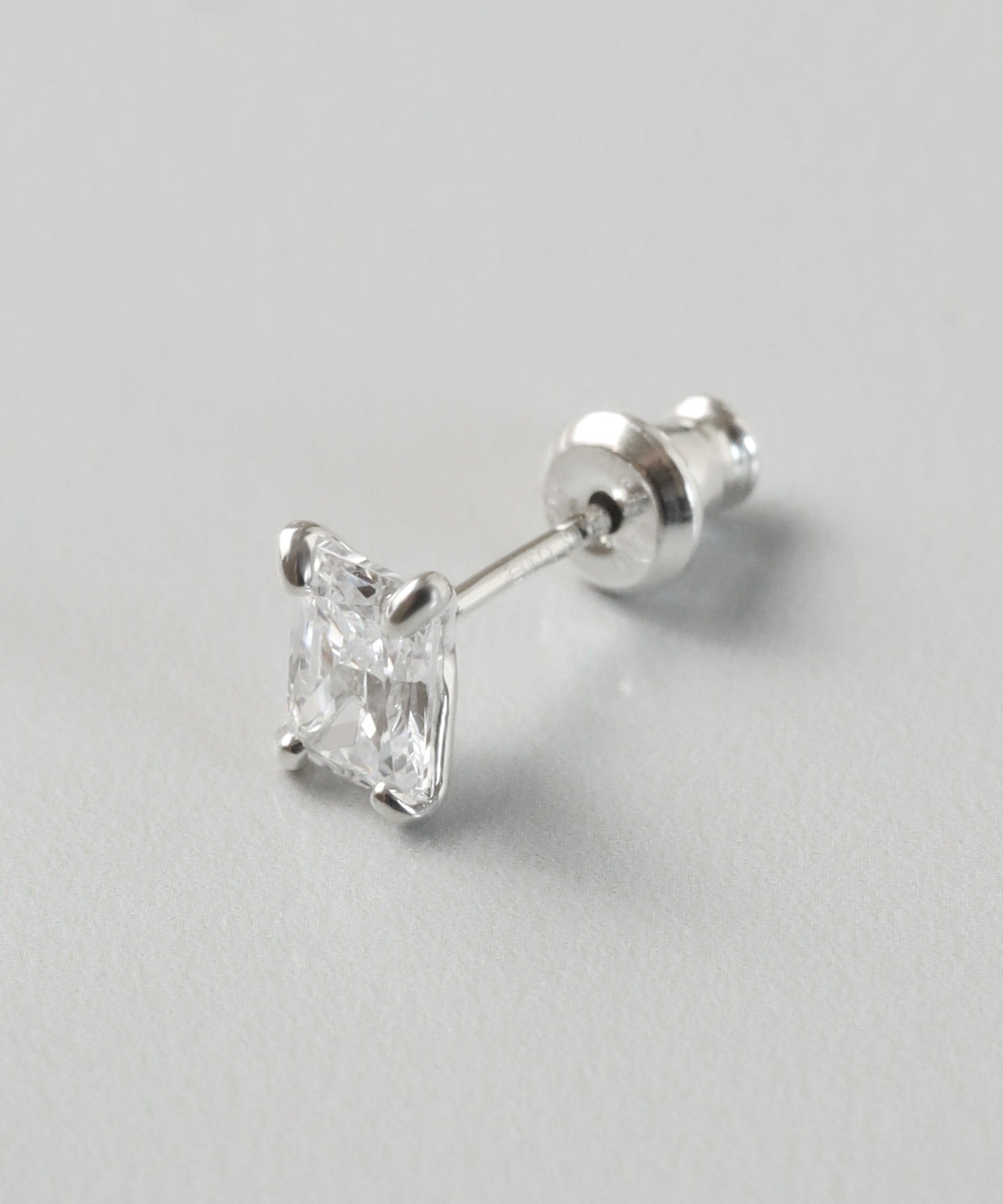 オクタゴン型のキュービックジルコニアの少し抑えた輝きとシャープなシルエットが