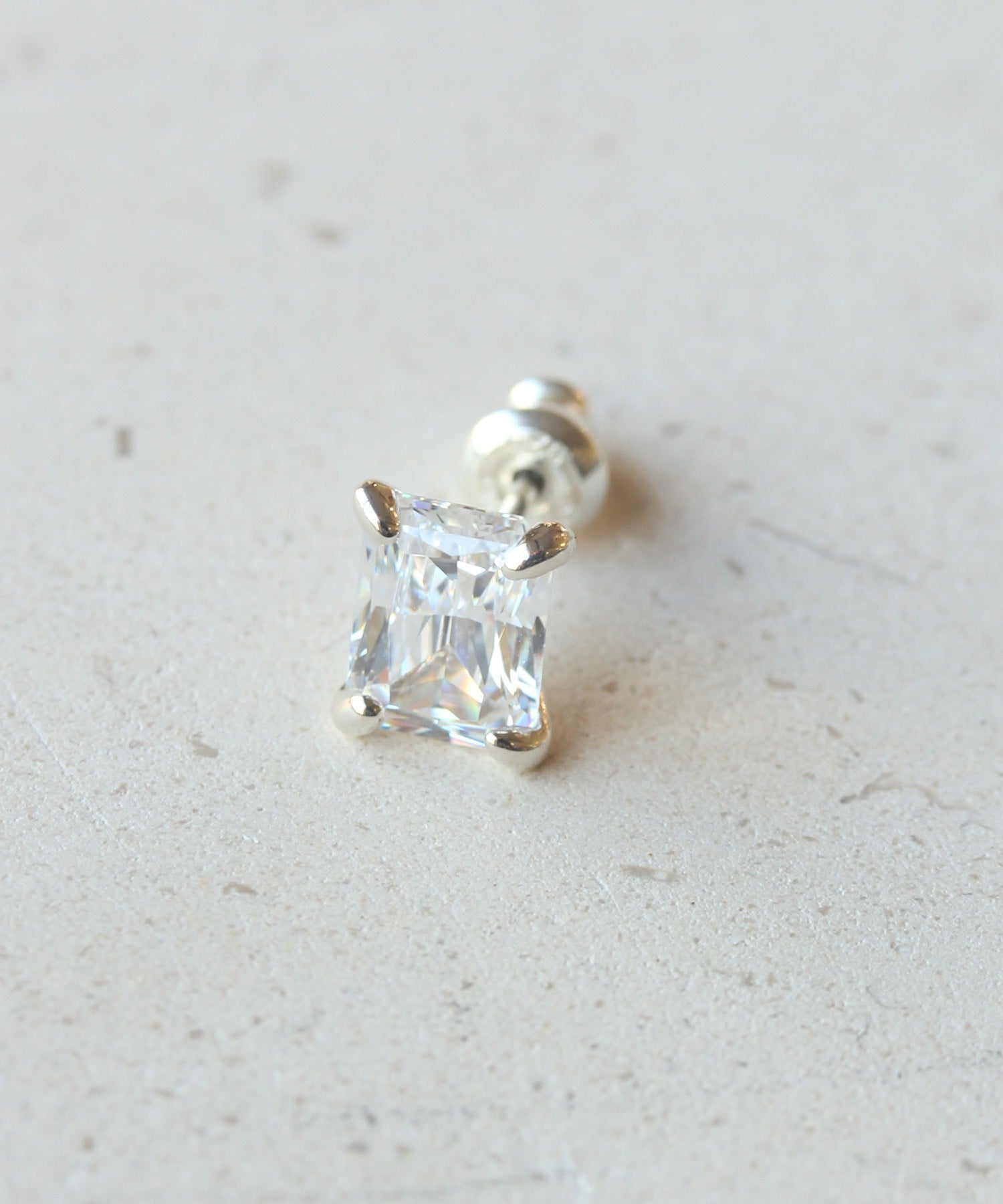 オクタゴン型のキュービックジルコニアの少し抑えた輝きとシャープなシルエットが美しくクールで使いやすいピアス。