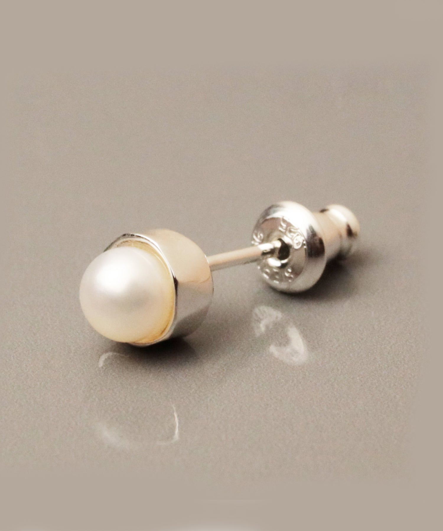 地金でパールを包み込んで石座にボリュームを持たせることで