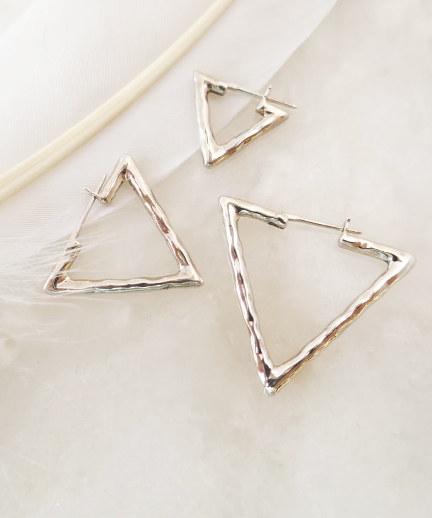 程よいテクスチャーがカジュアルな印象で使いやすいトライアングルフープピアス。