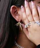 ゴールドカラーのスパイクスタッズモチーフを連ねたピアス。