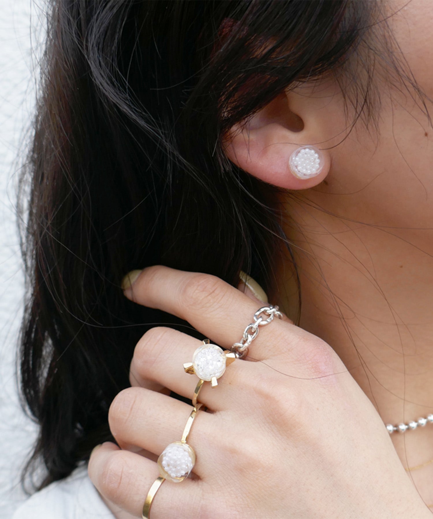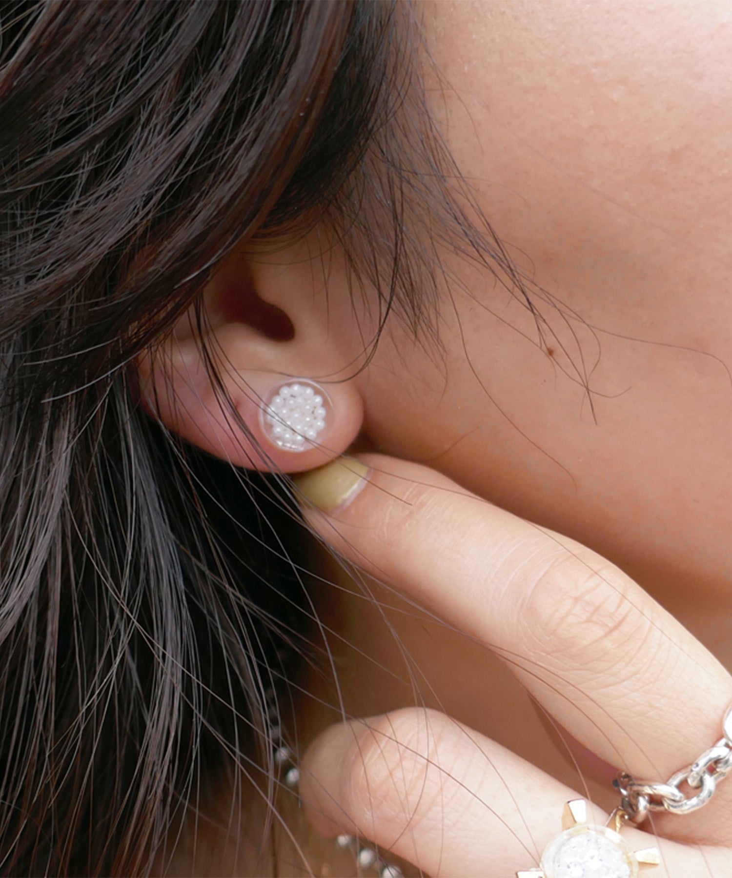 大きなパールやジルコニアとは違う魅力のあるクリアなスタッドピアス。