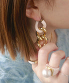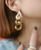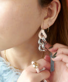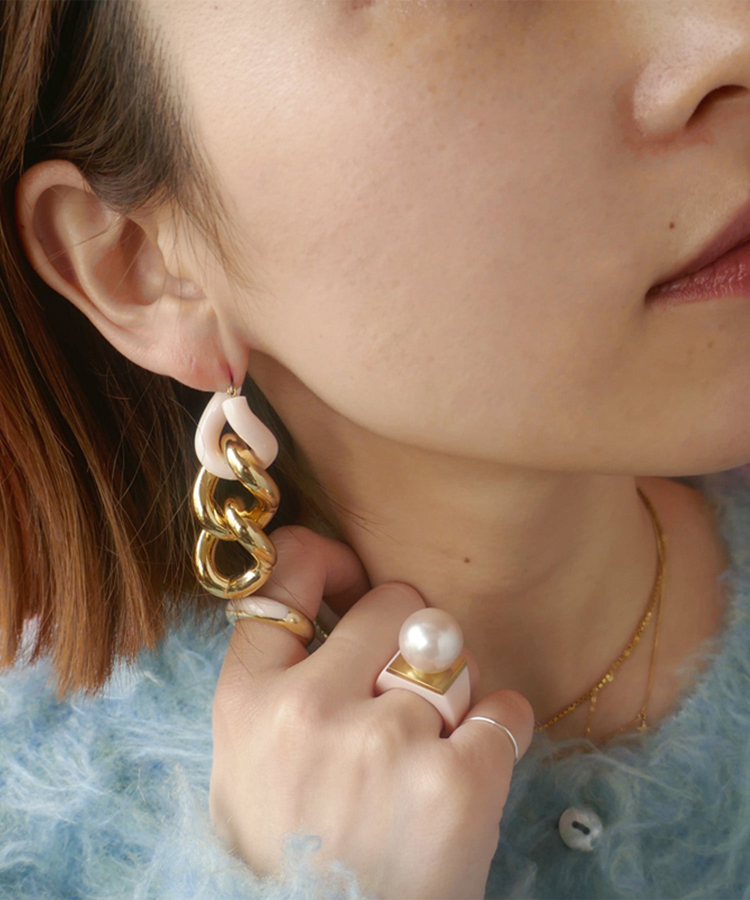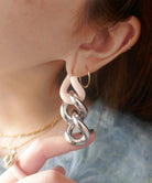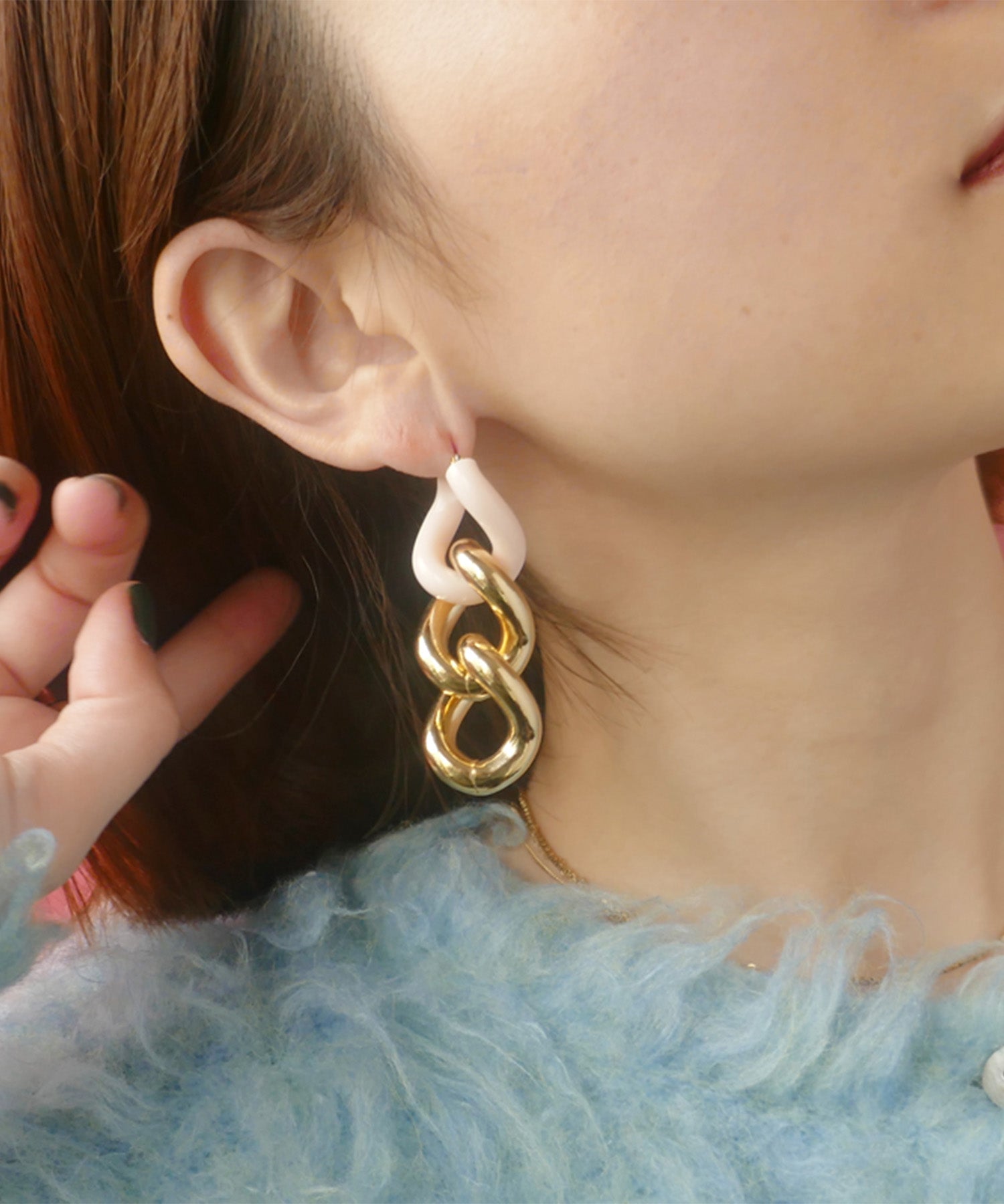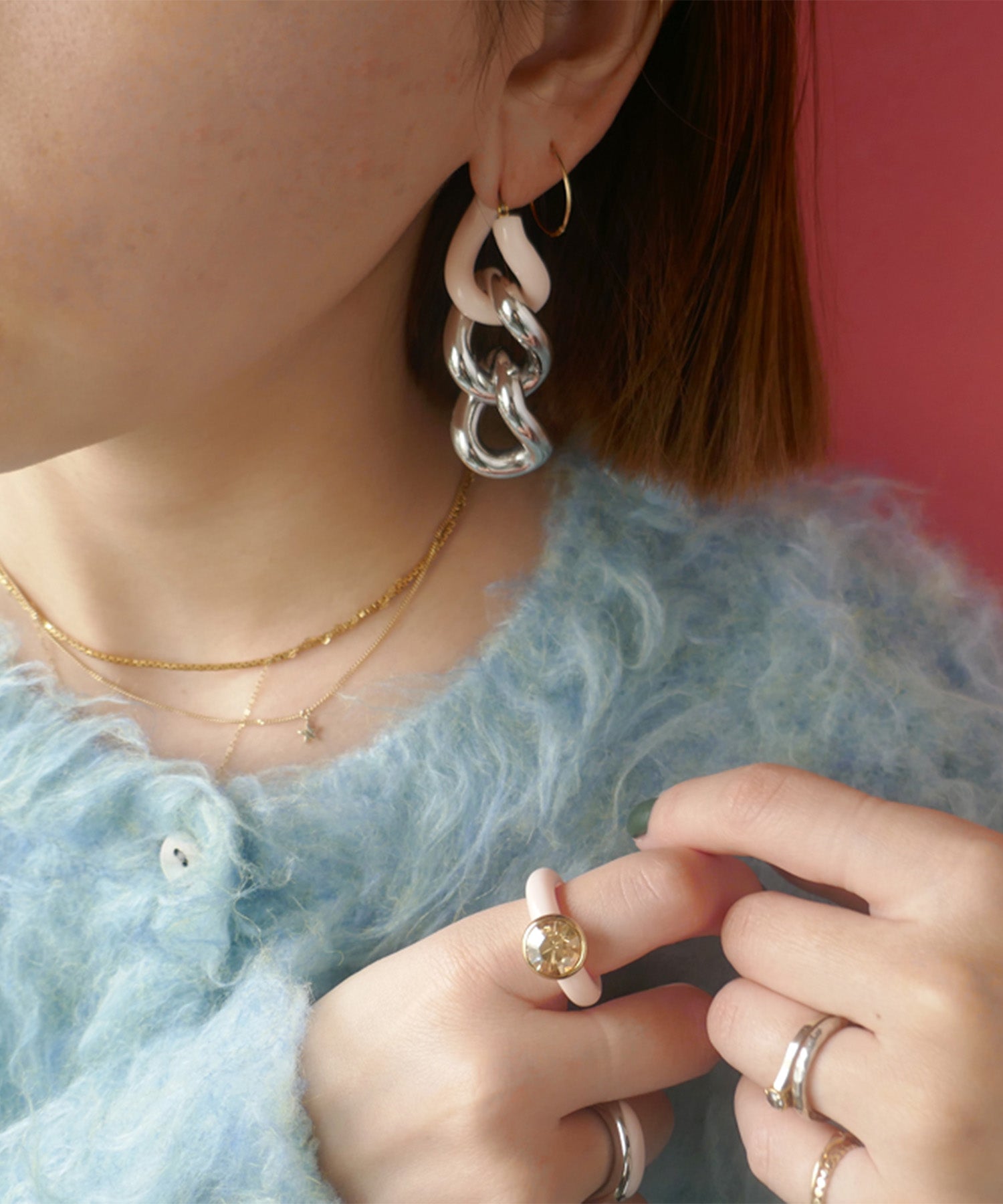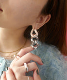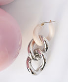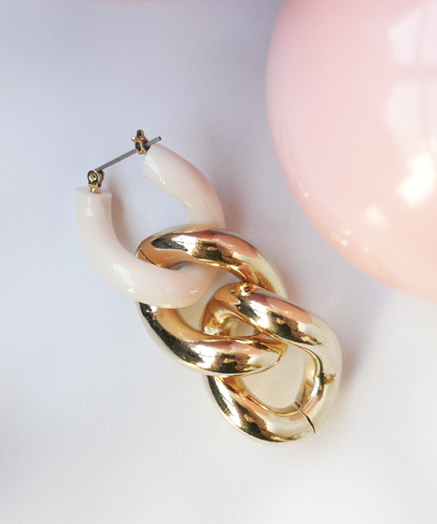 エッジィなビッグチェーンピアス。メタルにピンクカラーを入れることで