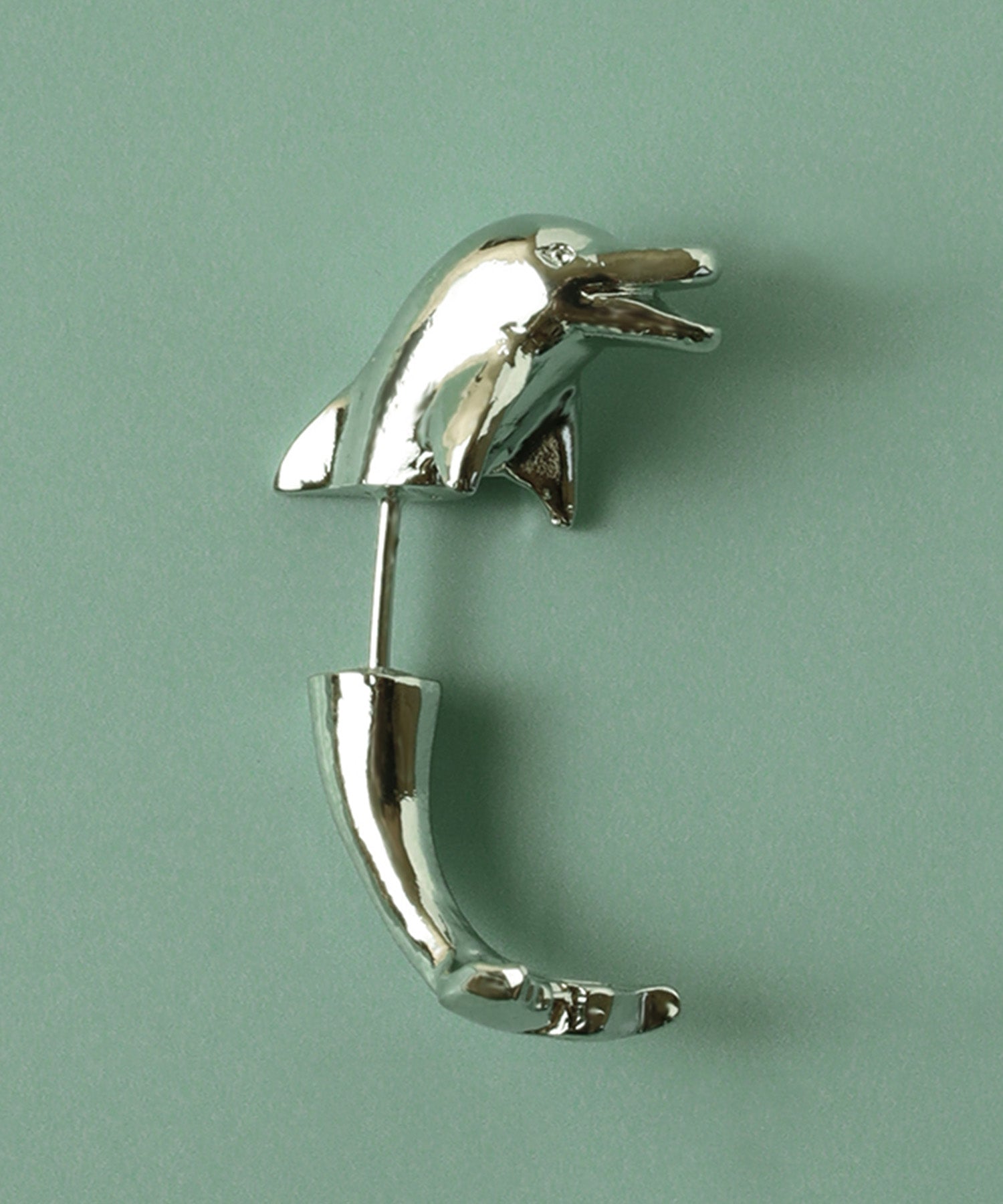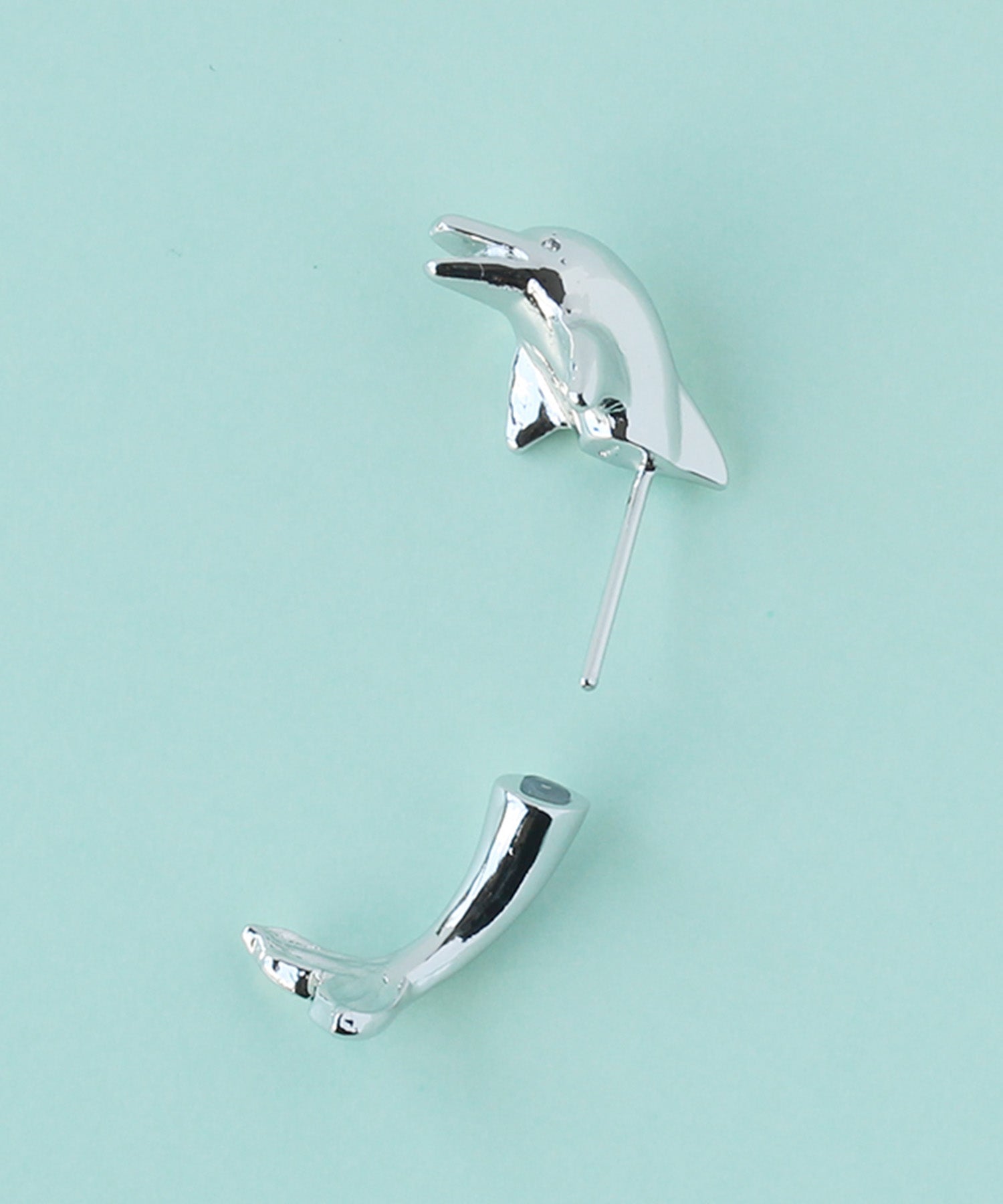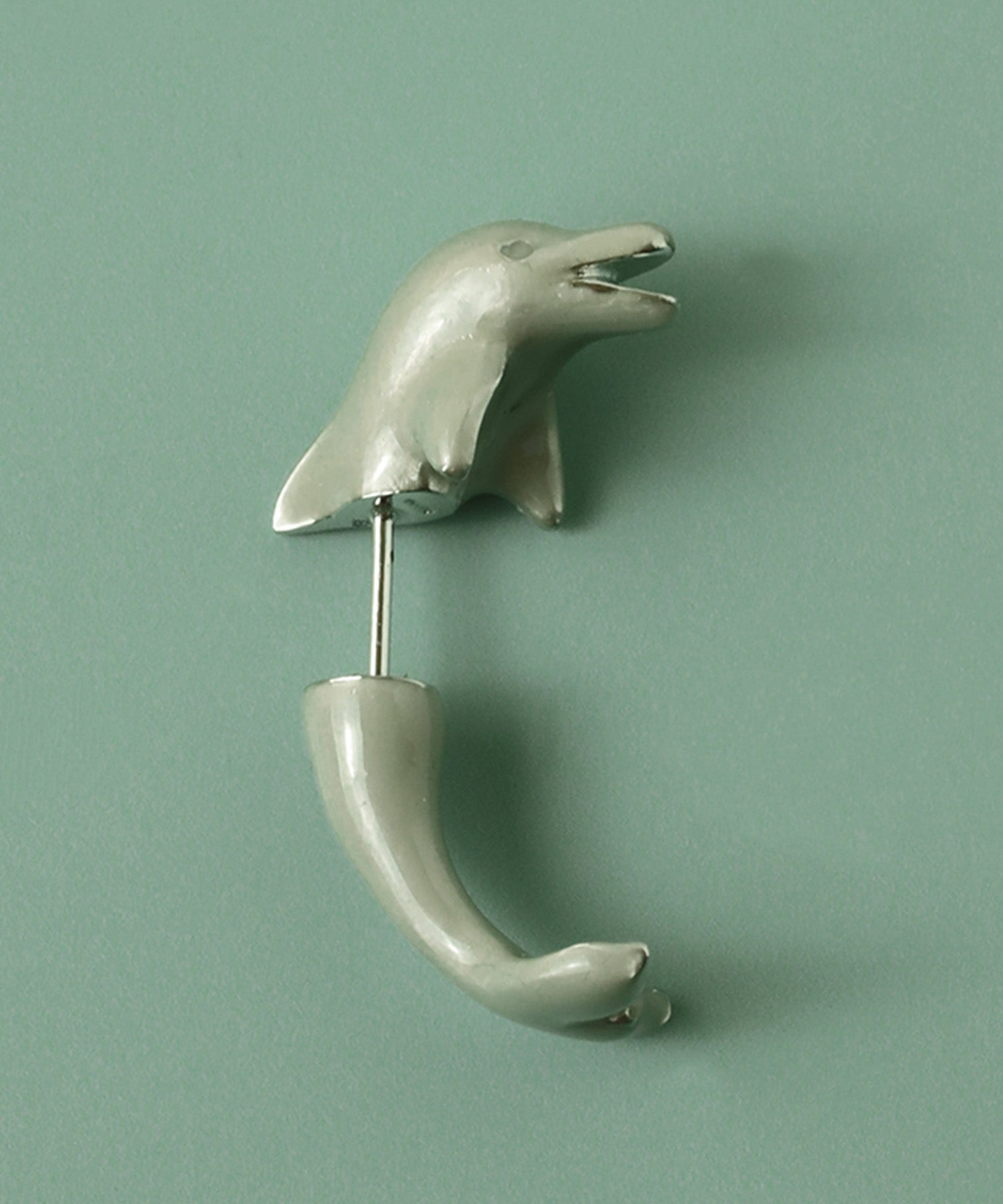 イルカをモチーフにしたピアス。遊び心のあるユニークなデザインです。