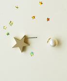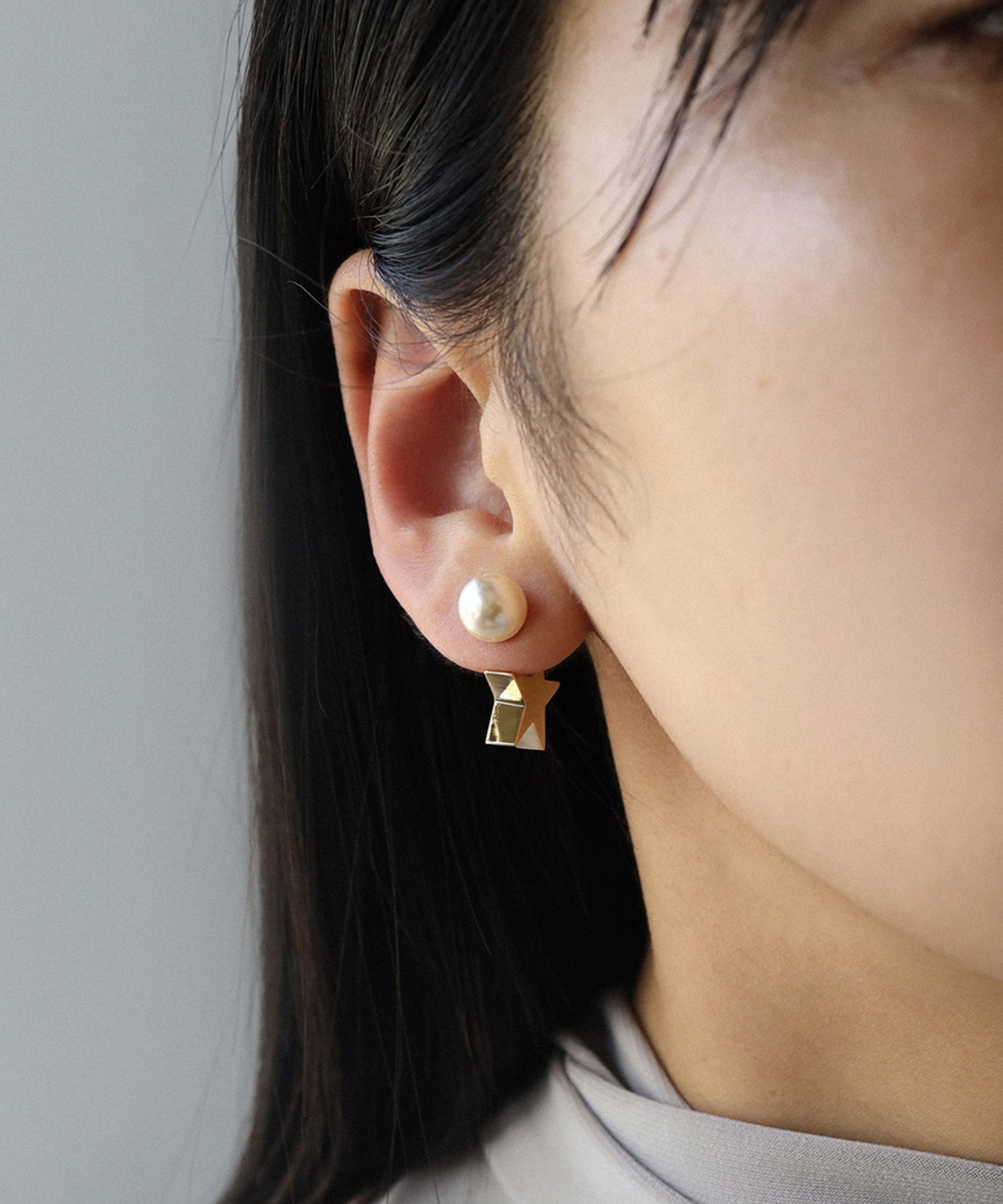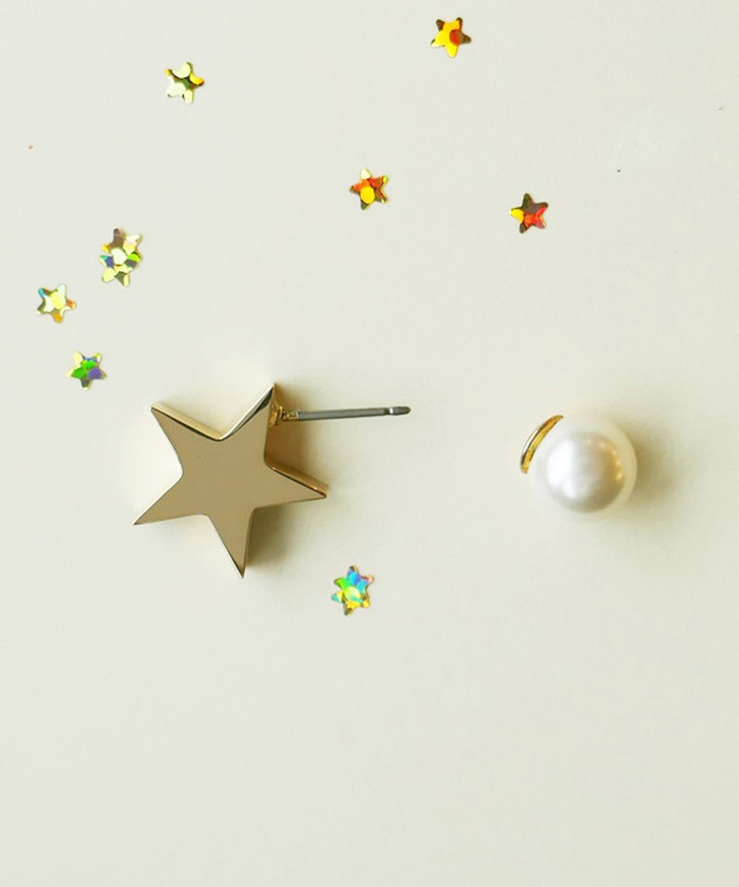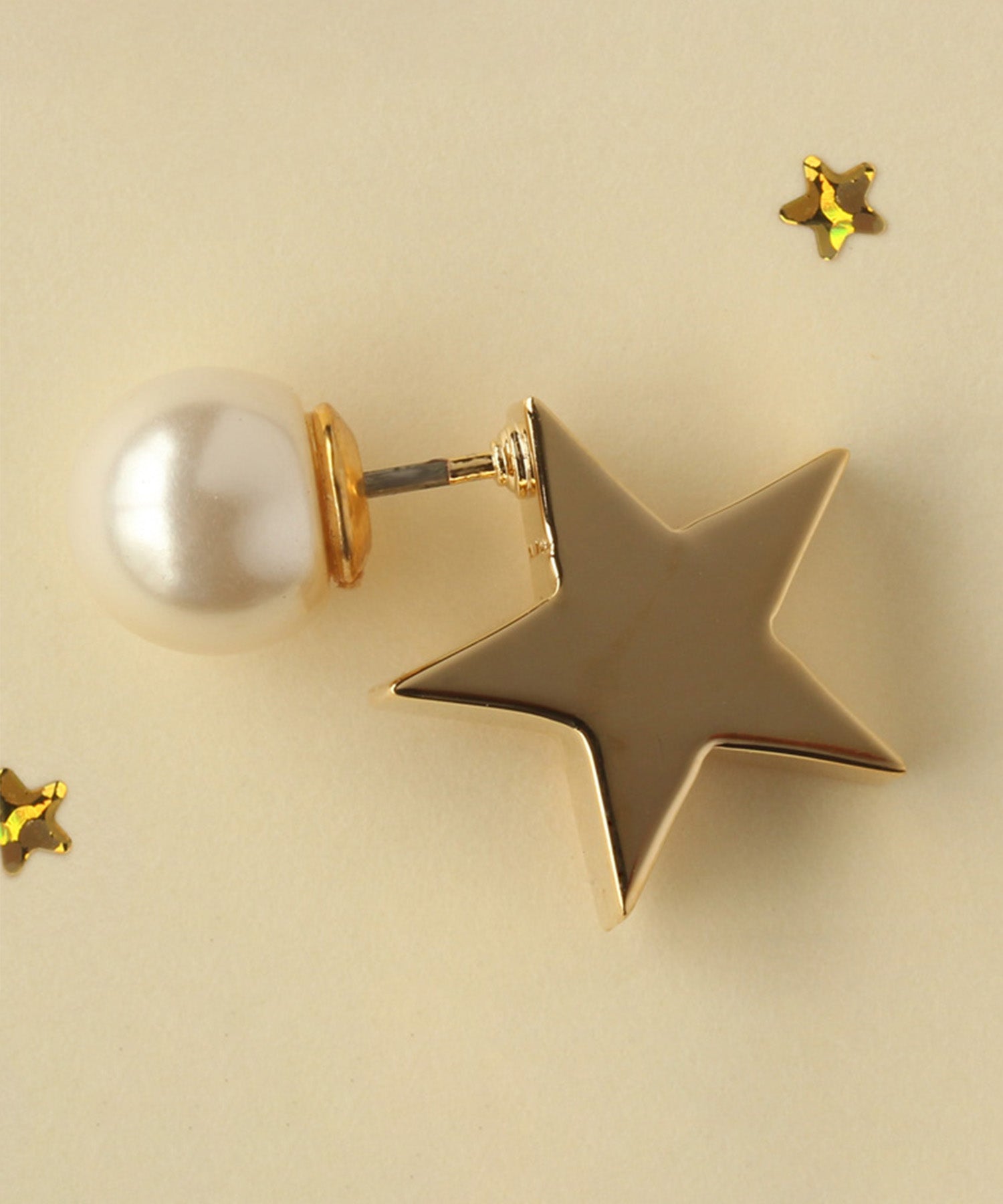 シンプルな形のスターピアス。キャッチがパールになっているので
