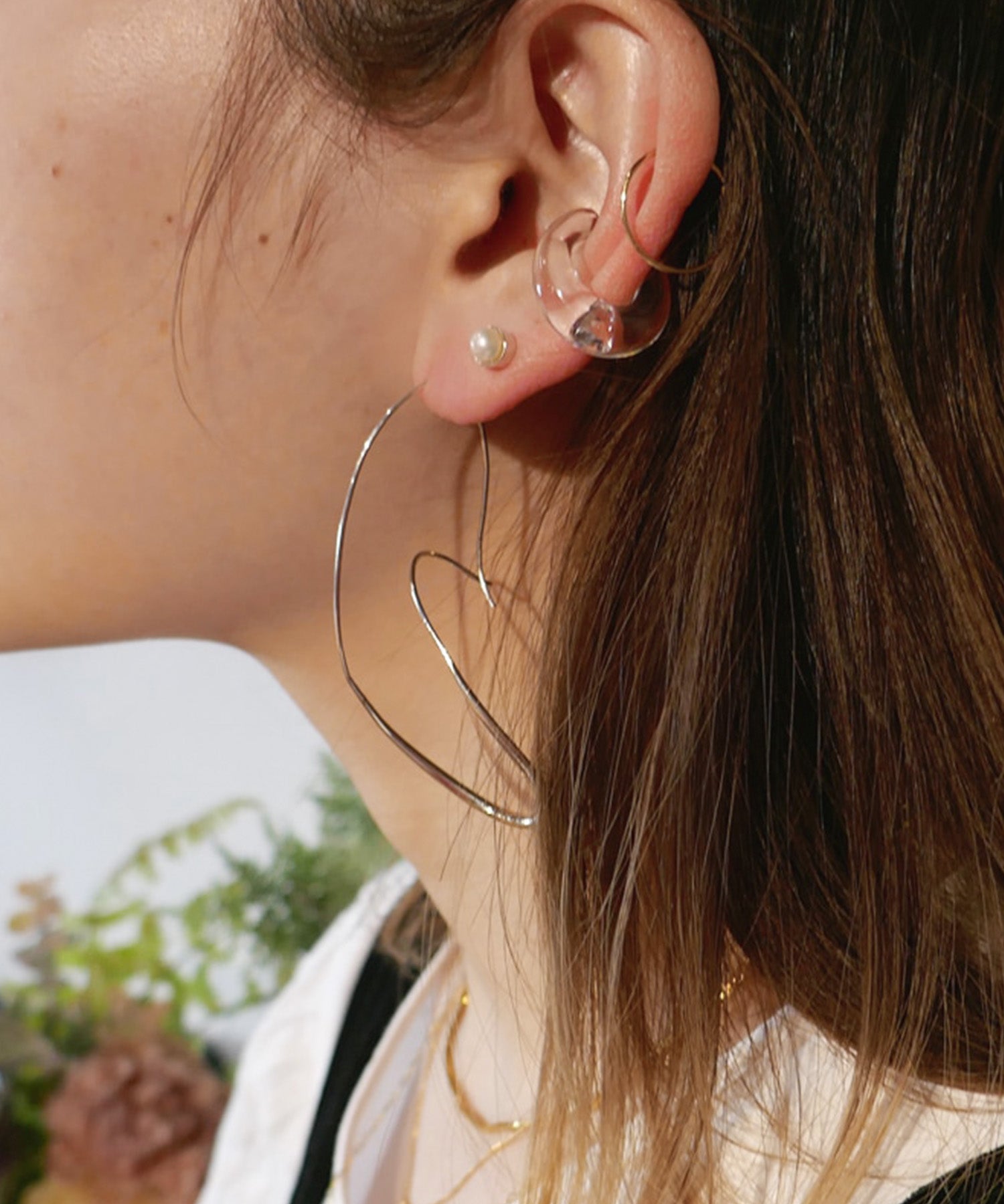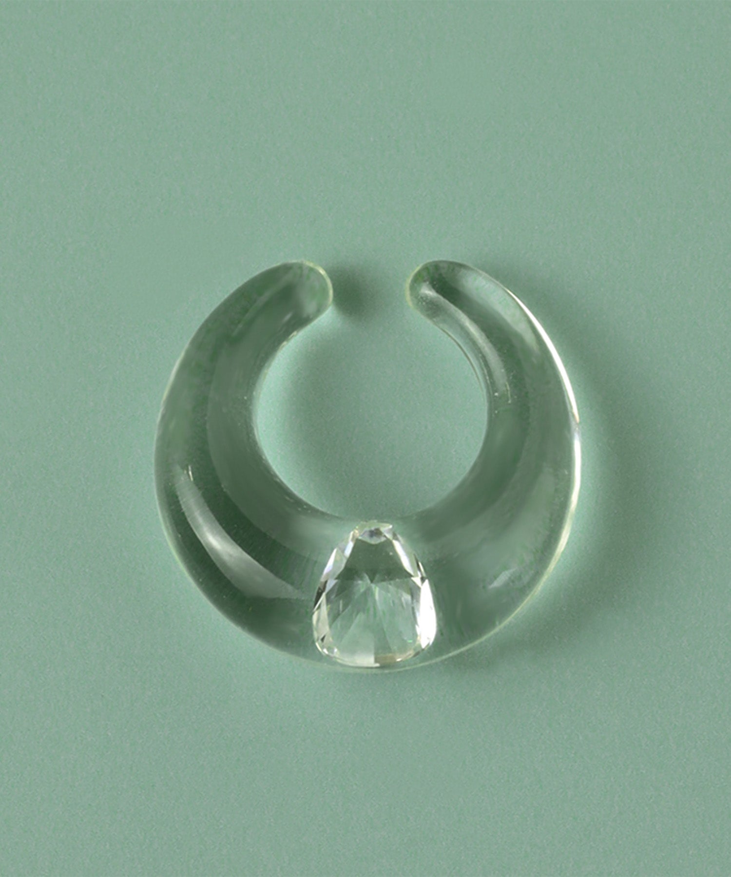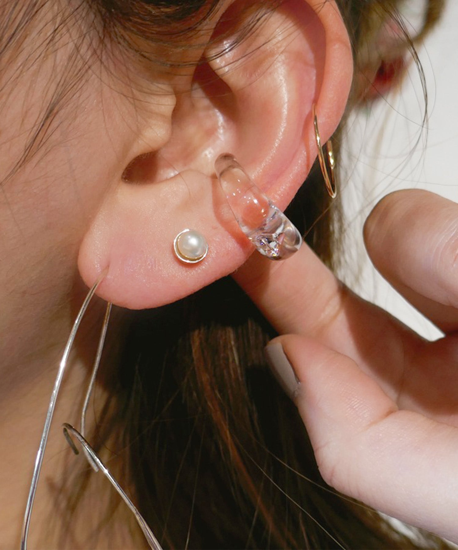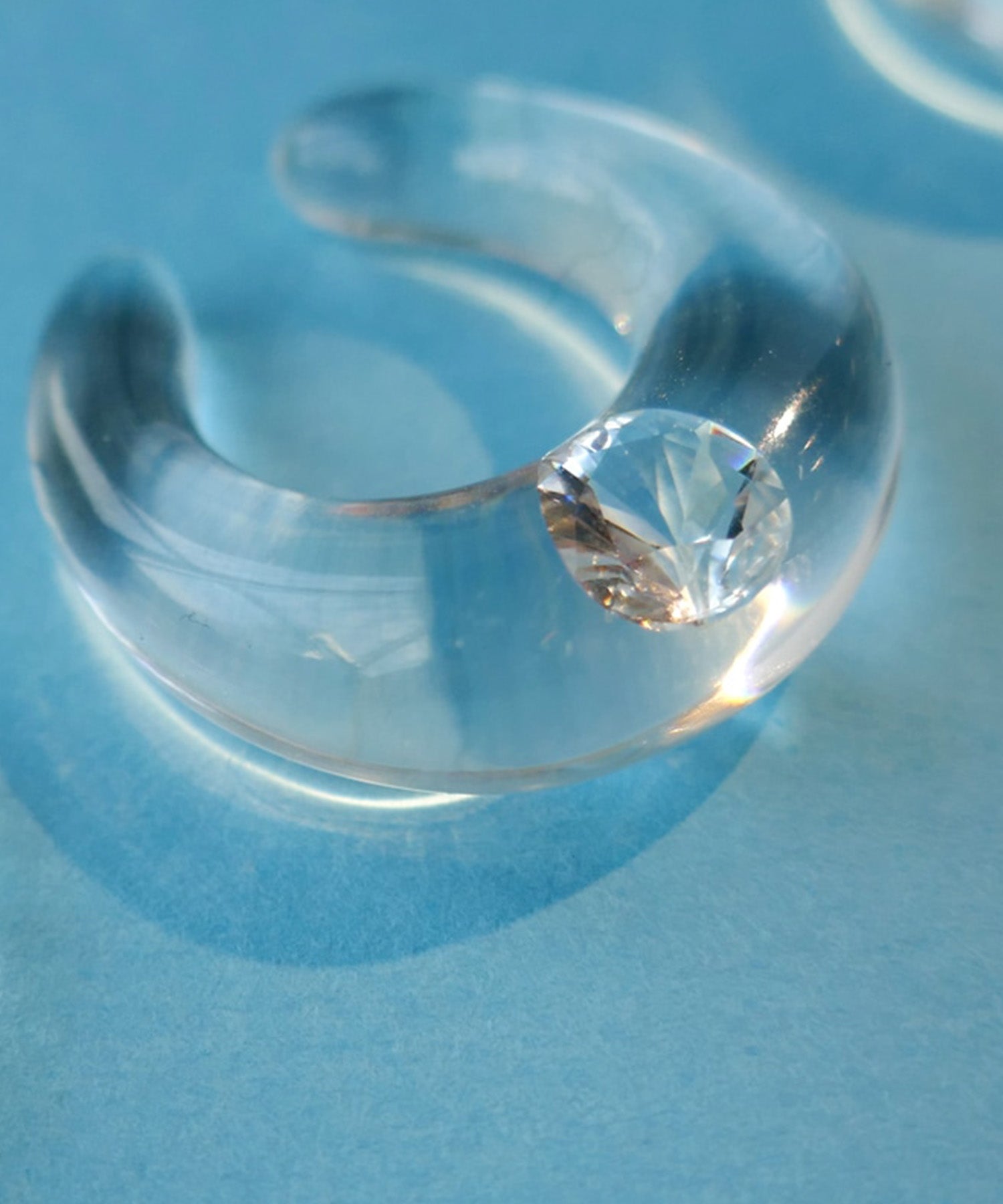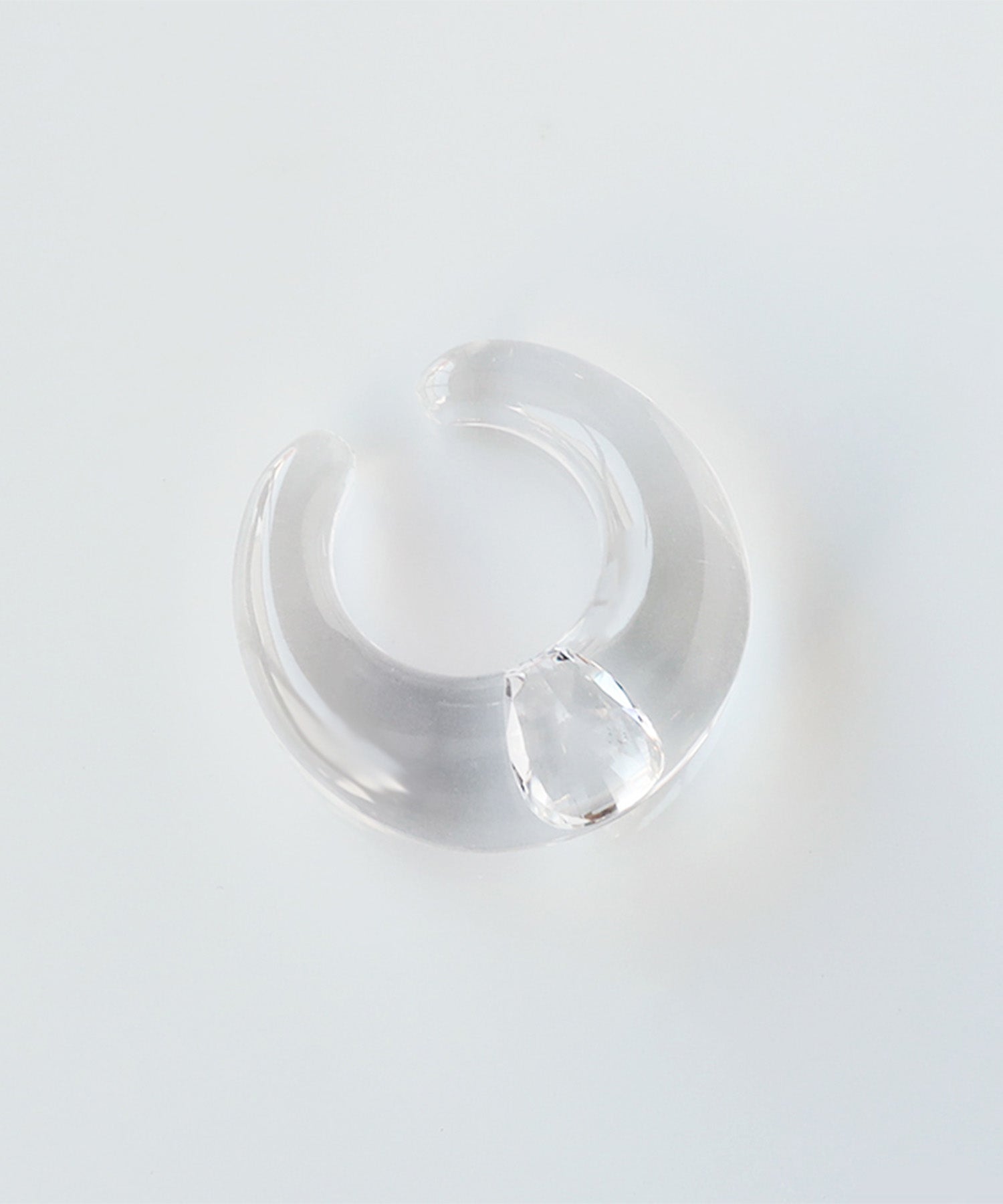 自分だけのお気に入りを水の中に並べて魔法をかけて閉じ込めたときめきの詰まったジュエリージルコニアが1粒キラッと浮かぶクリアのイヤーカフ。涼しげで軽くて優しくてかわいい。シルバーやゴールドとの相性も良く合わせやすいのが嬉しいです。