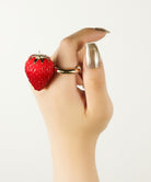 細部までこだわりを詰め込み本物そっくりな大きさや色合いに仕上げたいちごモチーフは、身に着けるだけで気分が高まるプレイフルなデザイン。
