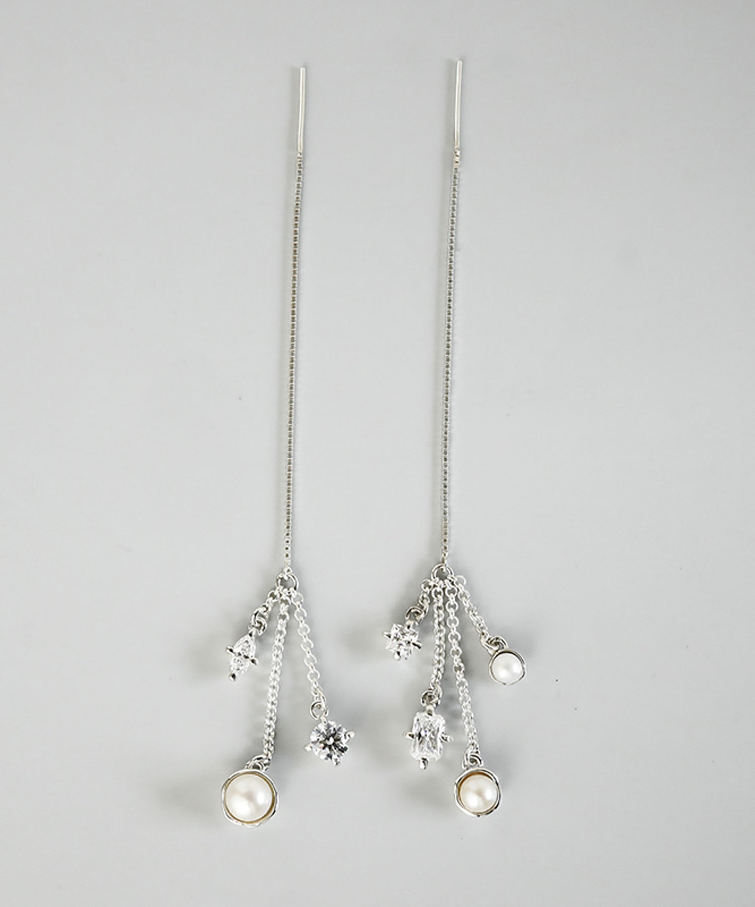 サイズ、カットの違うジルコニアと上品なパールがキラキラと輝く