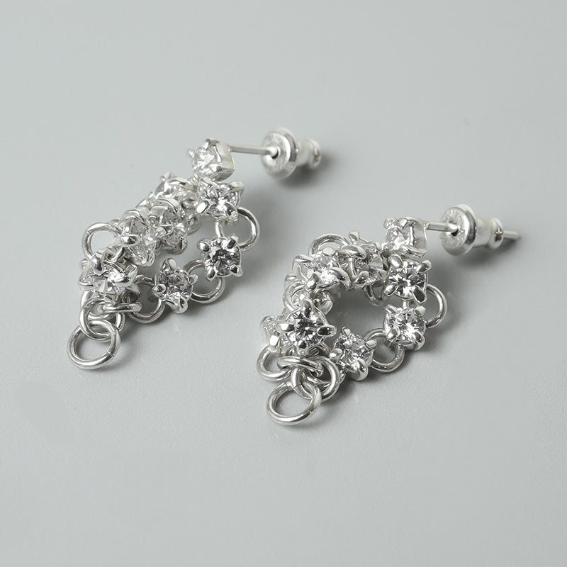 チェーンにキュービックジルコニアがいくつもセッティングされたデザインのピアス。
