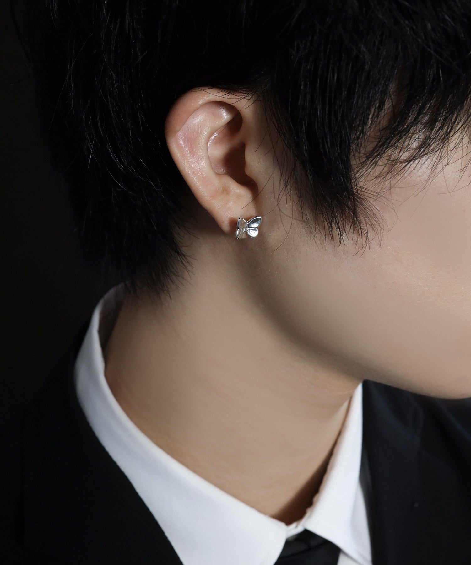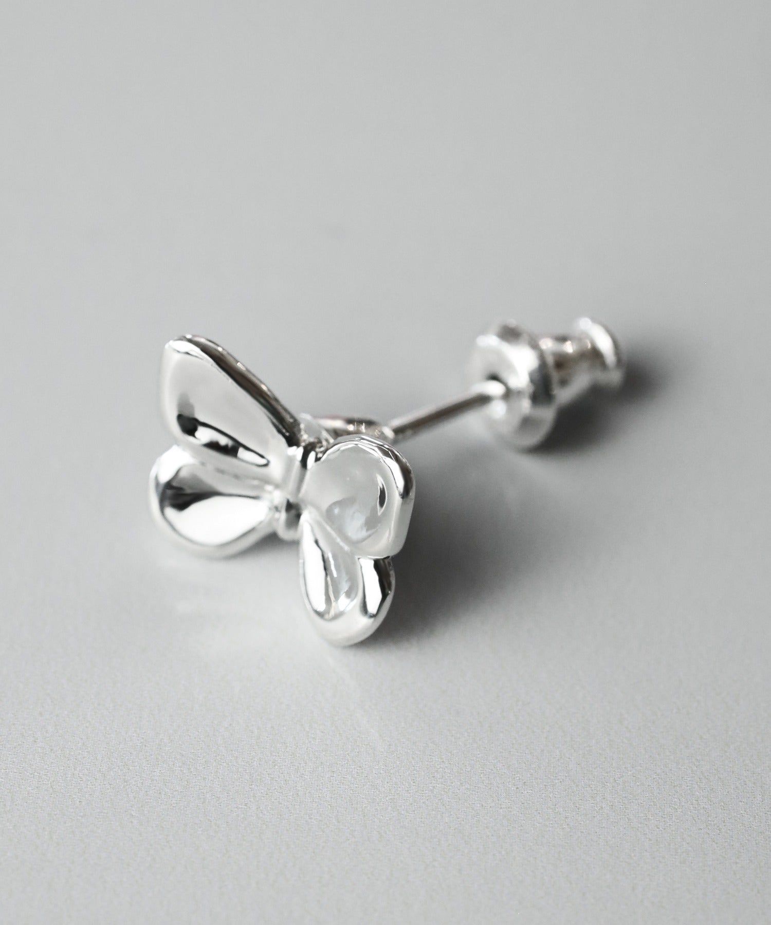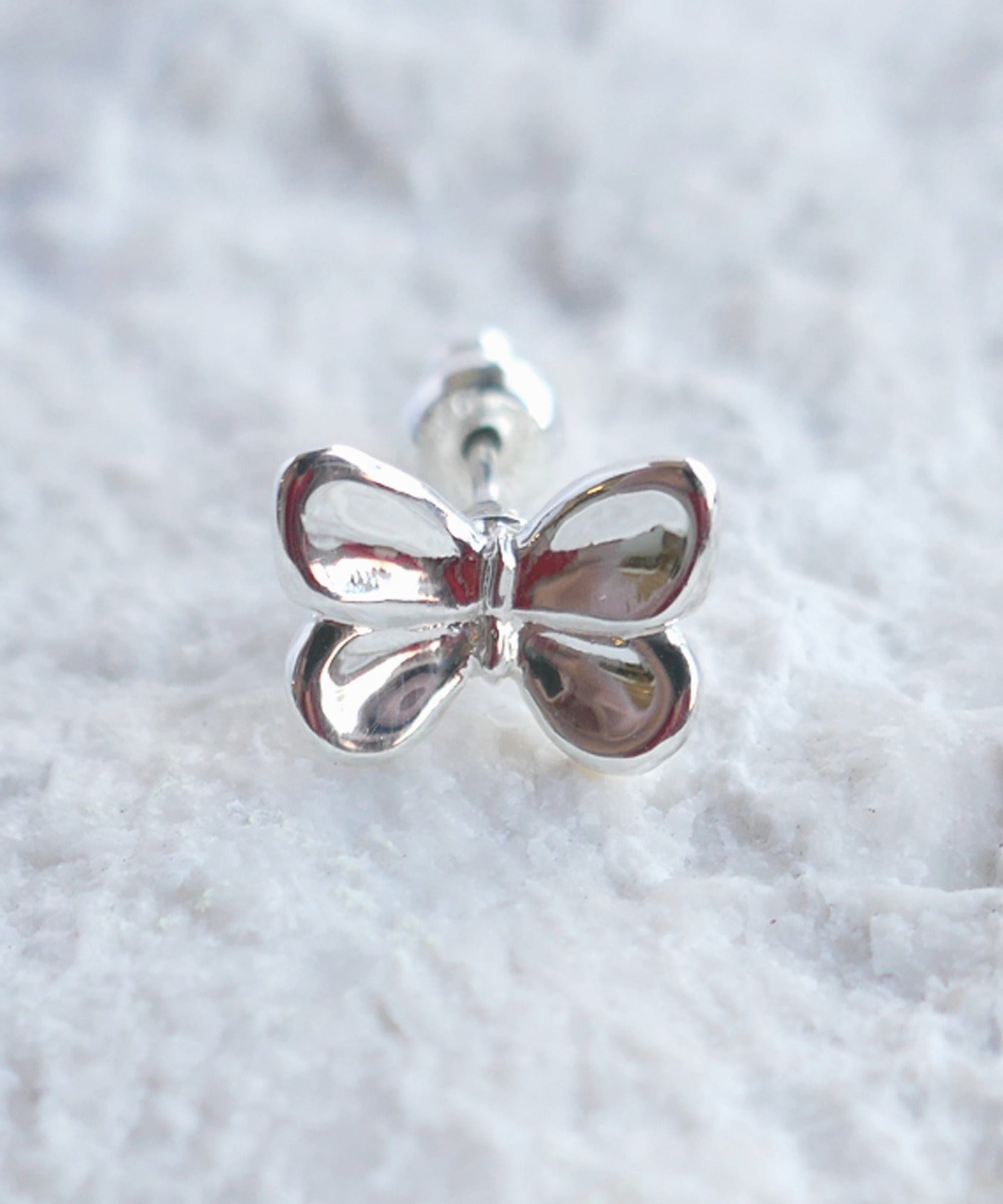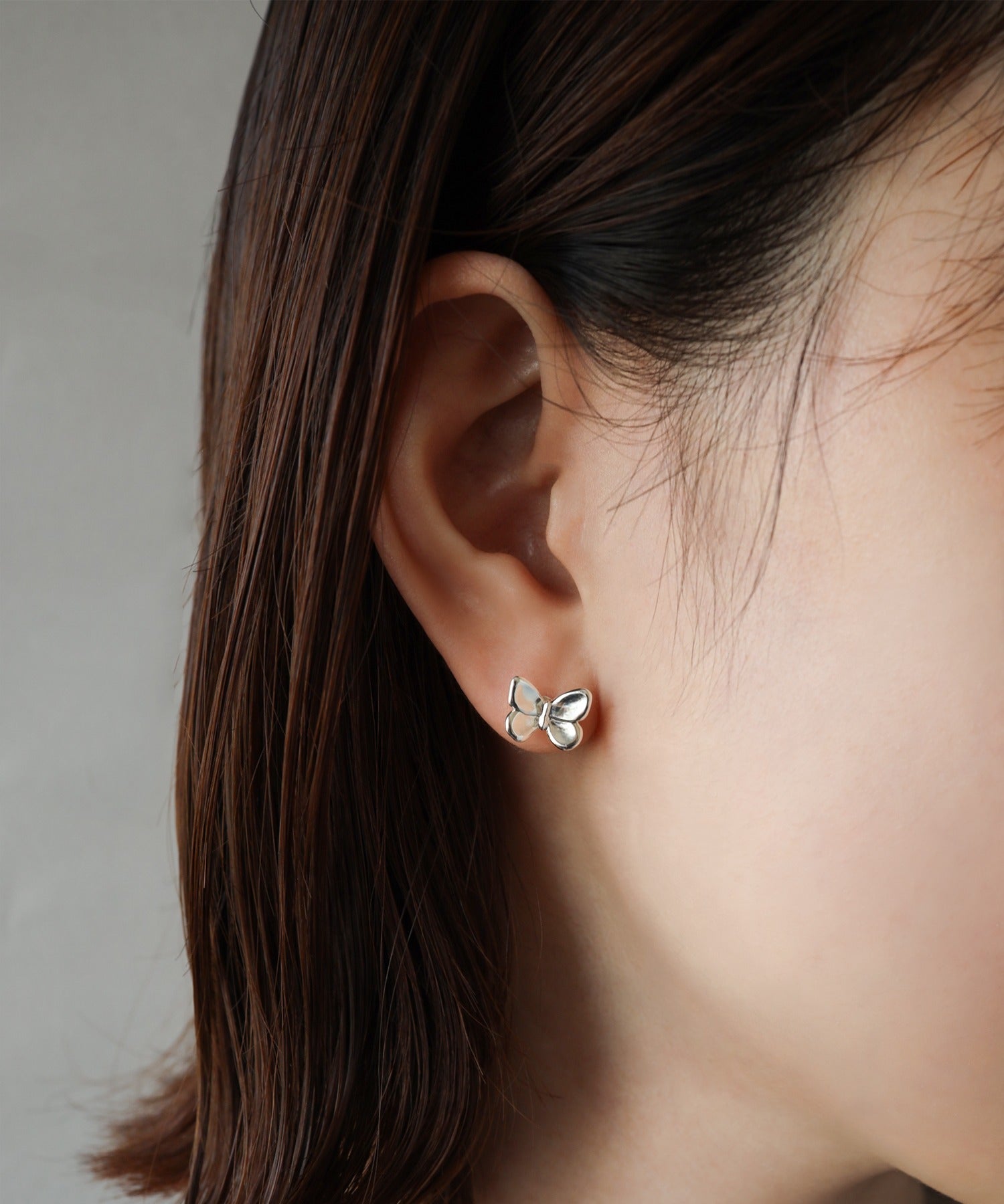 蝶モチーフのシルバーピアス。シルバーのカジュアルさと