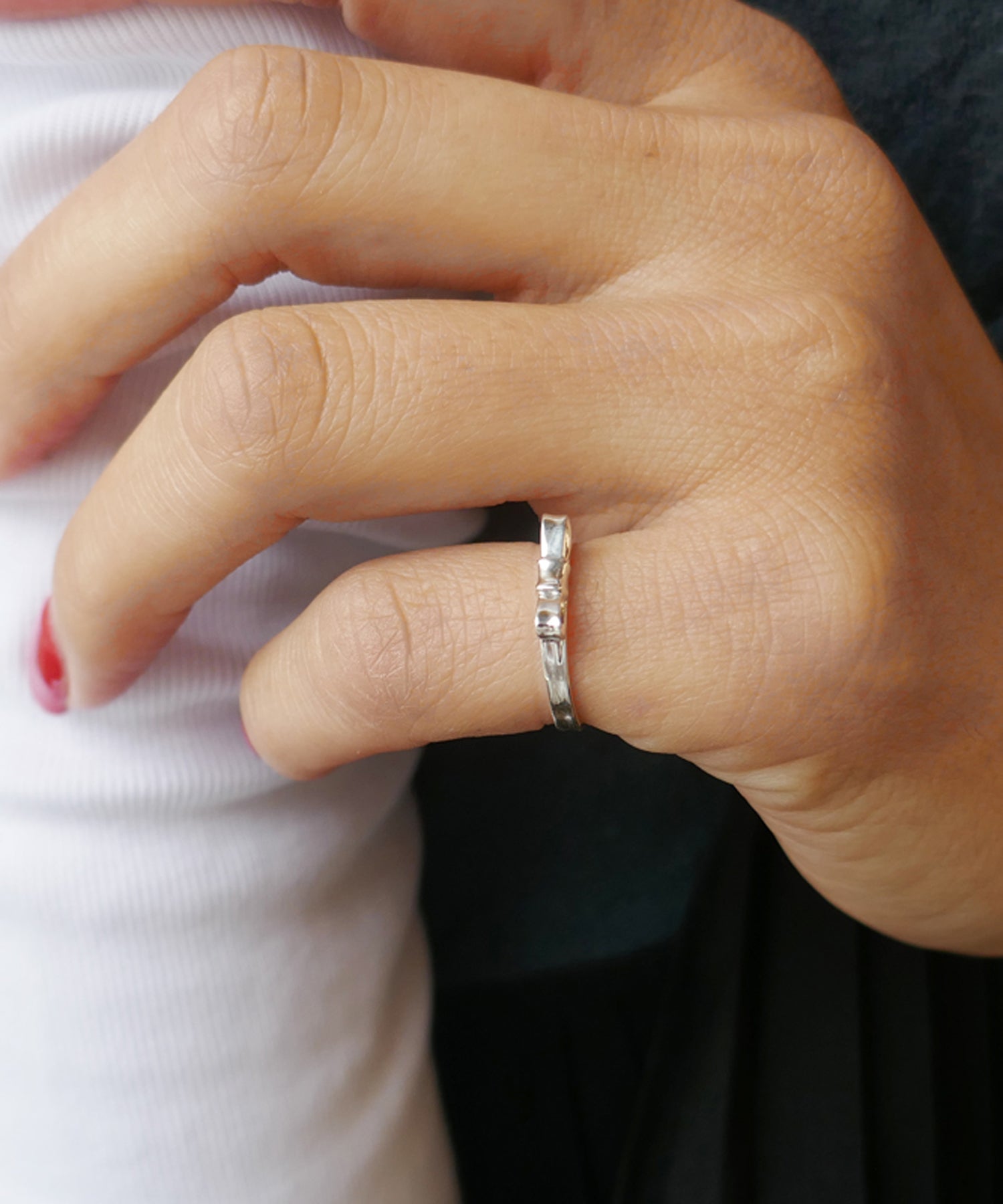 ちょっとした立体感が何とも言えなくかわいらしいリボンのピンキーリング。すっきり細めで合わせやすく使いやすい万能なアイテムです。